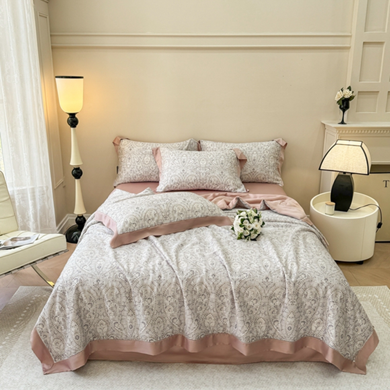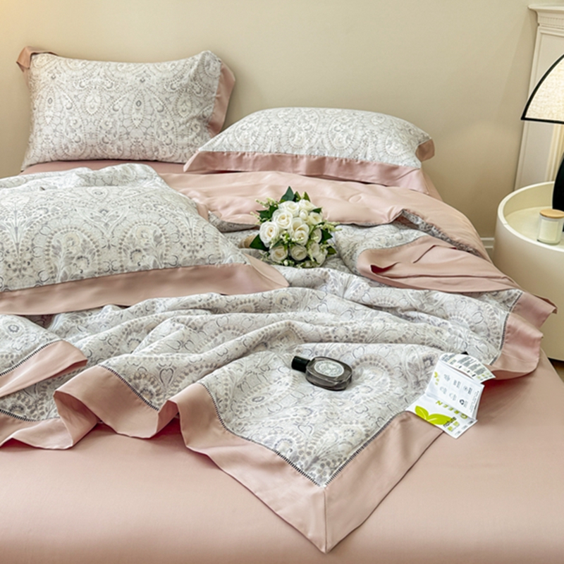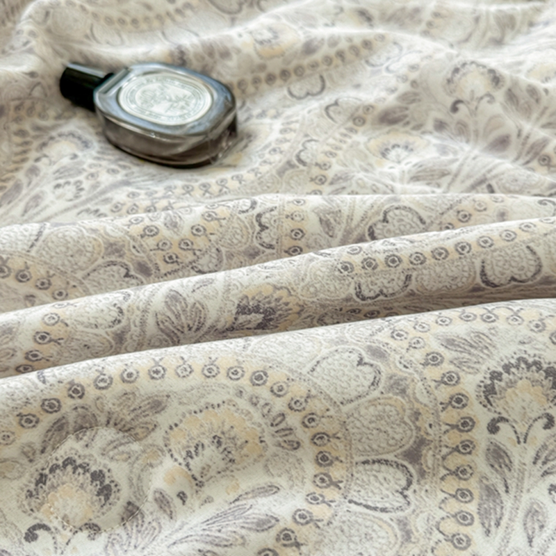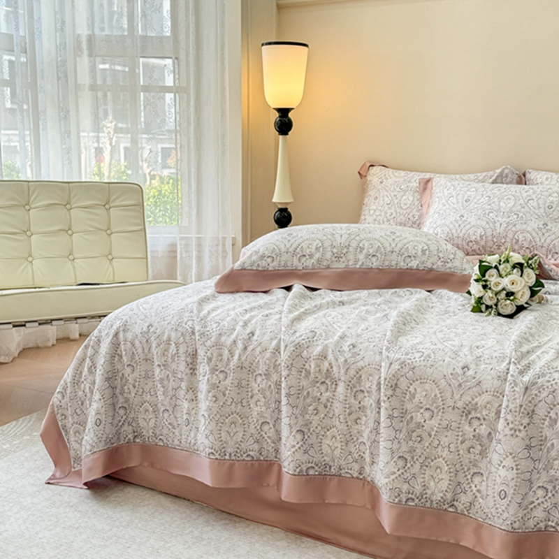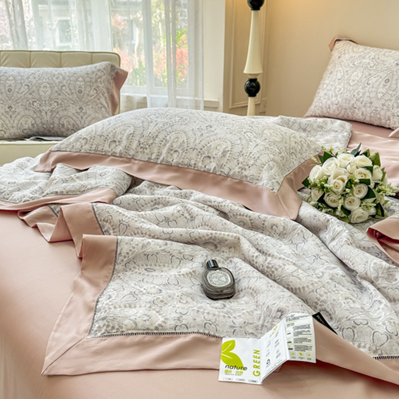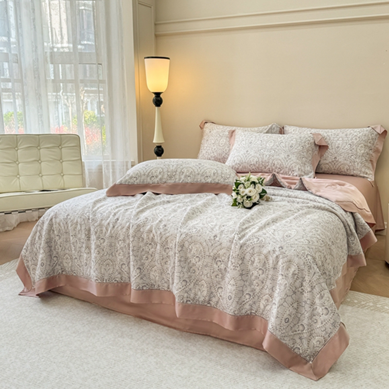 商品名称:若未2025新款法式莱赛尔天丝印花镂空夏被和夏被四件套 沐颜(灰)