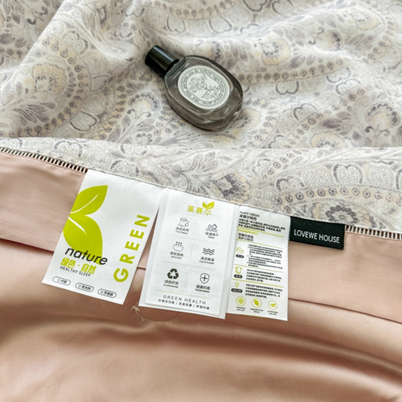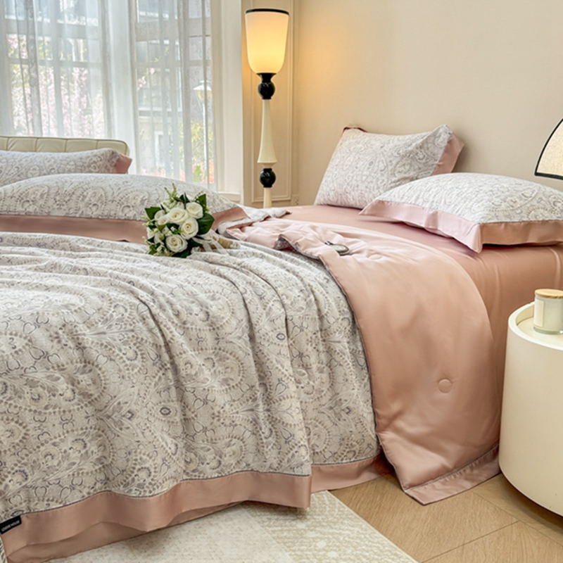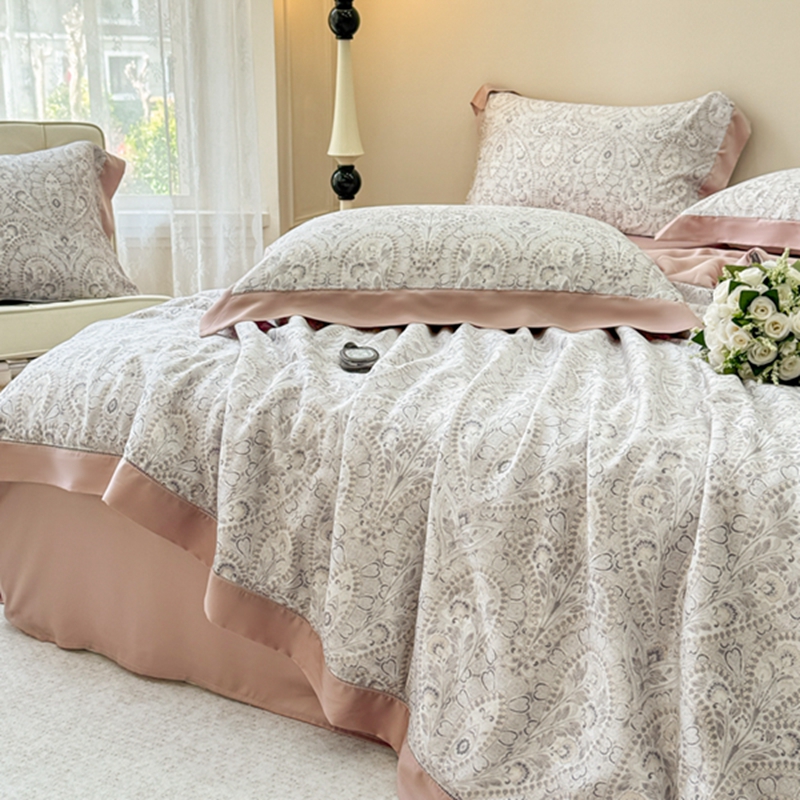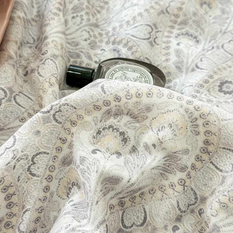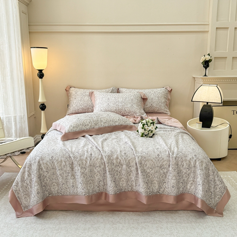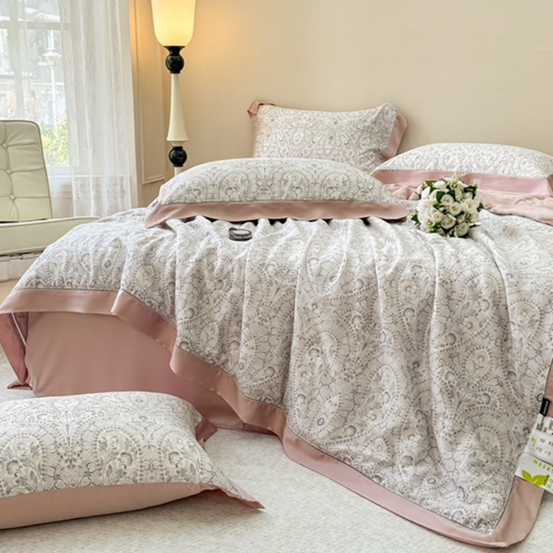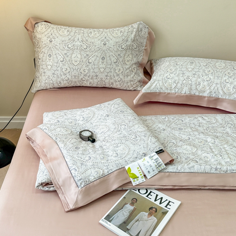 商品名称:若未2025新款法式莱赛尔天丝印花镂空夏被和夏被四件套 沐颜(灰)