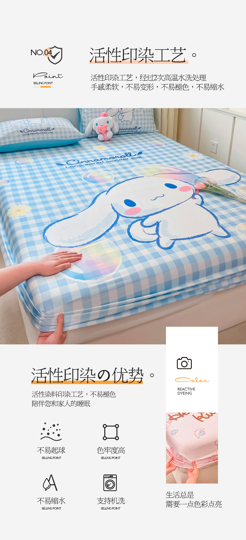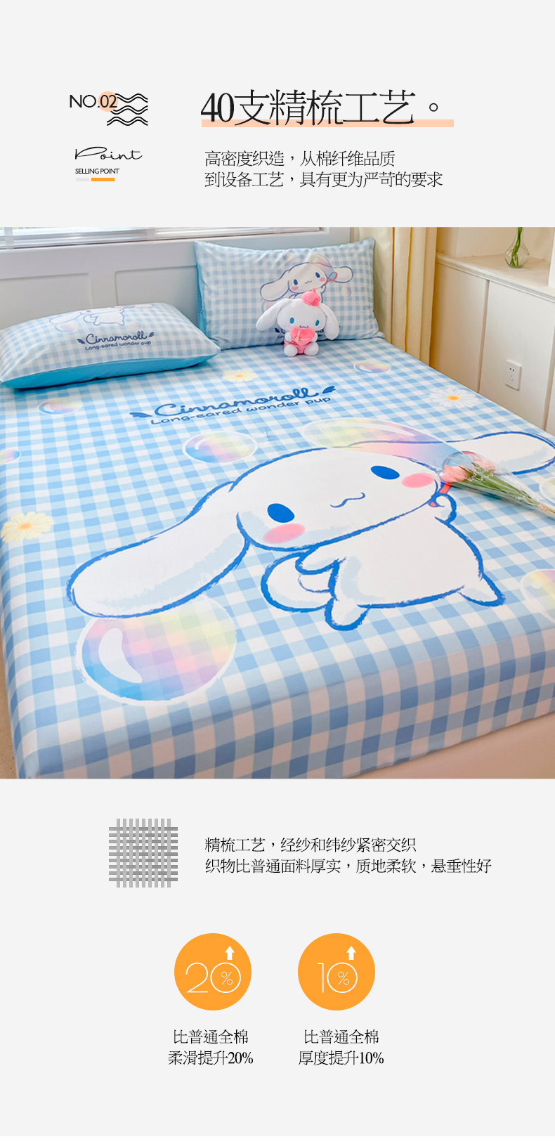 • 91家纺网 家纺一手货源 找家纺 金爱家 2024新款全棉三丽鸥正版大版单品床笠 朗读库洛米