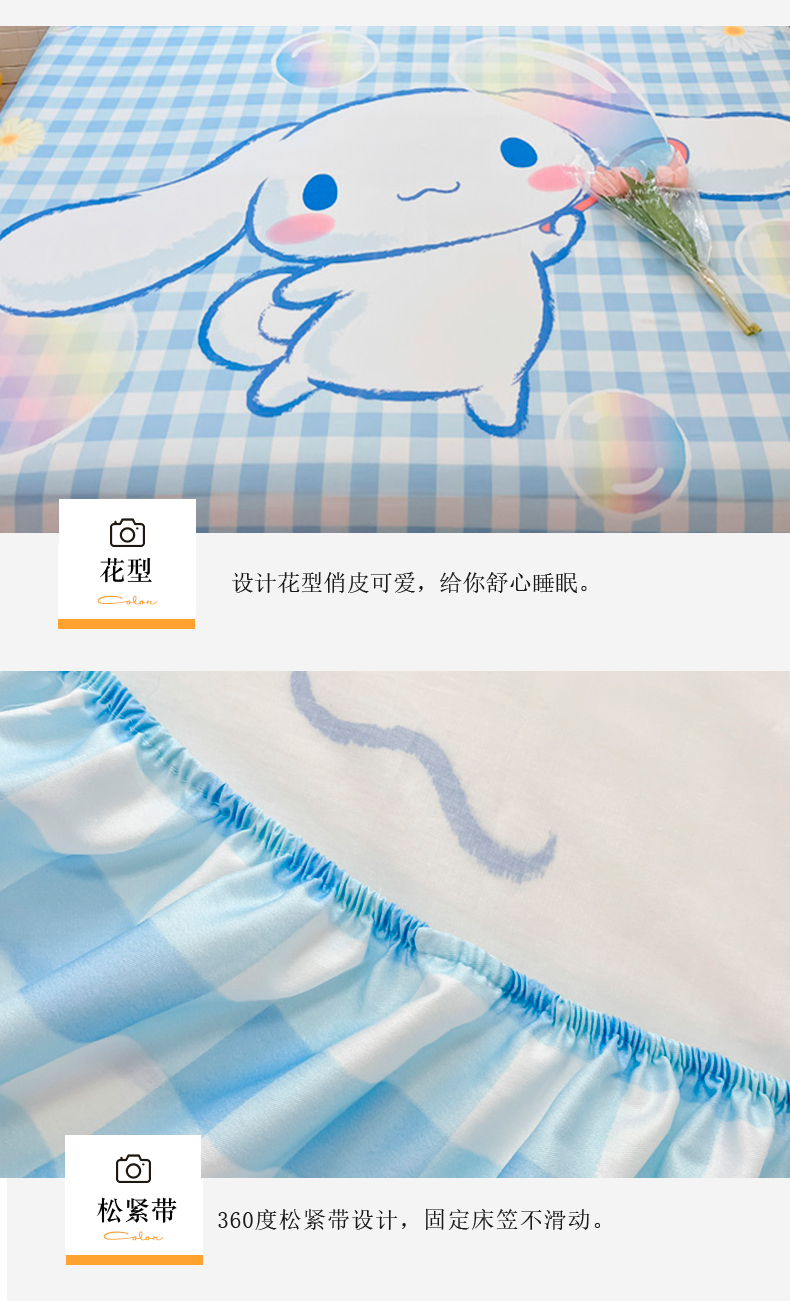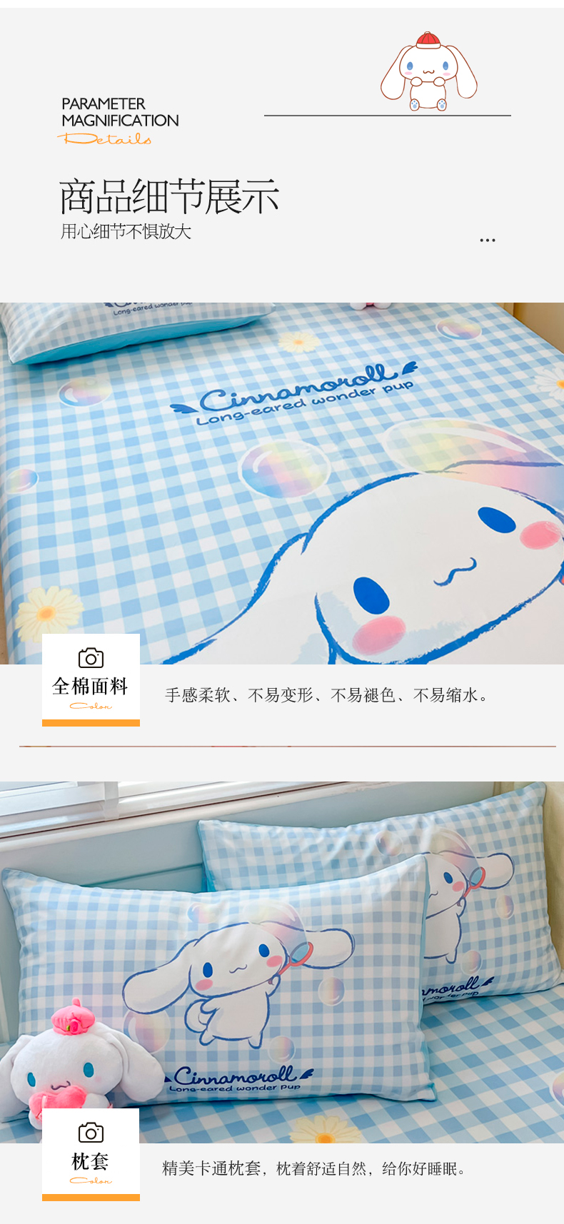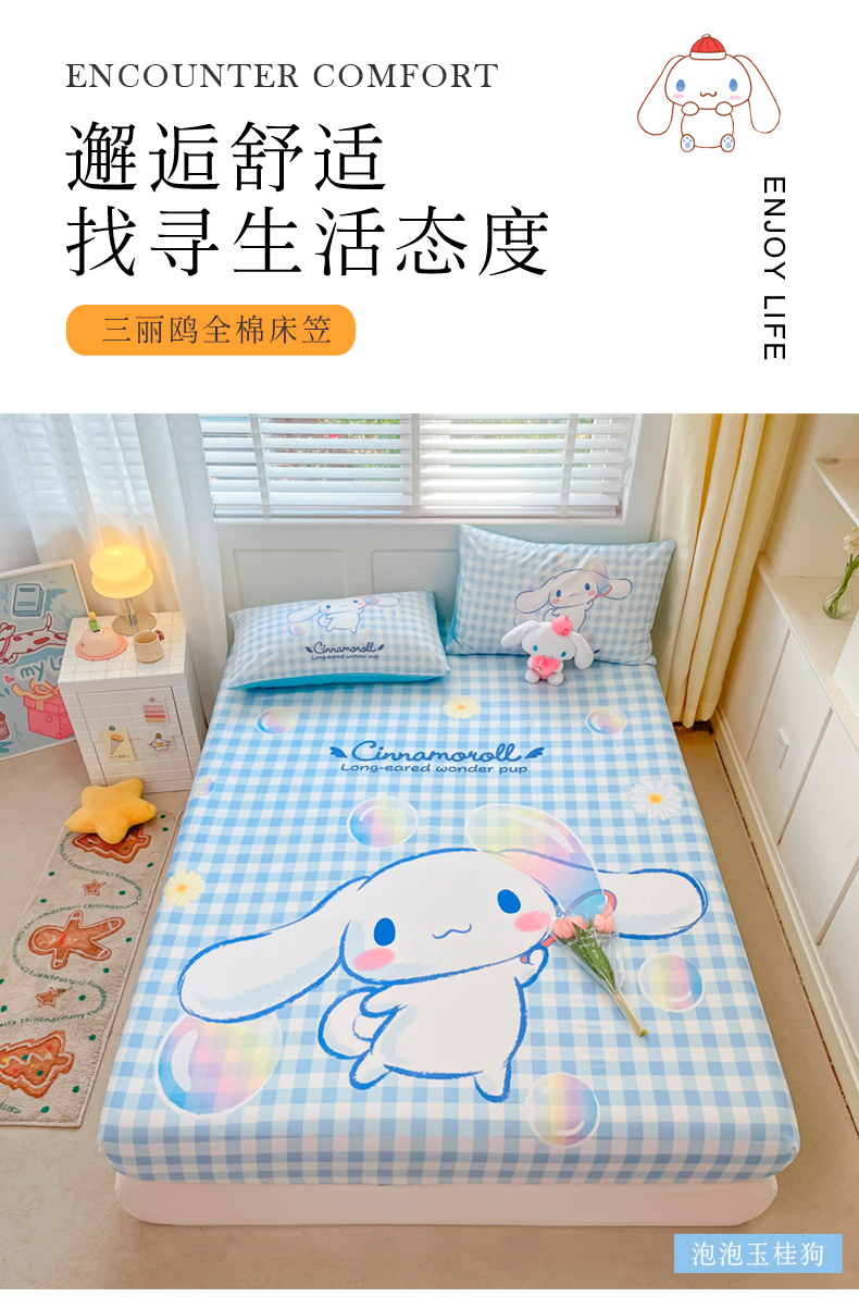金爱家 2024新款全棉三丽鸥正版大版单品床笠 朗读库洛米