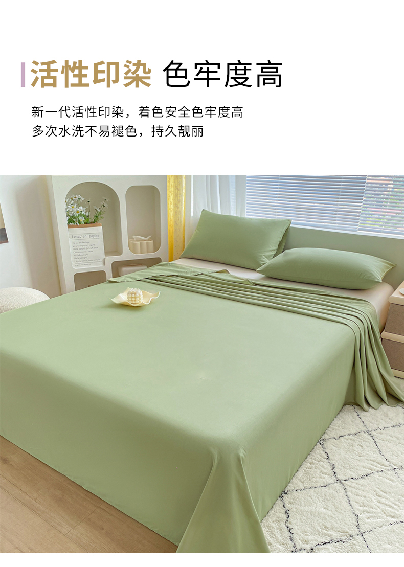 商品名称:暖季 2025新款40支全棉纯色床单 抹茶绿