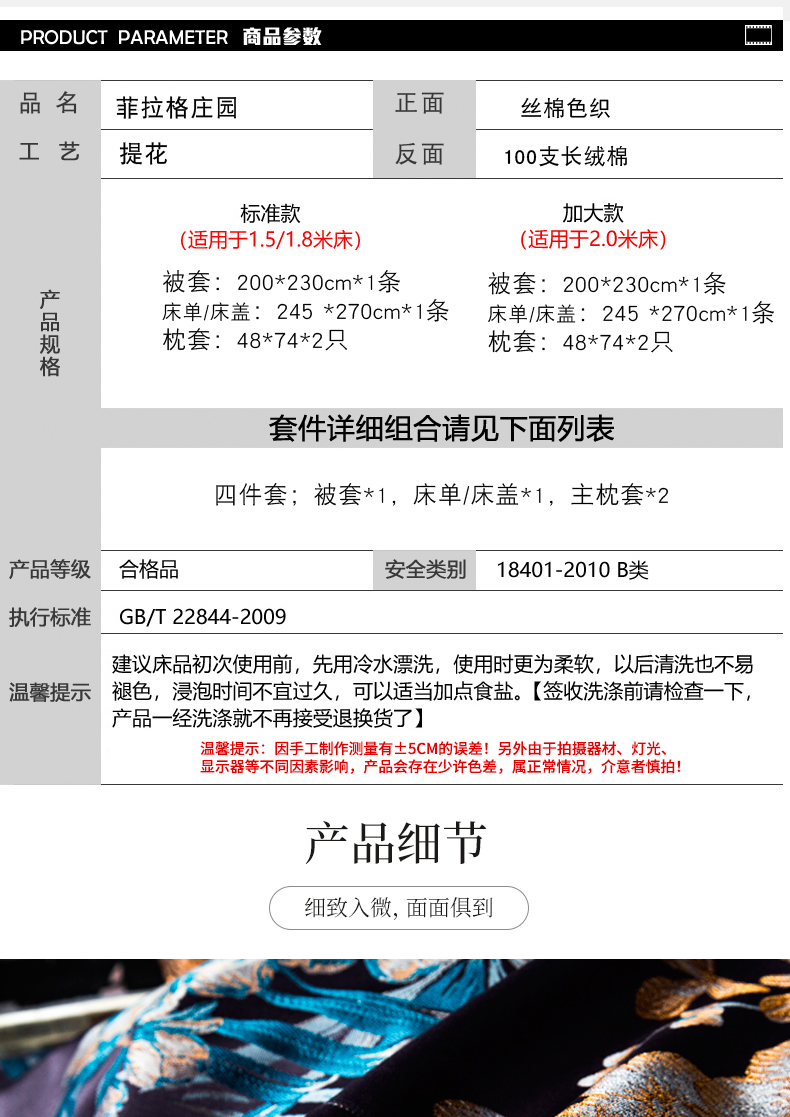 商品名称:(总)至爱今生 2024新款100支全棉色织提花四件套 菲拉格庄园