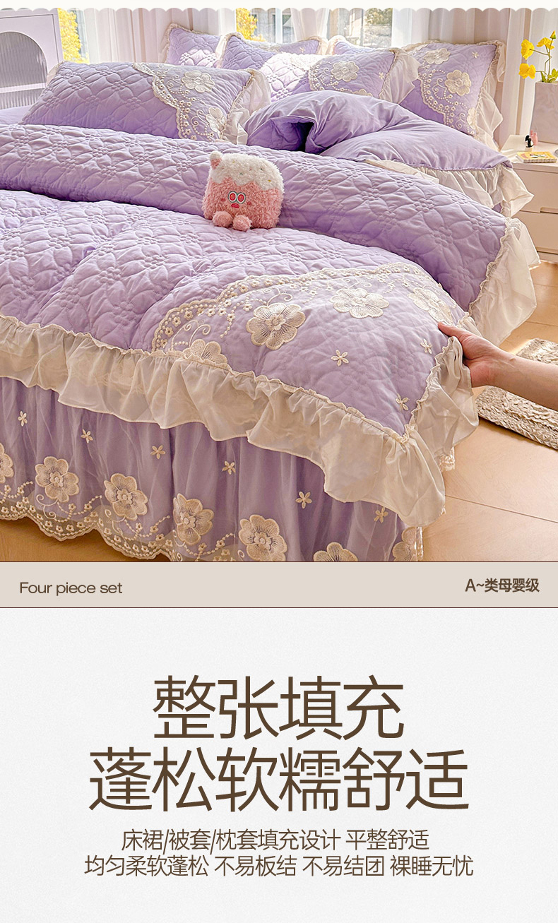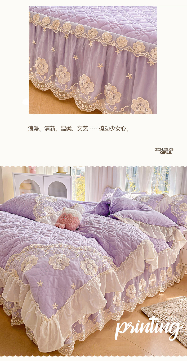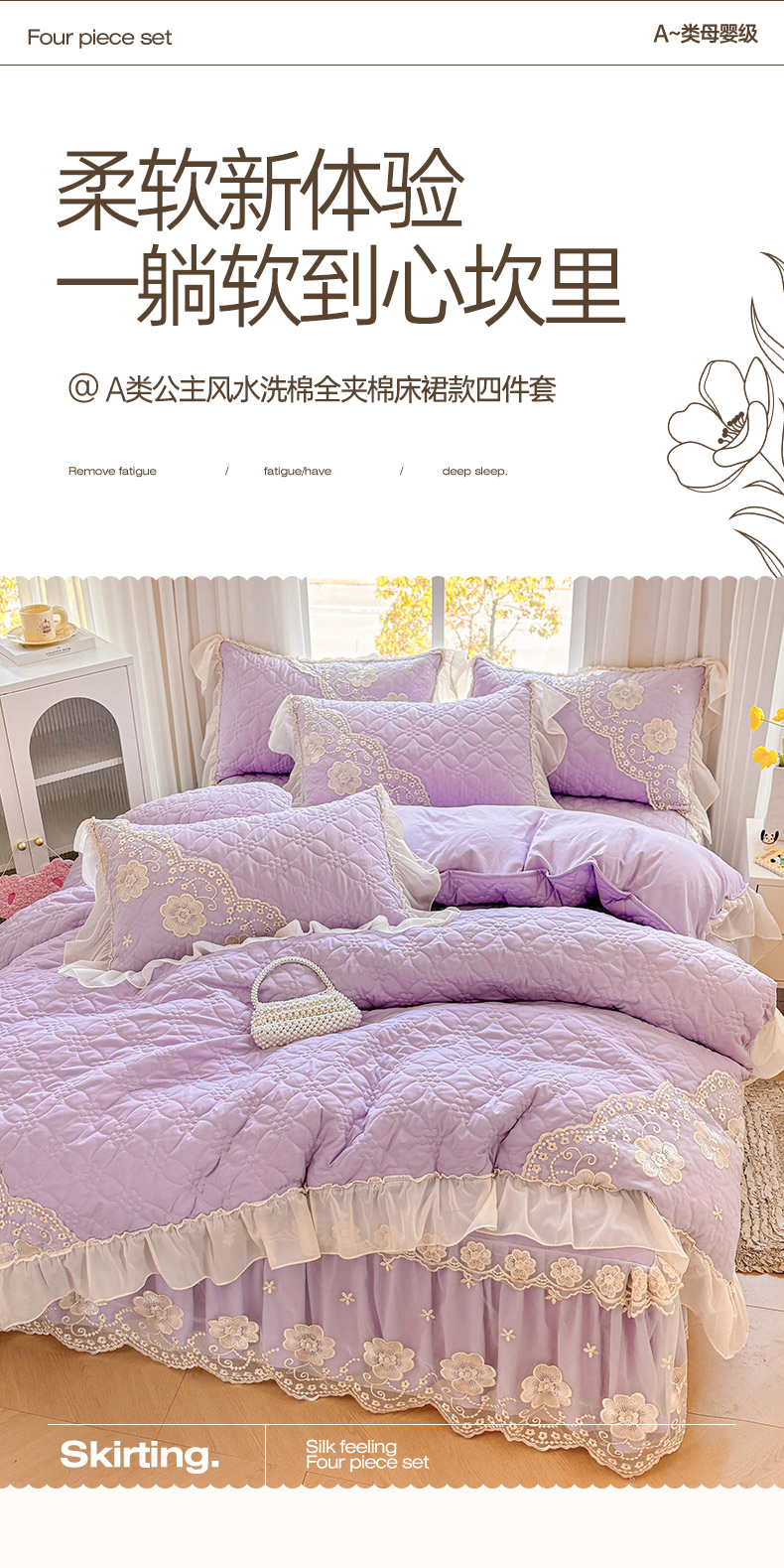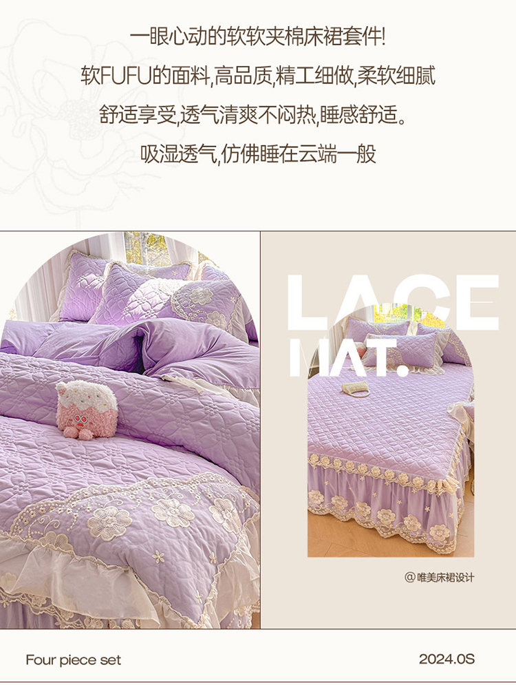 当前位置: 91家纺网 > 商品网购 > 床品套件 > 四件套 > 其它四件套 > 罗艺轩 2024新款公主风水洗棉夹棉床裙款四件套-浪漫满屋床 浪漫满屋-茉莉紫