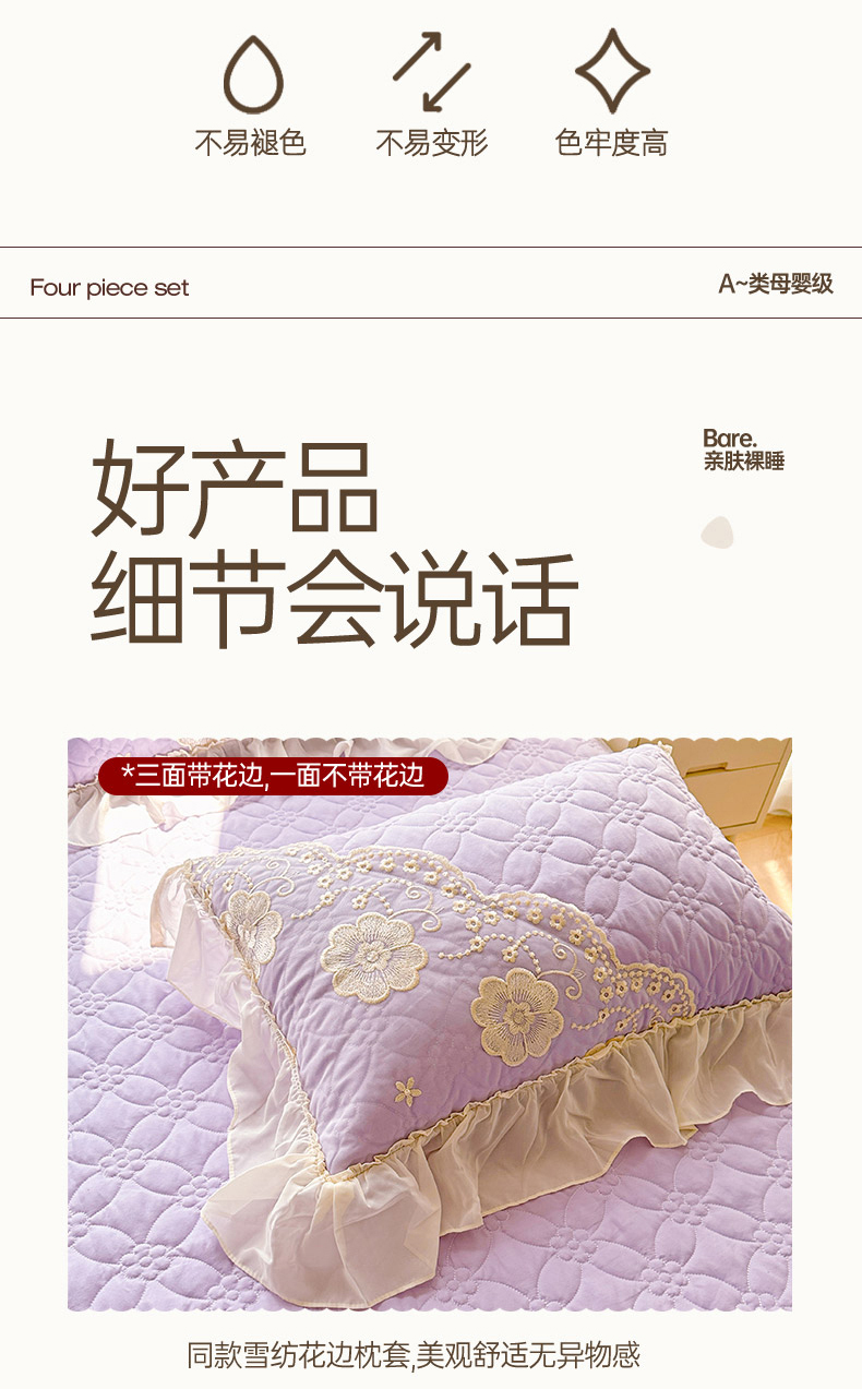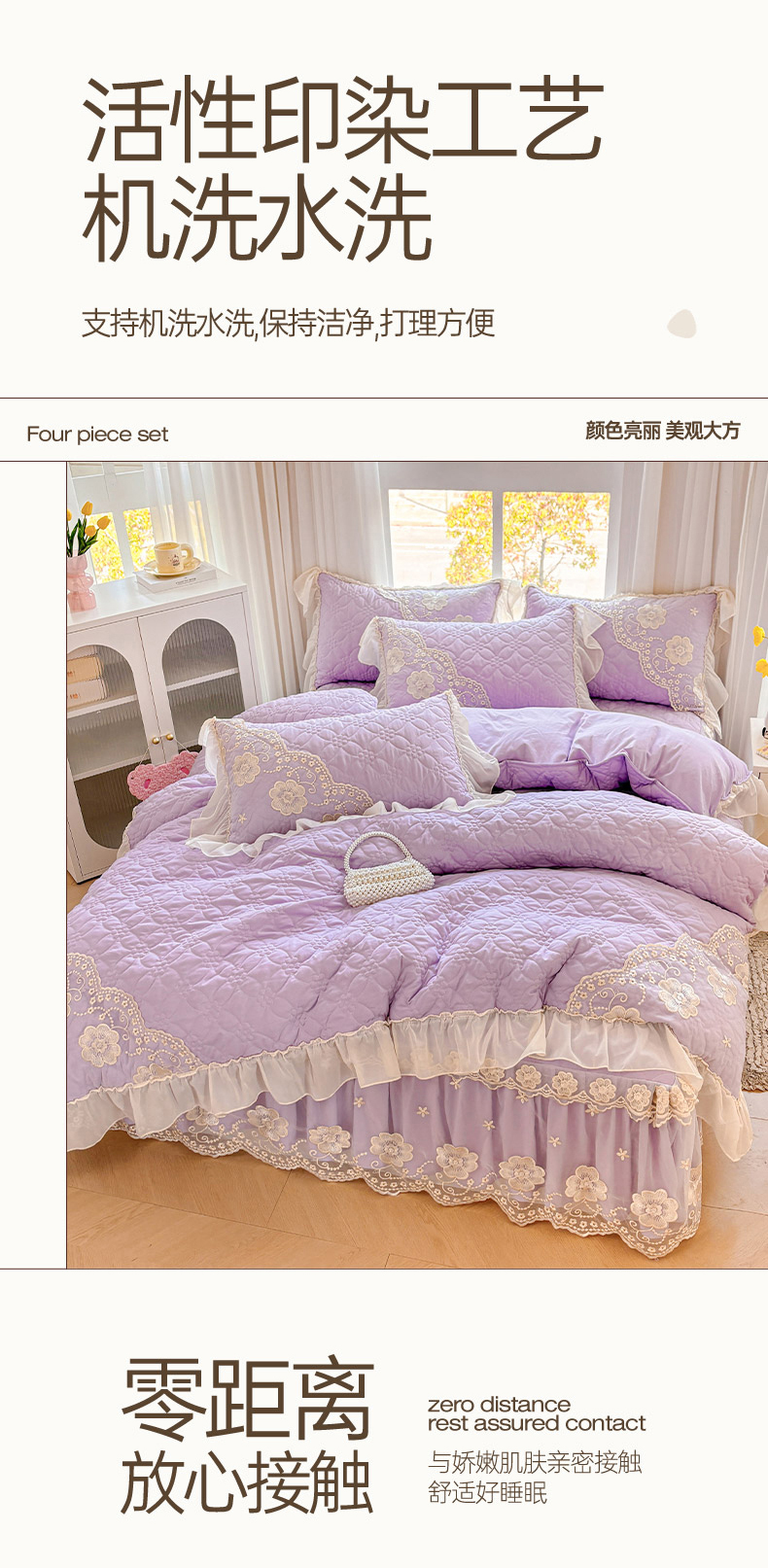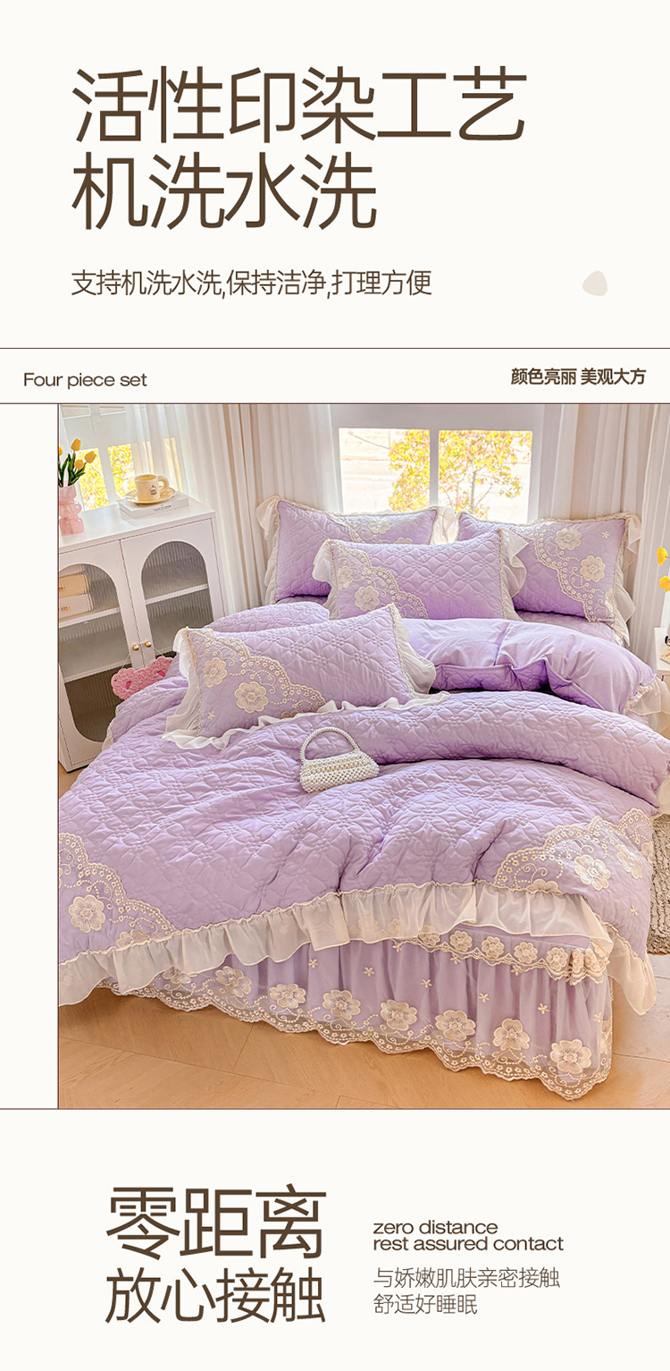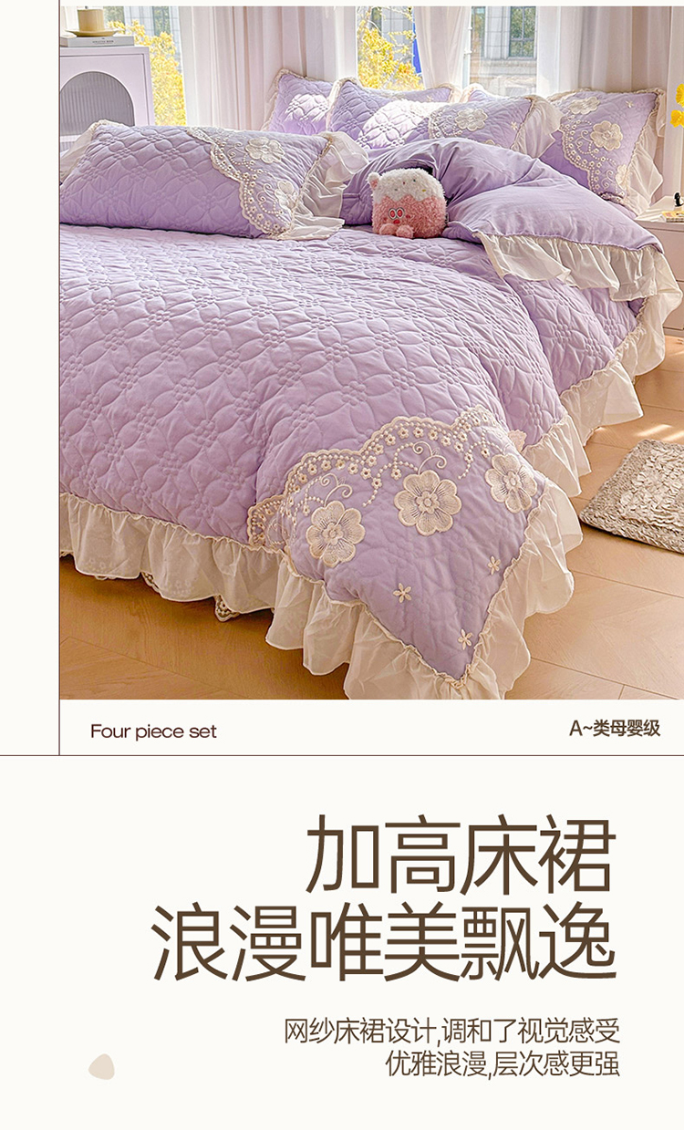 当前位置: 91家纺网 > 商品网购 > 床品套件 > 四件套 > 其它四件套 > 罗艺轩 2024新款公主风水洗棉夹棉床裙款四件套-浪漫满屋床 浪漫满屋-茉莉紫