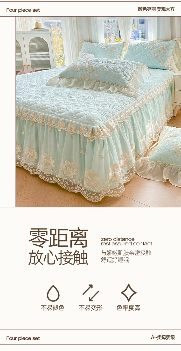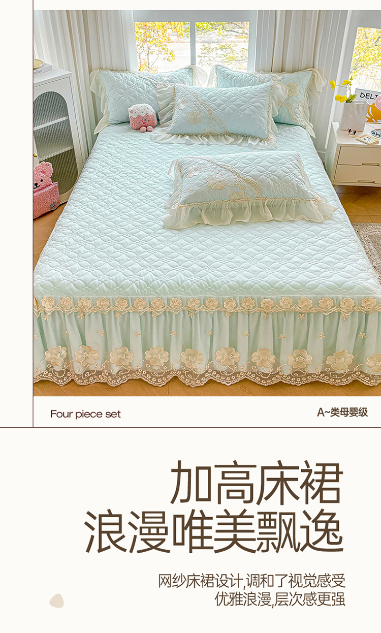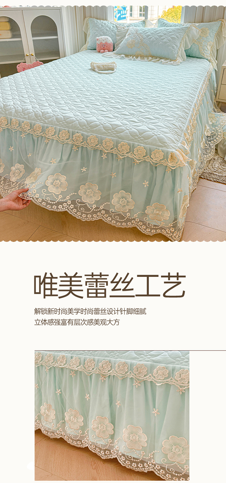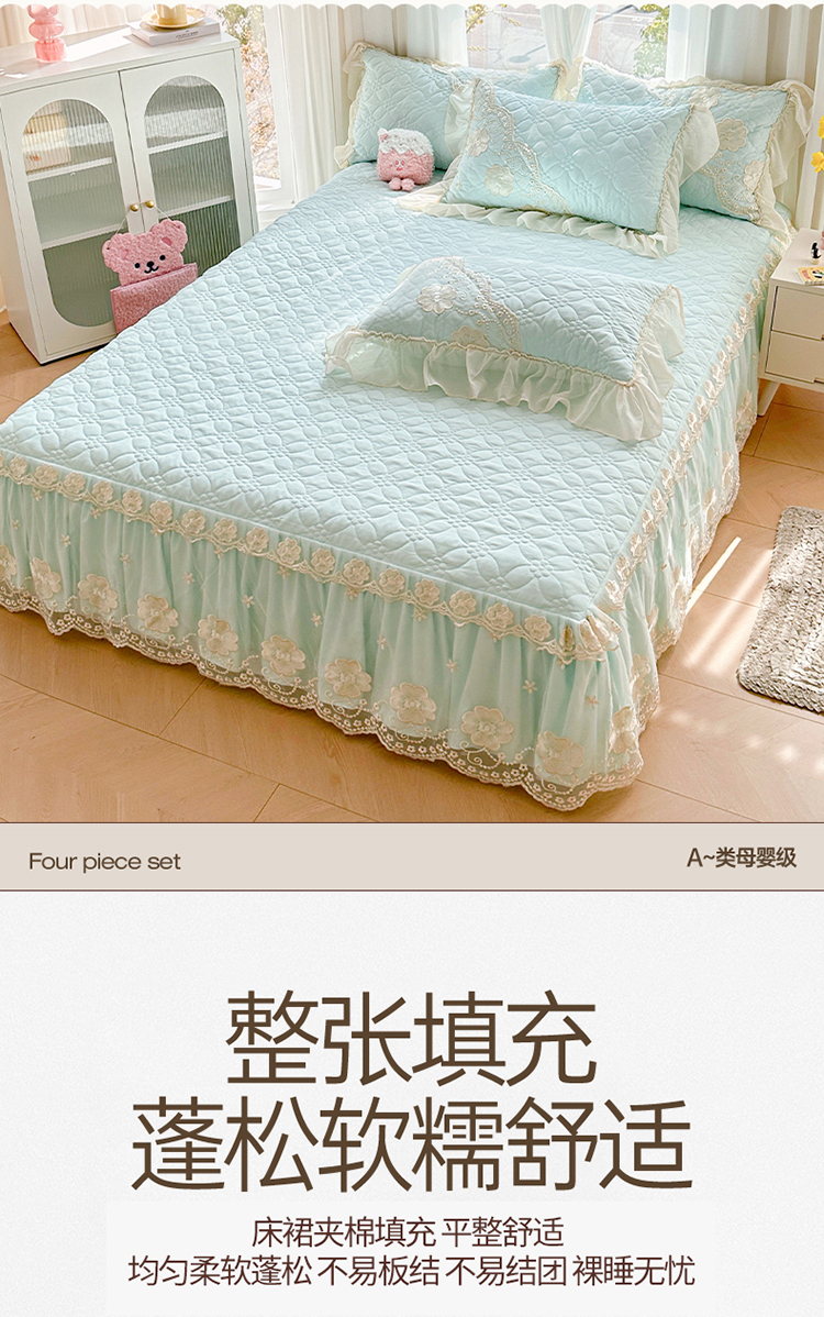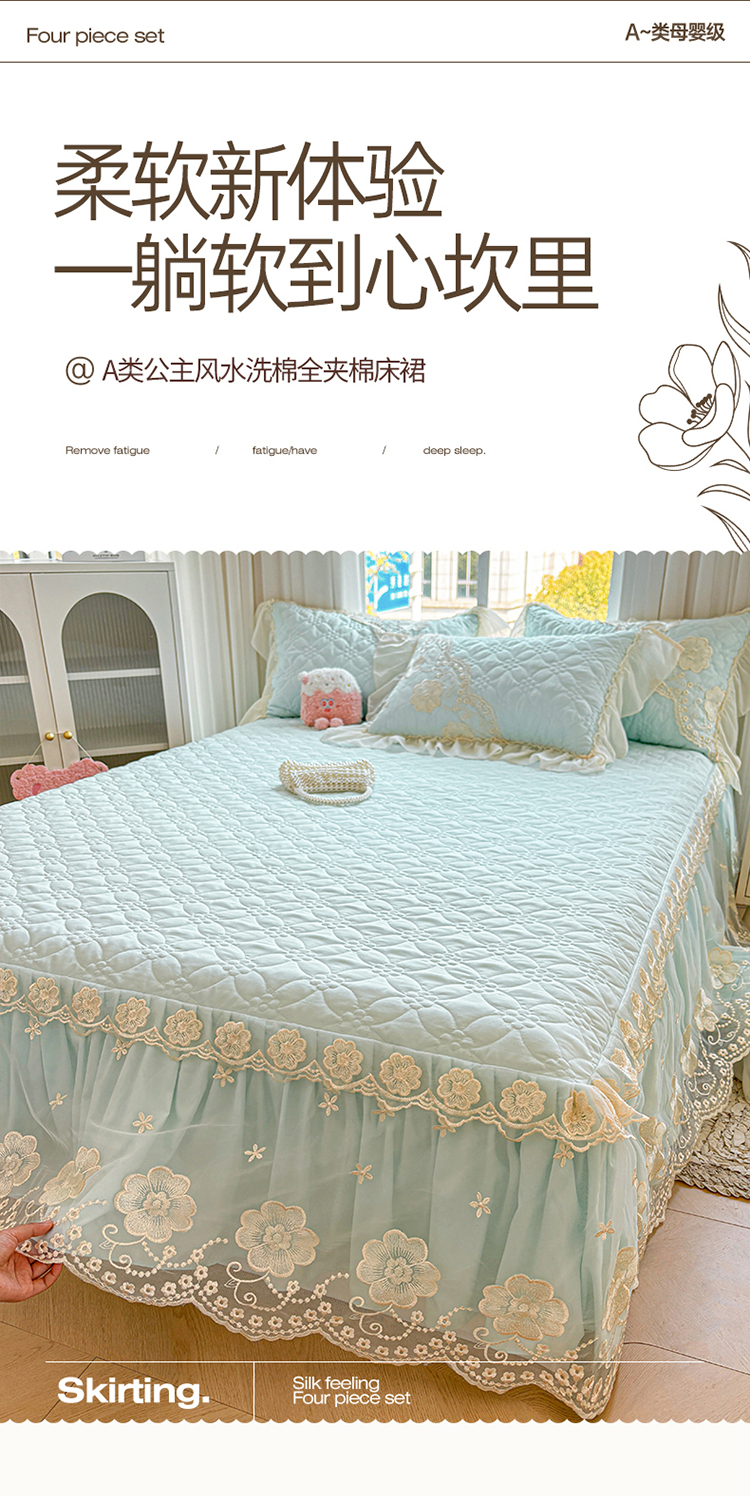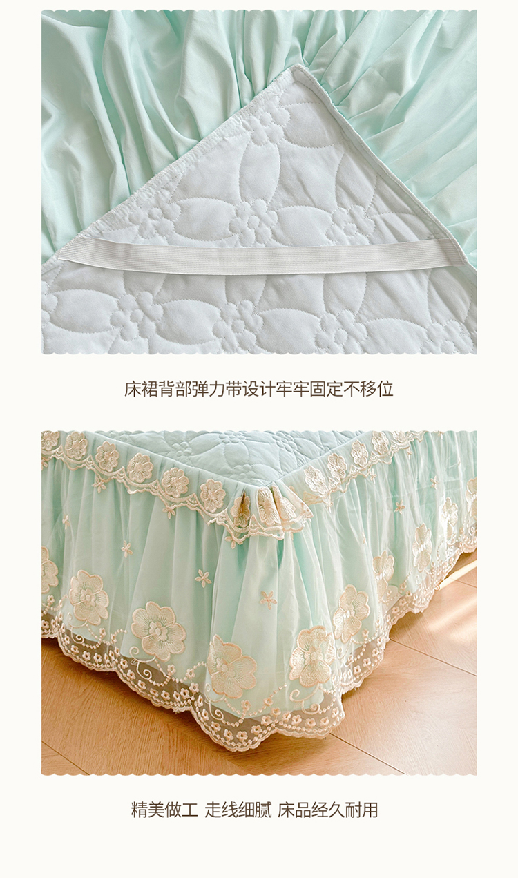 商品名称:罗艺轩 2024新款公主风水洗棉夹棉单床裙-浪漫满屋床 浪漫满屋-海盐蓝