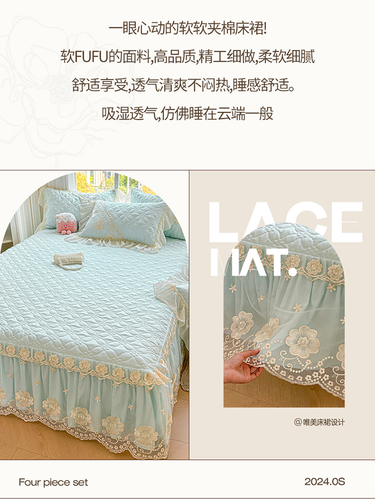 (总)罗艺轩 2024新款公主风水洗棉夹棉床裙款四件套-浪漫满屋床,浪漫满屋-元气绿,浪漫满屋-少女粉,浪漫满屋-海盐蓝,浪漫满屋-牛乳白,浪漫满屋-茉莉紫,浪漫满屋-豆沙,浪漫满屋-迷雾灰,浪漫满屋-香槟