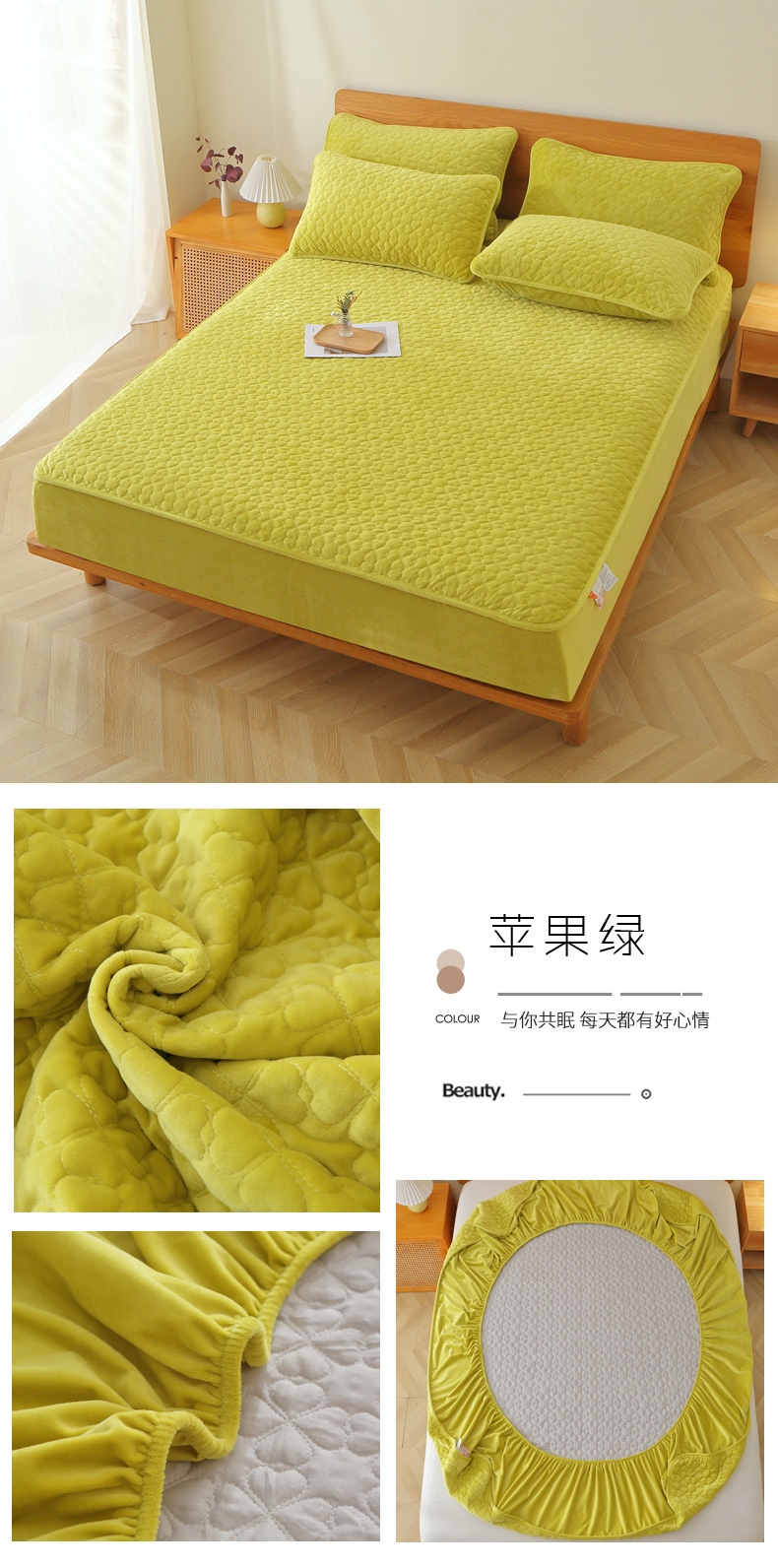 • 91家纺网 家纺一手货源 找家纺 芸锦豪 2024新款宝宝绒夹棉刺绣床笠 苹果绿