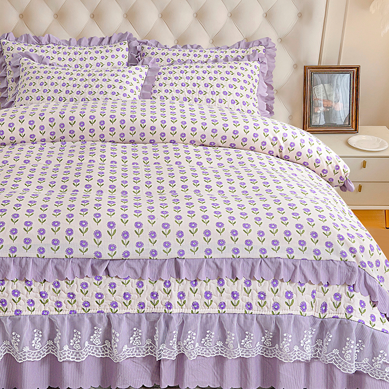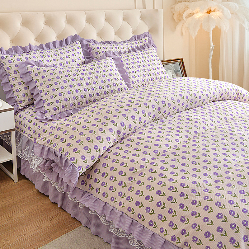 梦柏家纺 2024新款亲肤泡泡棉夹棉床盖夏被四件套 小雏菊
