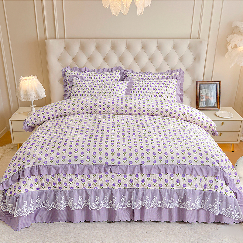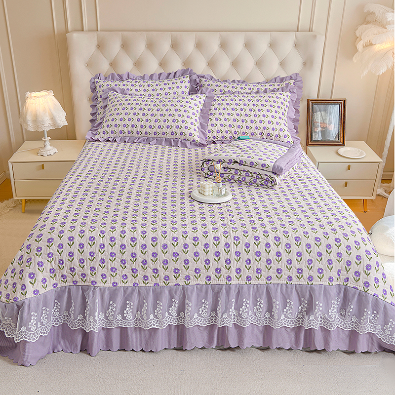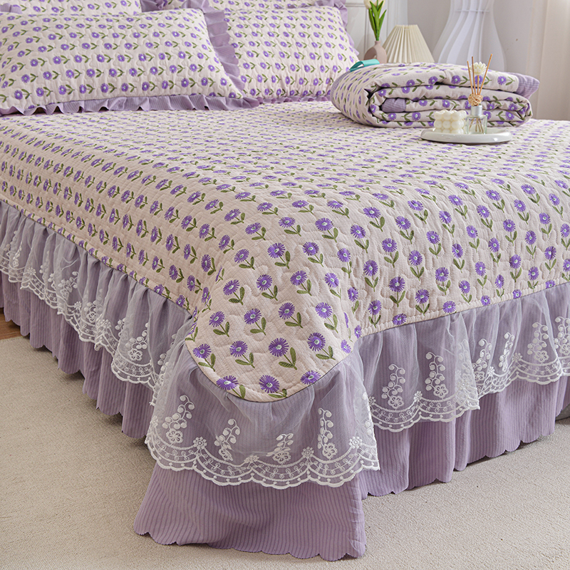 (总)梦柏家纺 2025新款韩式牛奶绒刺绣花边床盖四件套,风信紫,湖水蓝,浅草绿,蔷薇粉,樱花粉,月光白