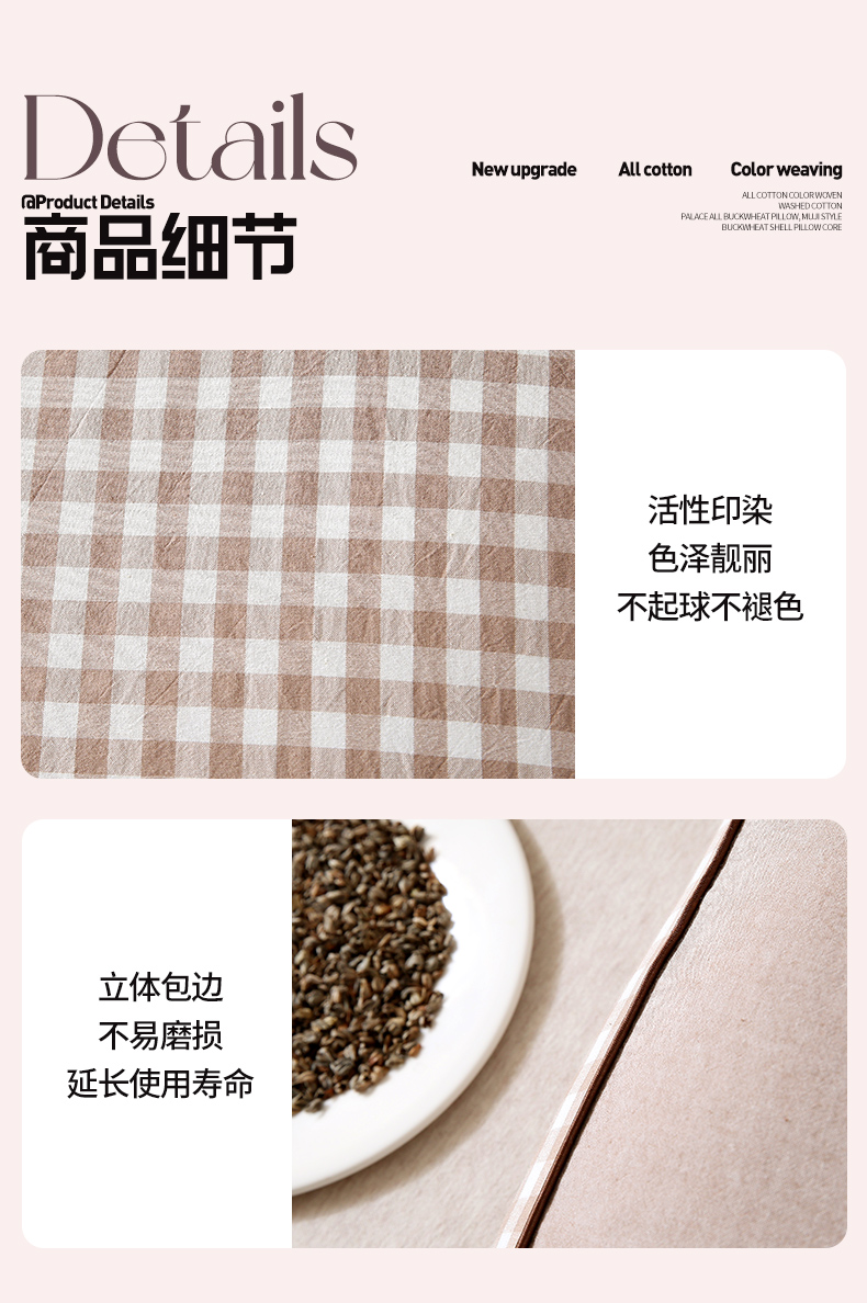 当前位置: 91家纺网 > 商品网购 > 枕头/枕芯/保健枕/颈椎枕 > 普通枕芯 > 梦叶草 2024新款全棉色织水洗棉宫廷全荞麦枕头无印良品风格荞麦壳枕芯 全棉色织宫廷-荞麦枕浅咖色40*60*9cm /只