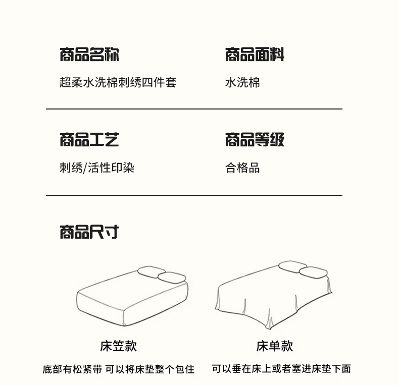 商品名称:(总)眠帛家居 2024新款水洗棉提花刺绣四件套熊先生-风格二