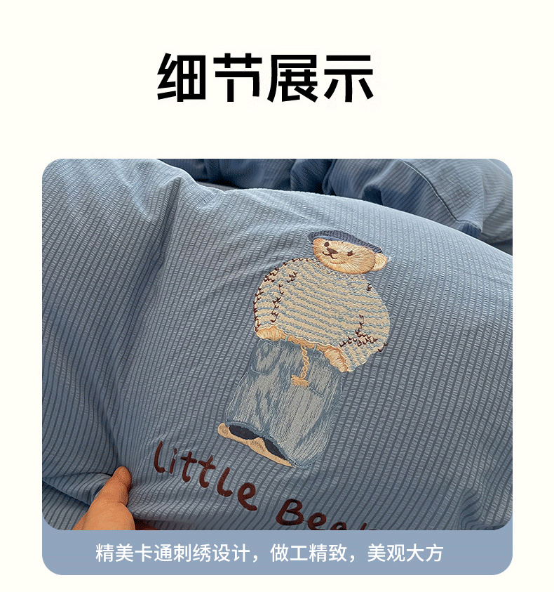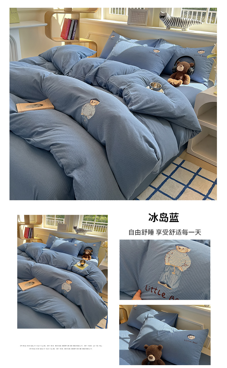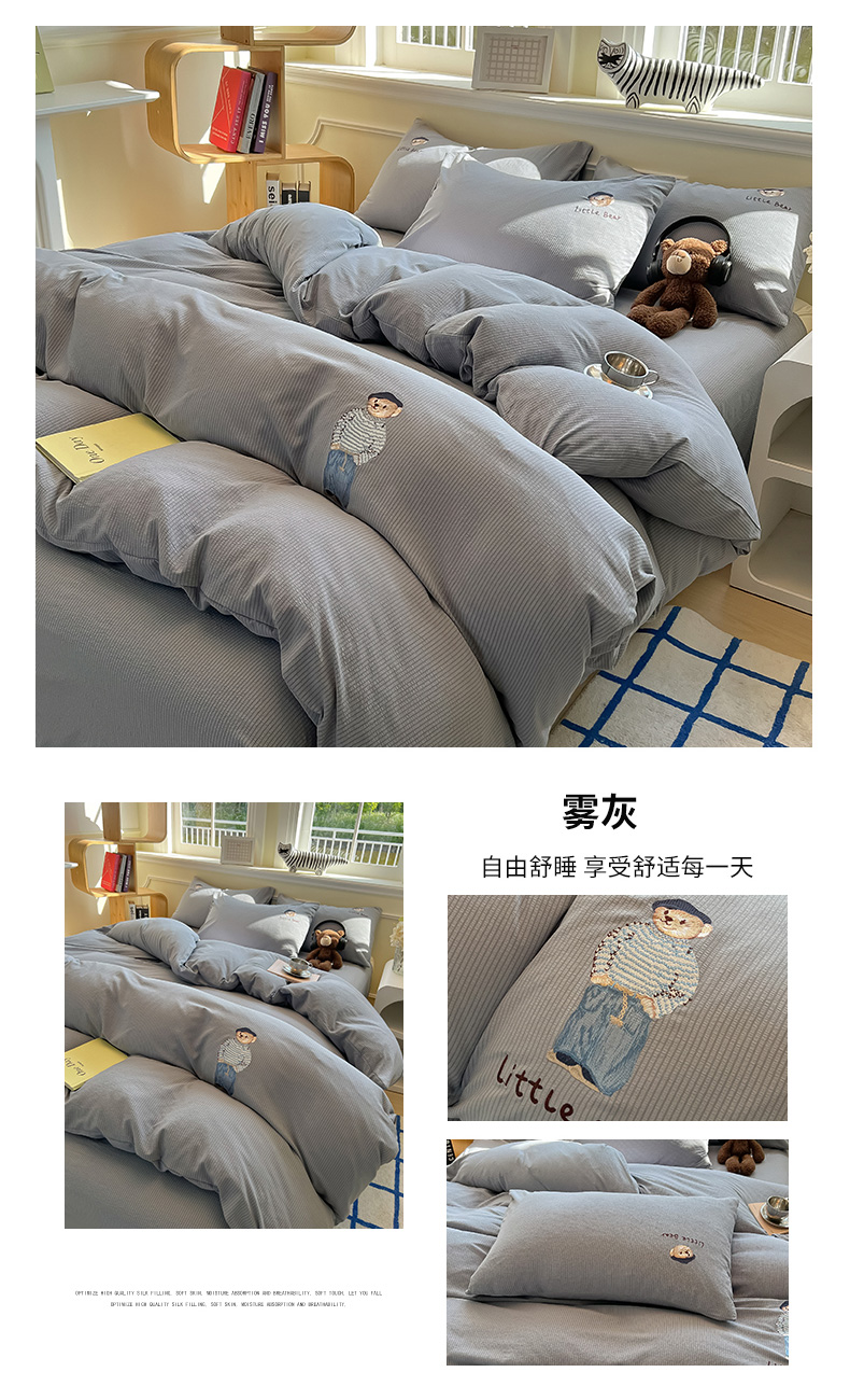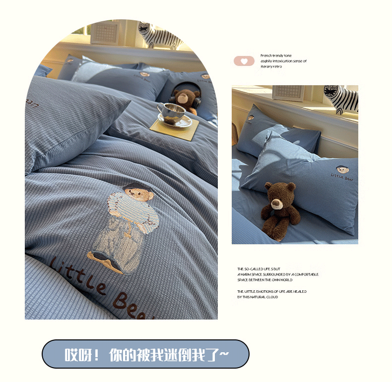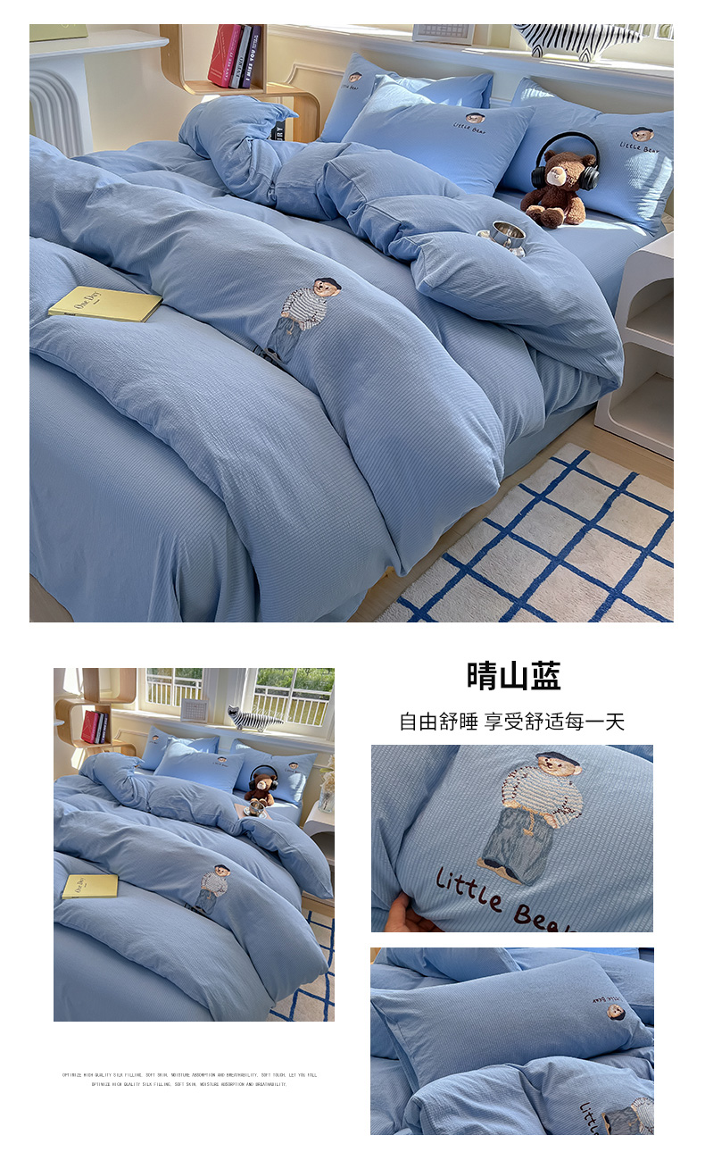(总)眠帛家居 2024新款水洗棉提花刺绣四件套熊先生-风格二