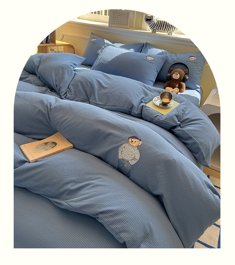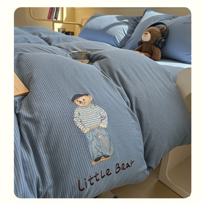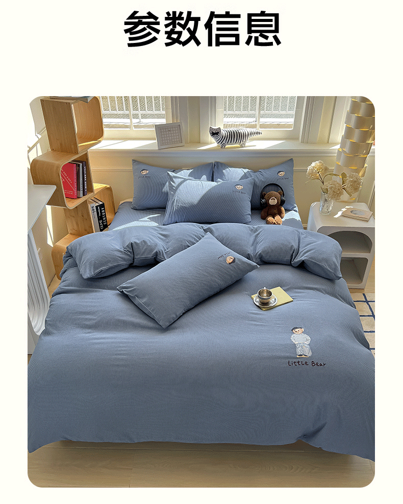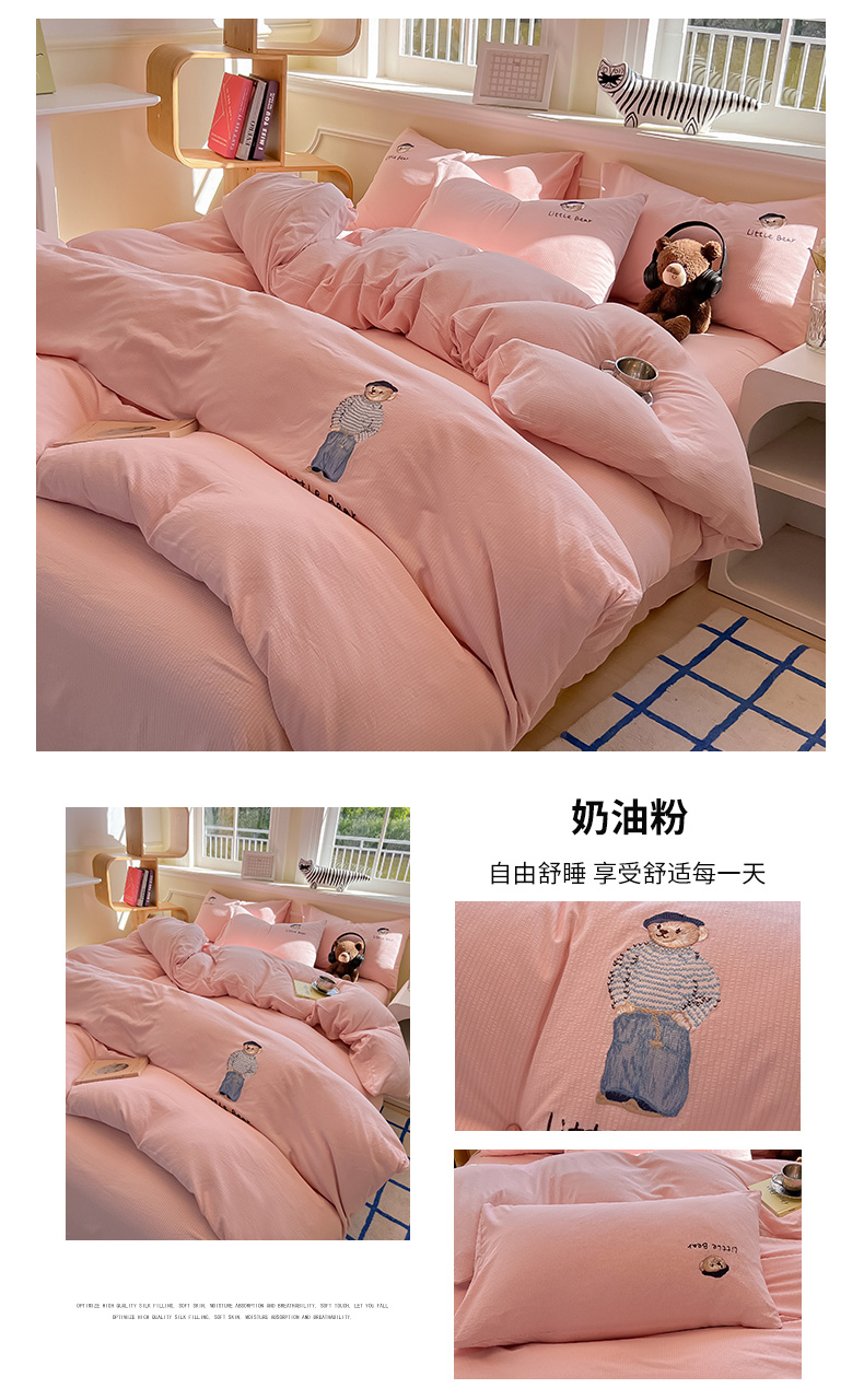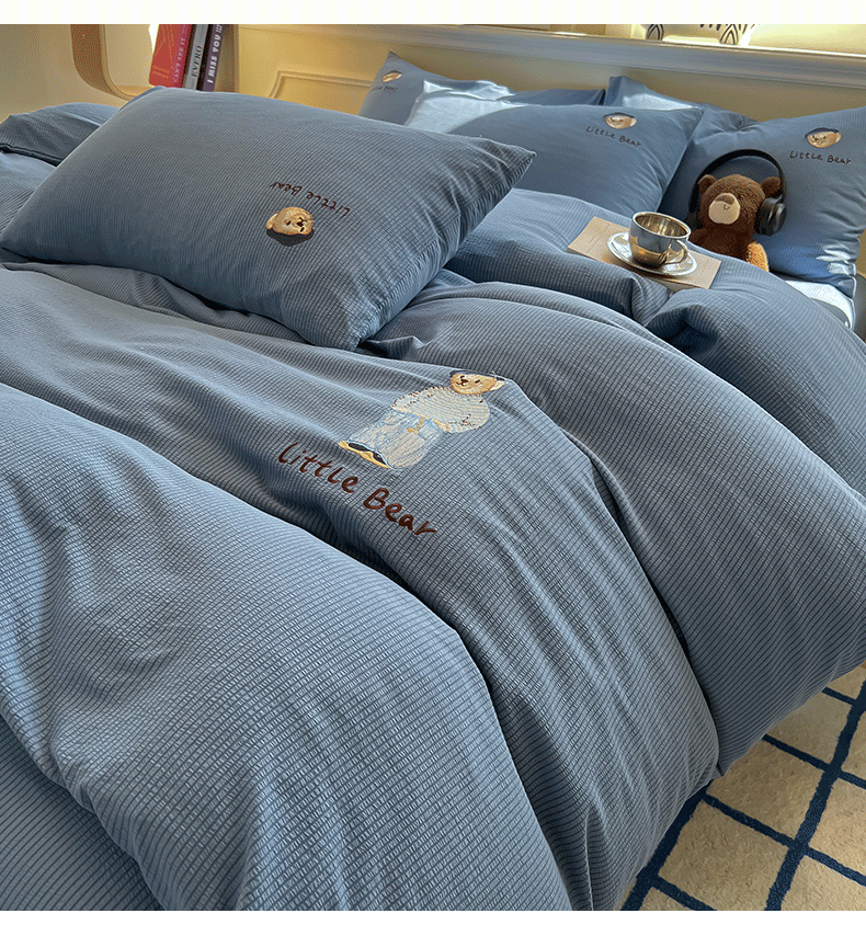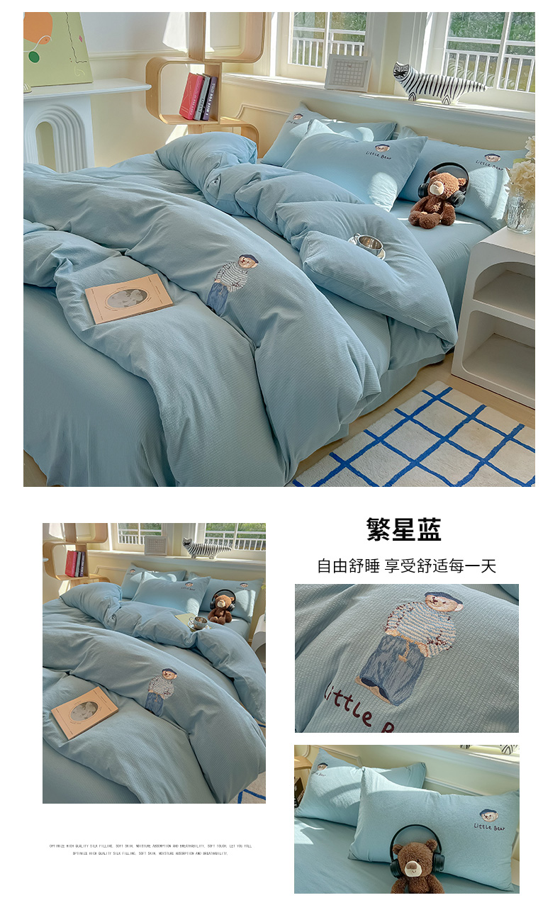(总)眠帛家居 2024新款水洗棉提花刺绣四件套熊先生-风格二