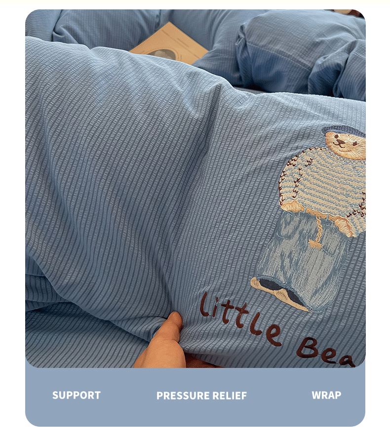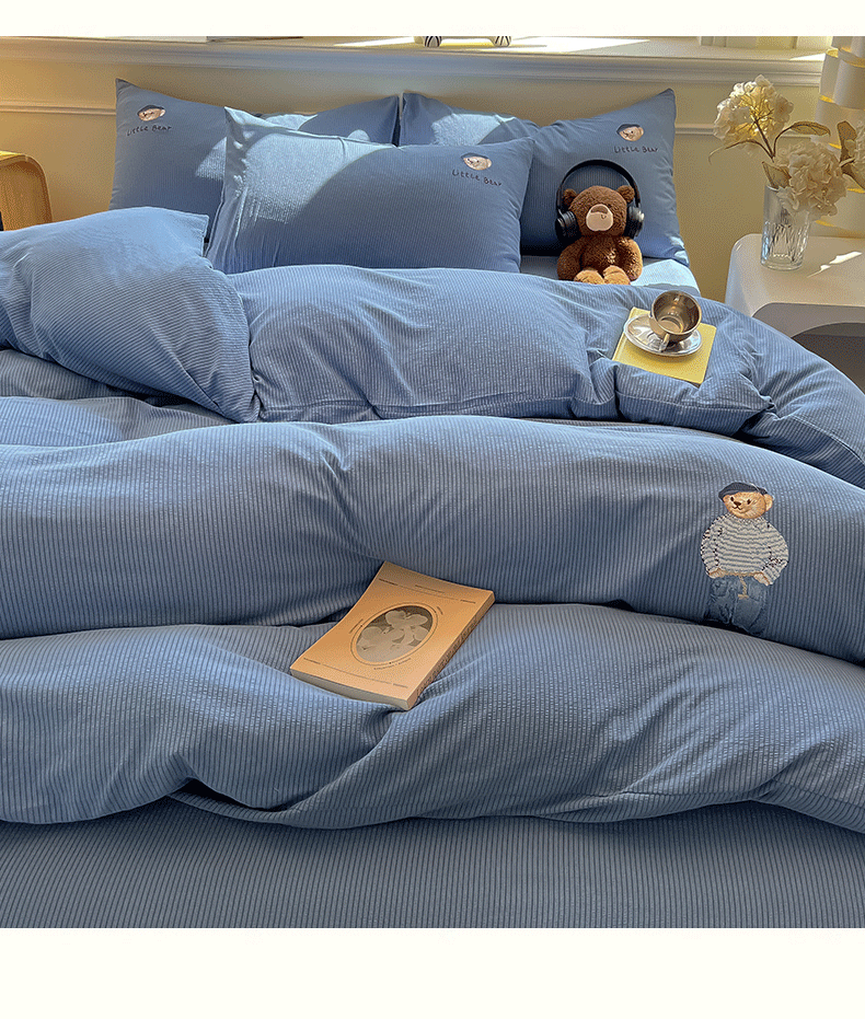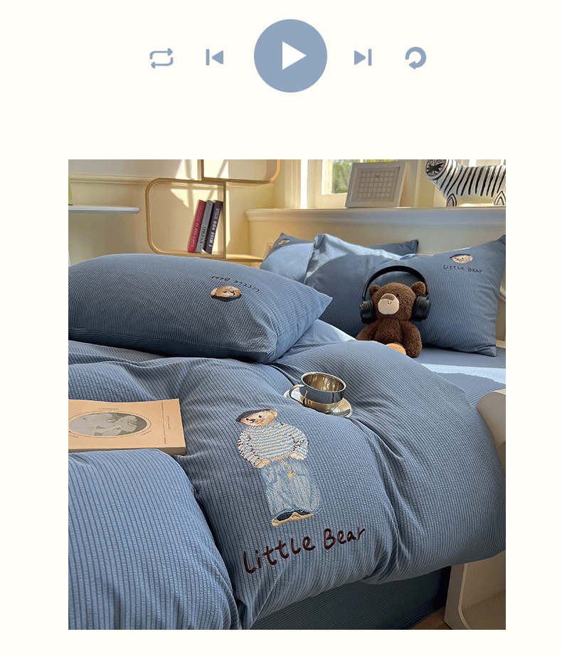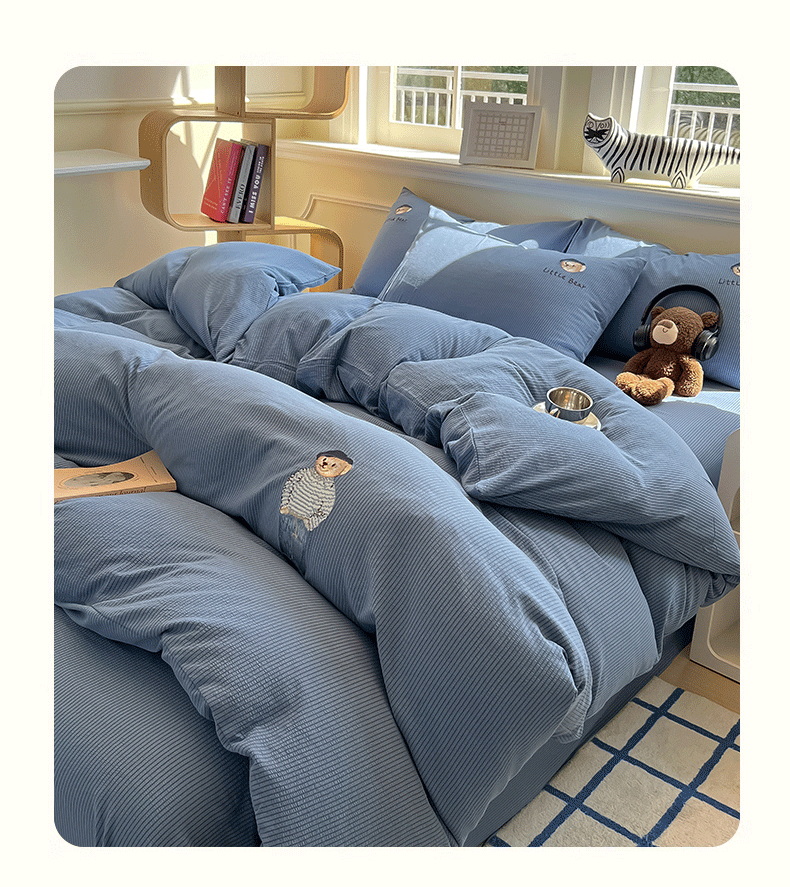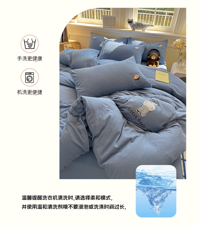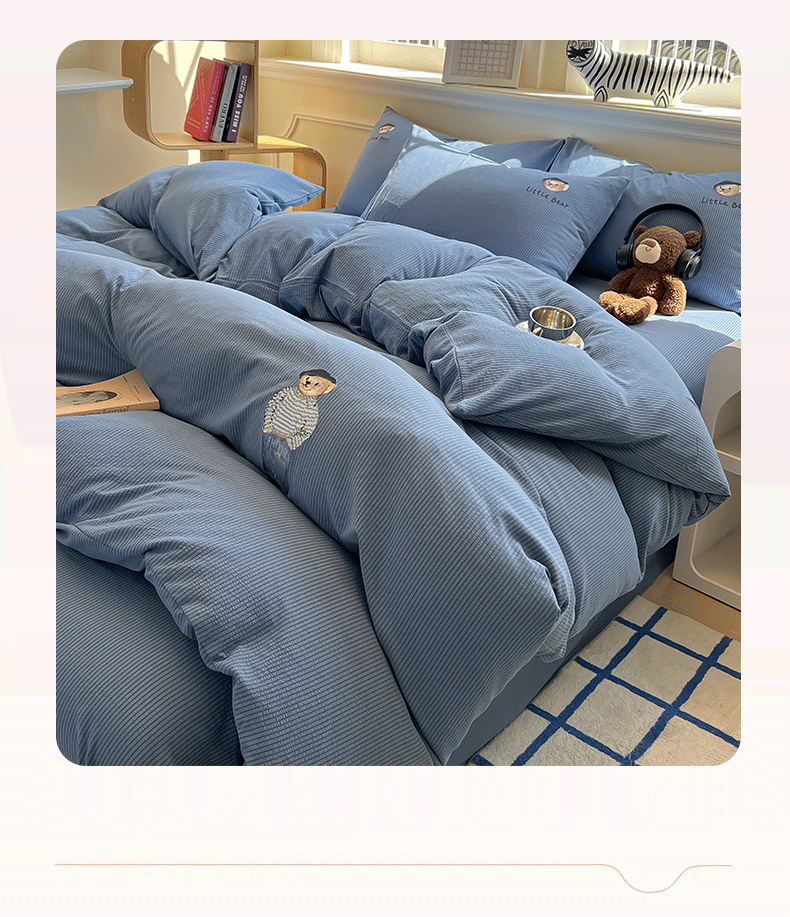 (总)眠帛家居 2024新款水洗棉提花刺绣四件套熊先生-风格二