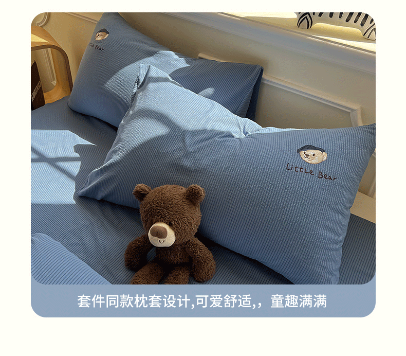 (总)眠帛家居 2025新款A类水洗棉卡通毛巾绣单床笠,海宝,小八,小星,小熊-奶咖,小熊-天空蓝,蟹宝,鸭鸭