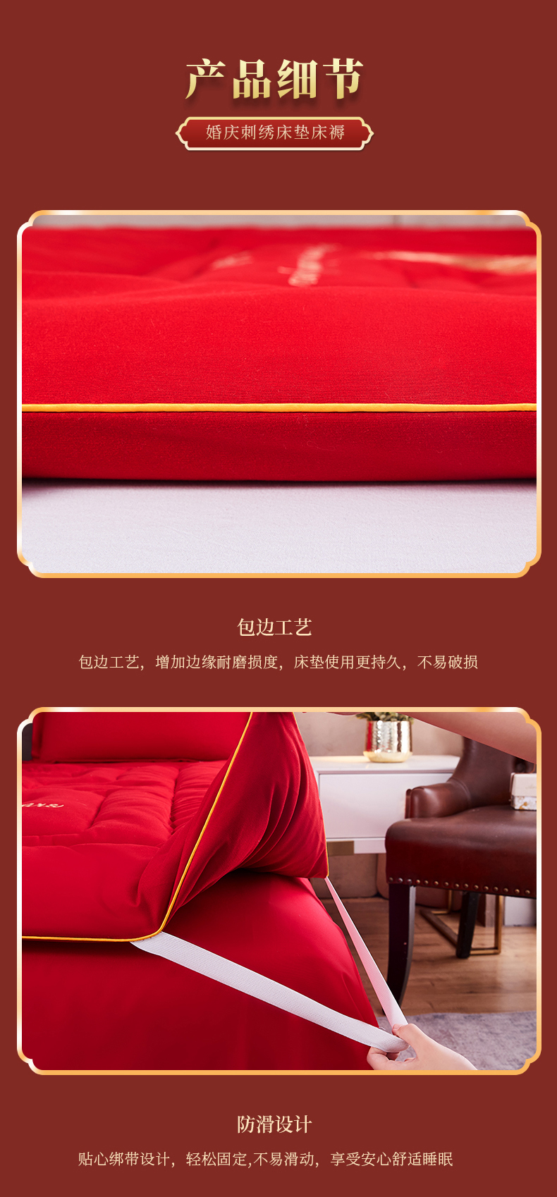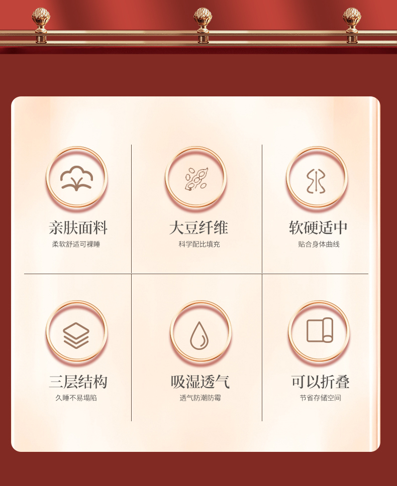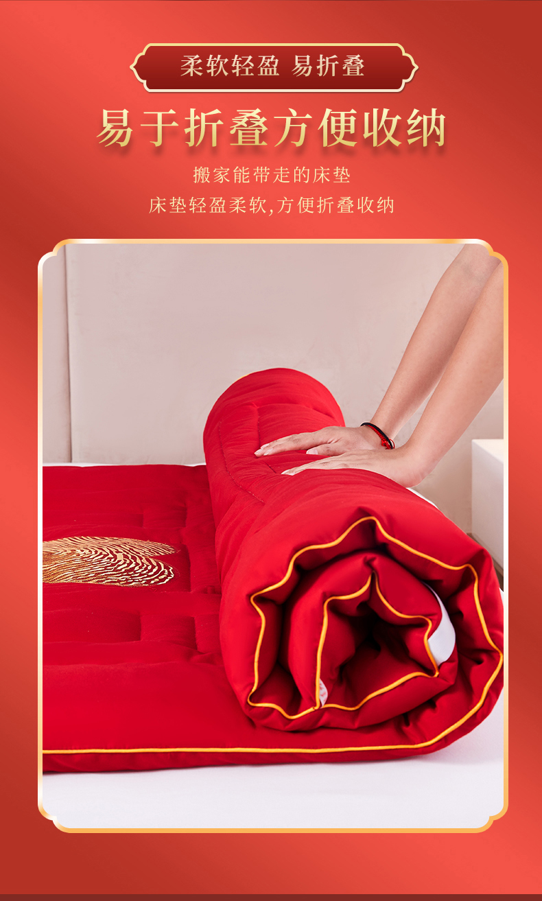 (总)玉雅家纺 2025新款立体婚庆绣花大豆床垫床褥加厚垫被,圆圆满满-红,圆圆满满-米