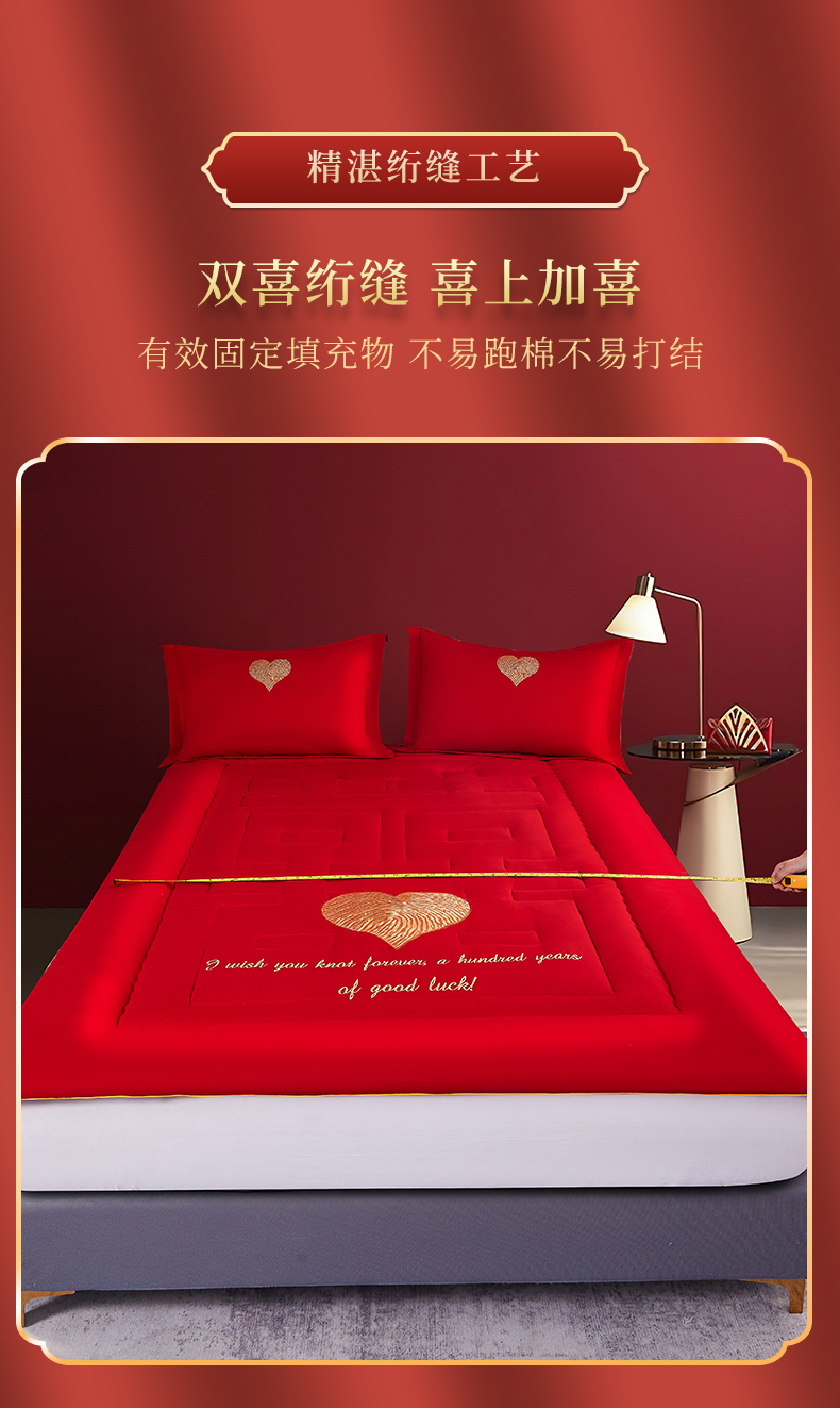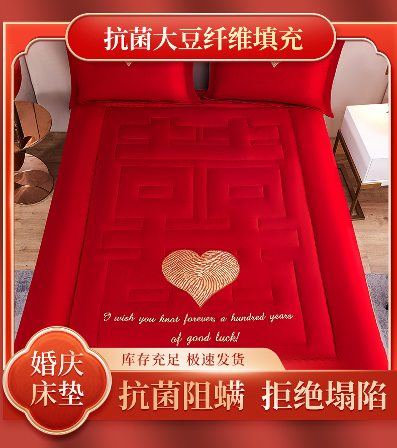 商品名称:玉雅家纺 2025新款婚庆绣花结婚棉花大豆床垫床褥加厚垫被 大豆床垫-心心相印