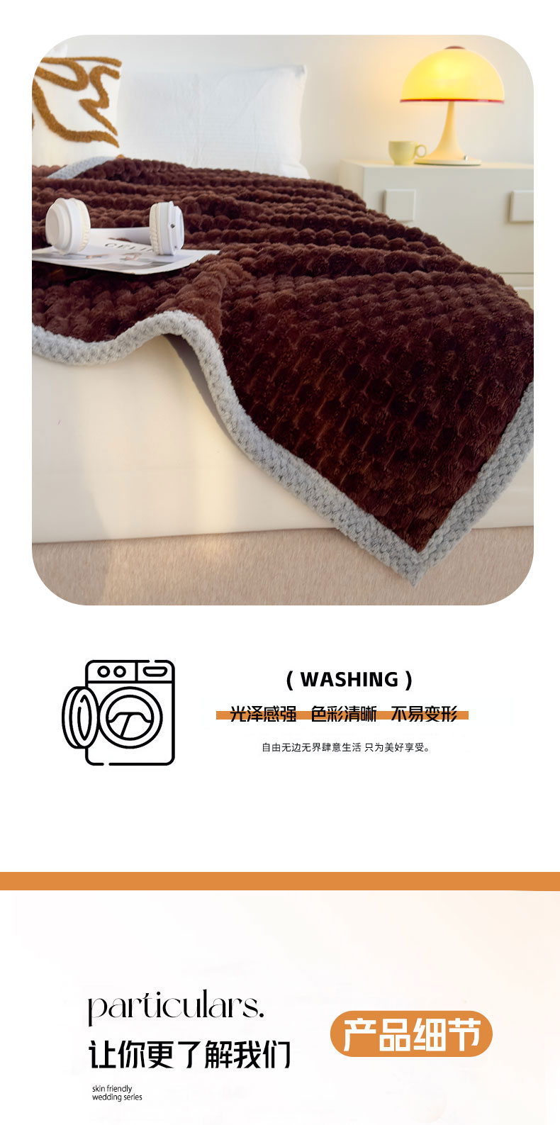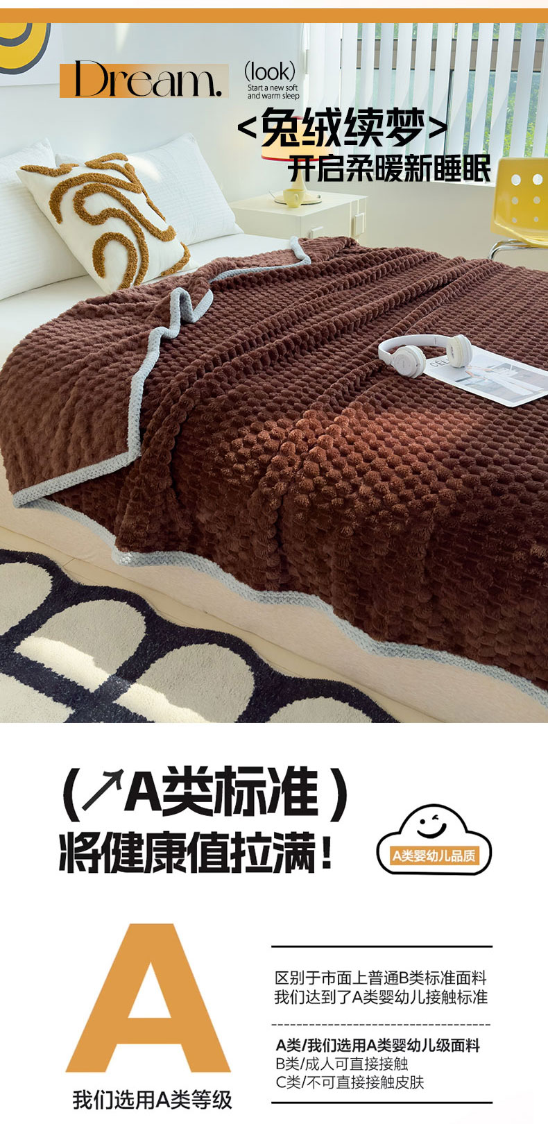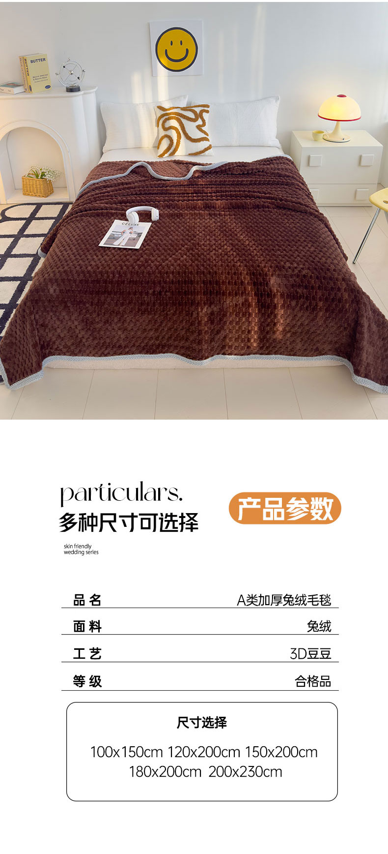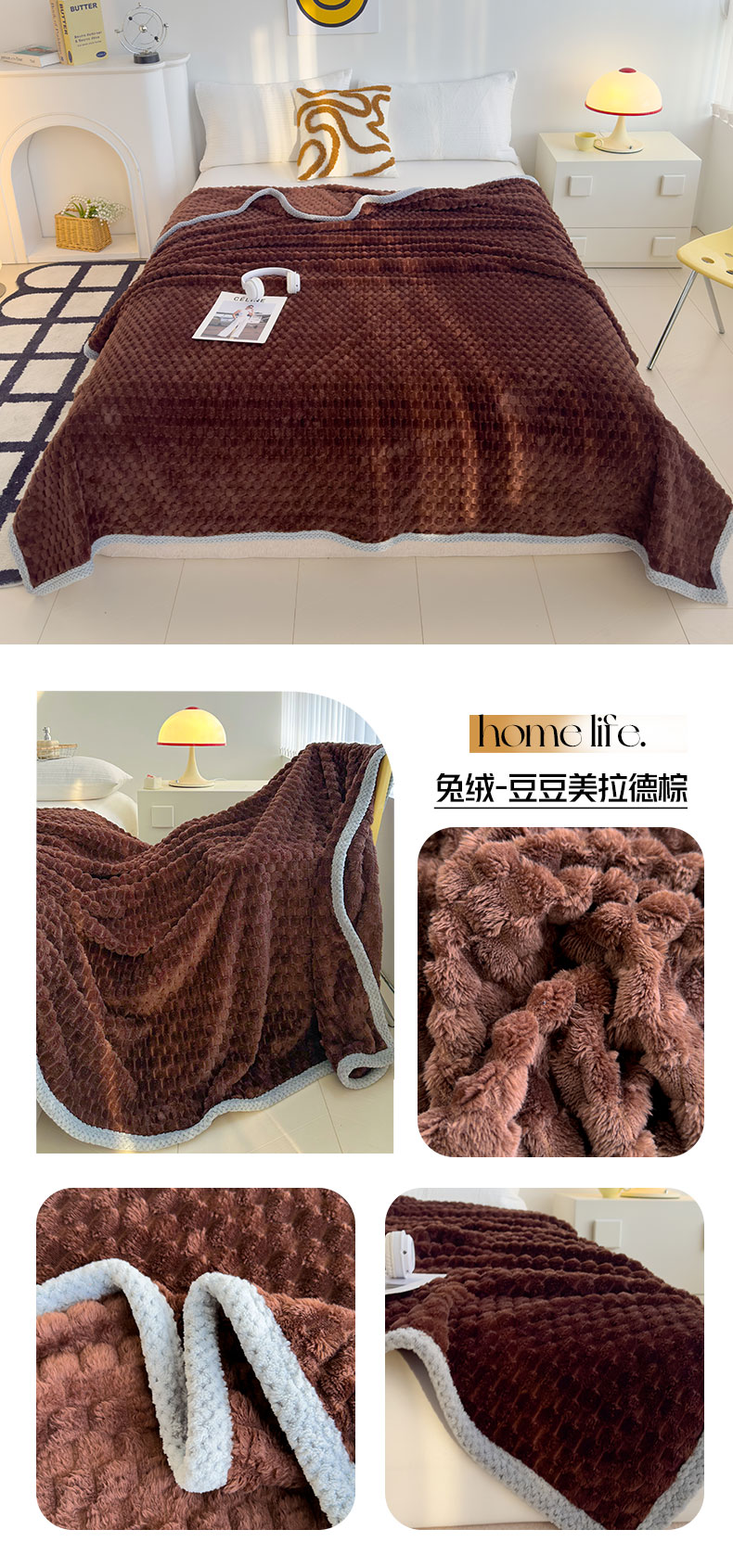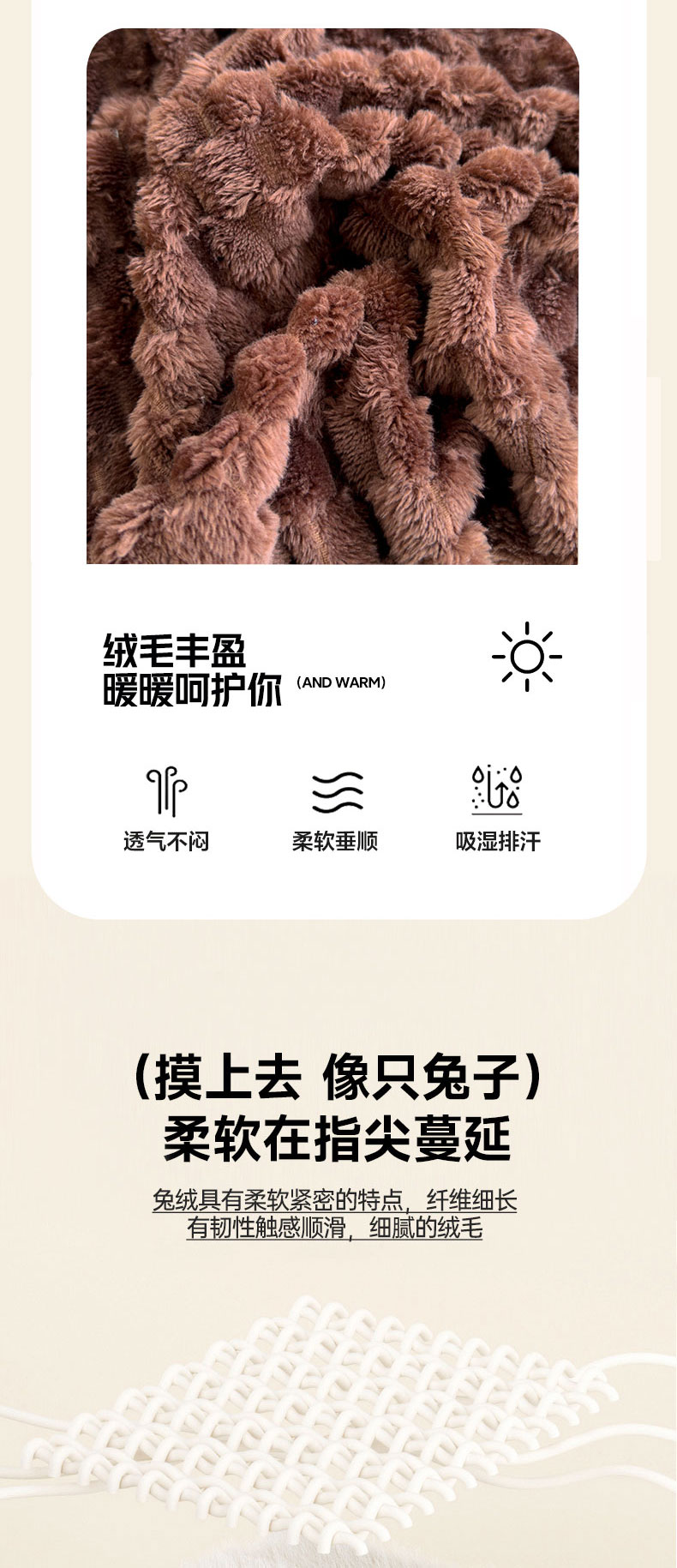 商品名称:灰鲸 2025新款A类加厚罗马纹豆豆剪花兔绒毛毯 兔绒-豆豆美拉德棕