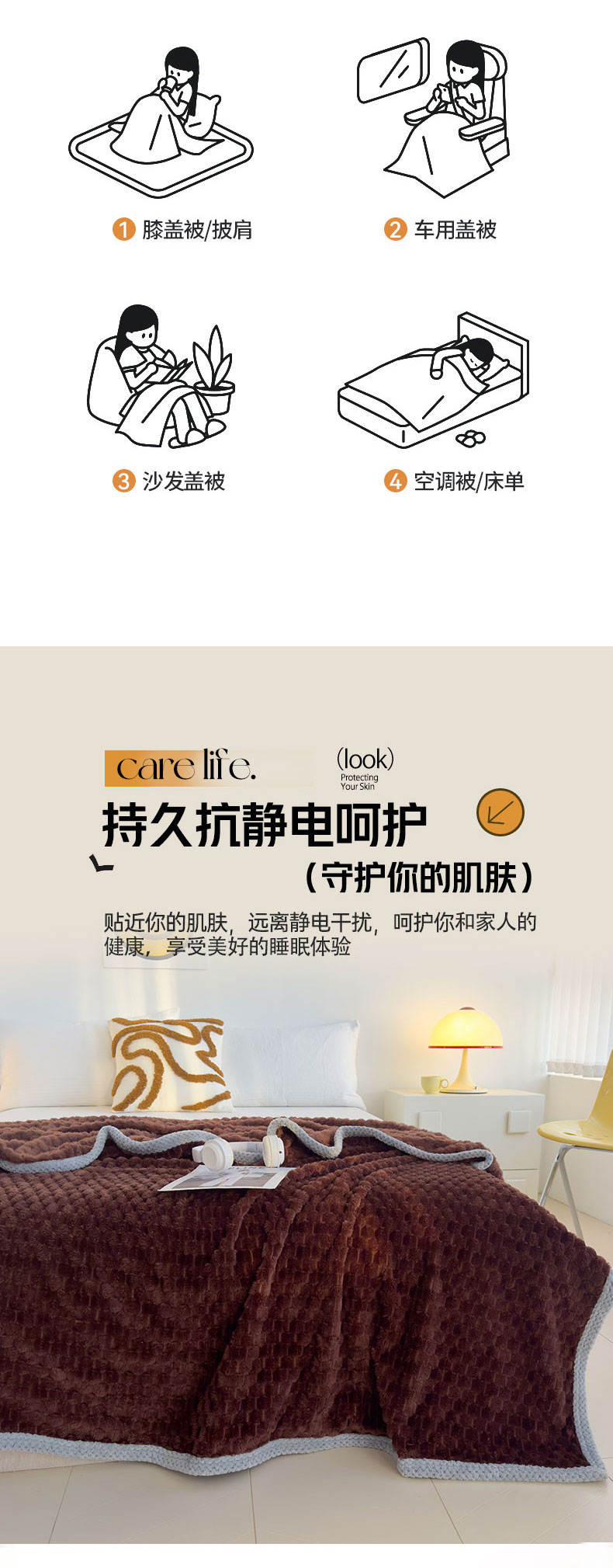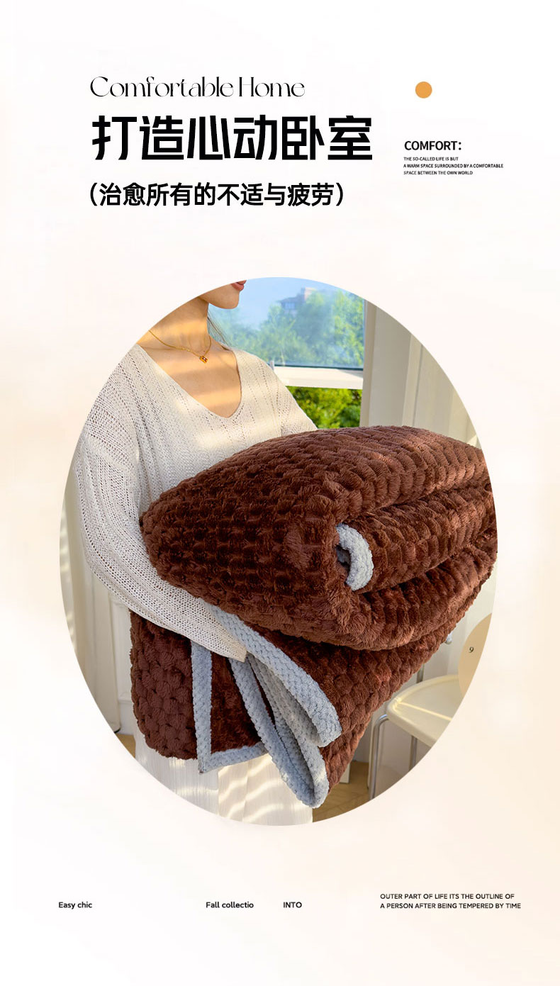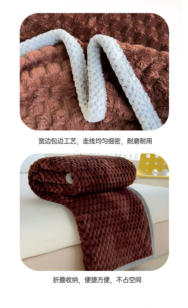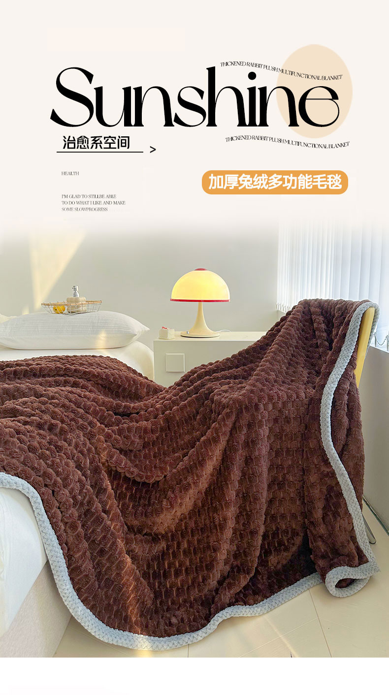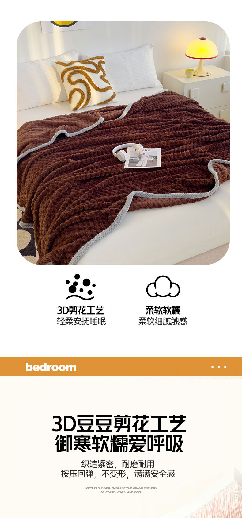 商品名称:灰鲸 2025新款A类加厚罗马纹豆豆剪花兔绒毛毯 兔绒-豆豆美拉德棕