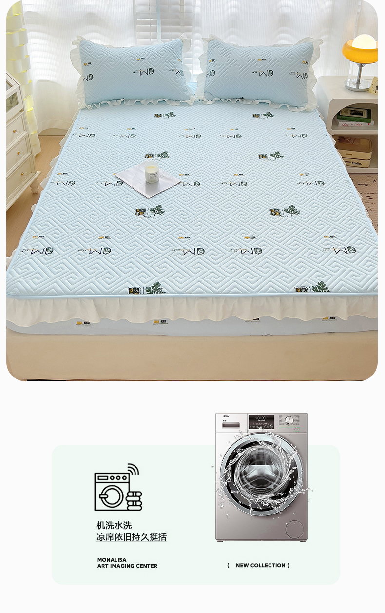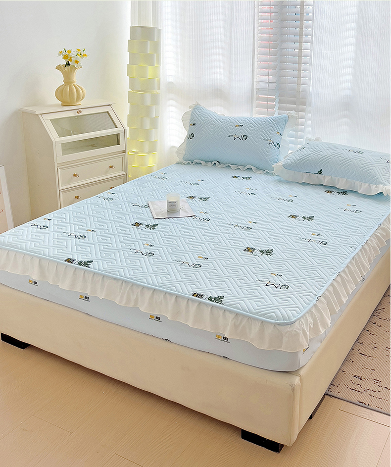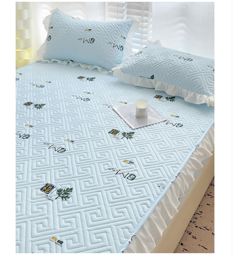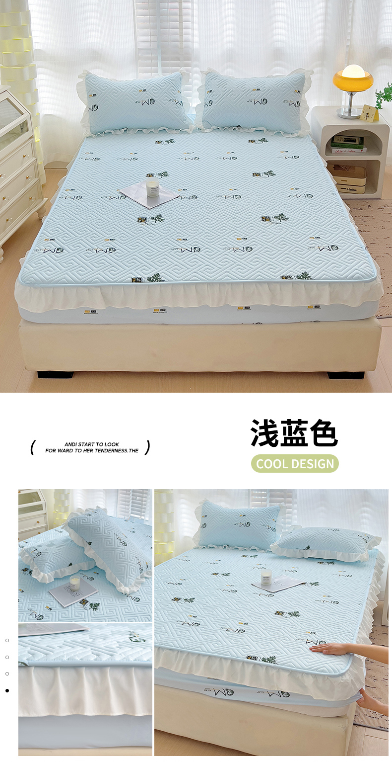 恒尚居 2024新款夹棉床笠印花艾草抗菌防滑床单-四季款【支持定做】 艾草-花边床笠【浅蓝色】