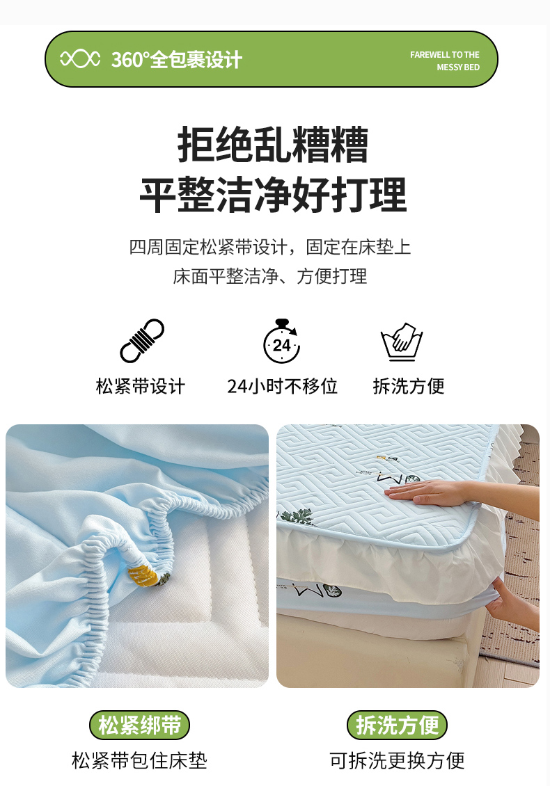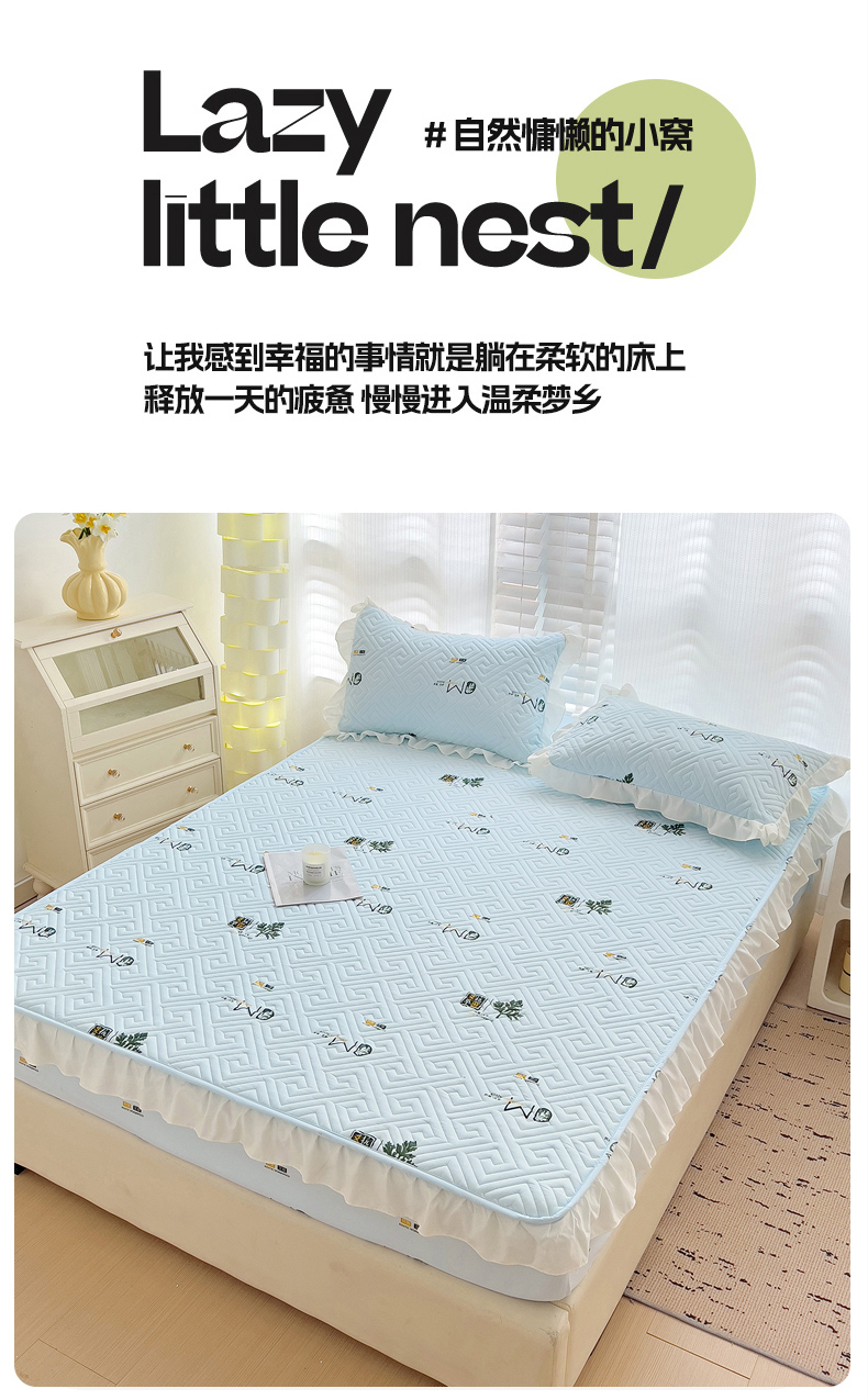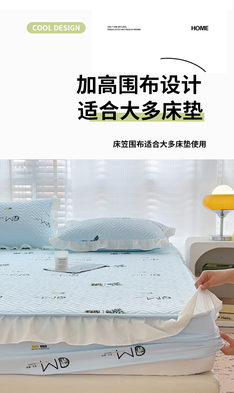 • 91家纺网 家纺一手货源 找家纺 恒尚居 2024新款夹棉床笠印花艾草抗菌防滑床单-四季款【支持定做】 艾草-花边床笠【浅蓝色】