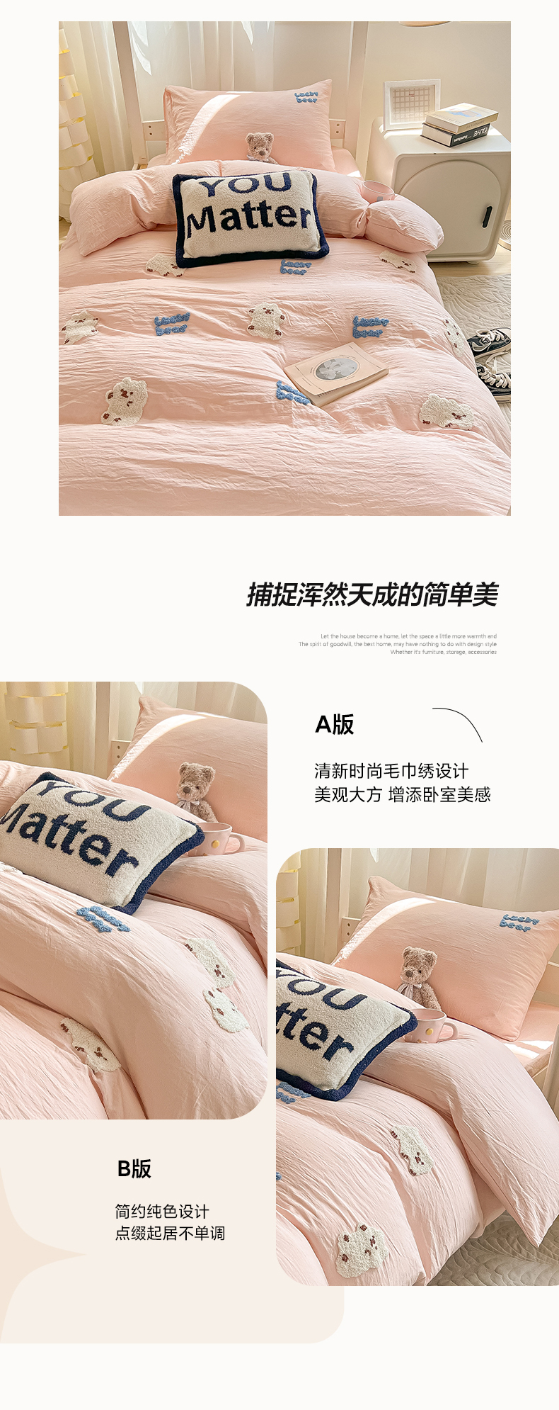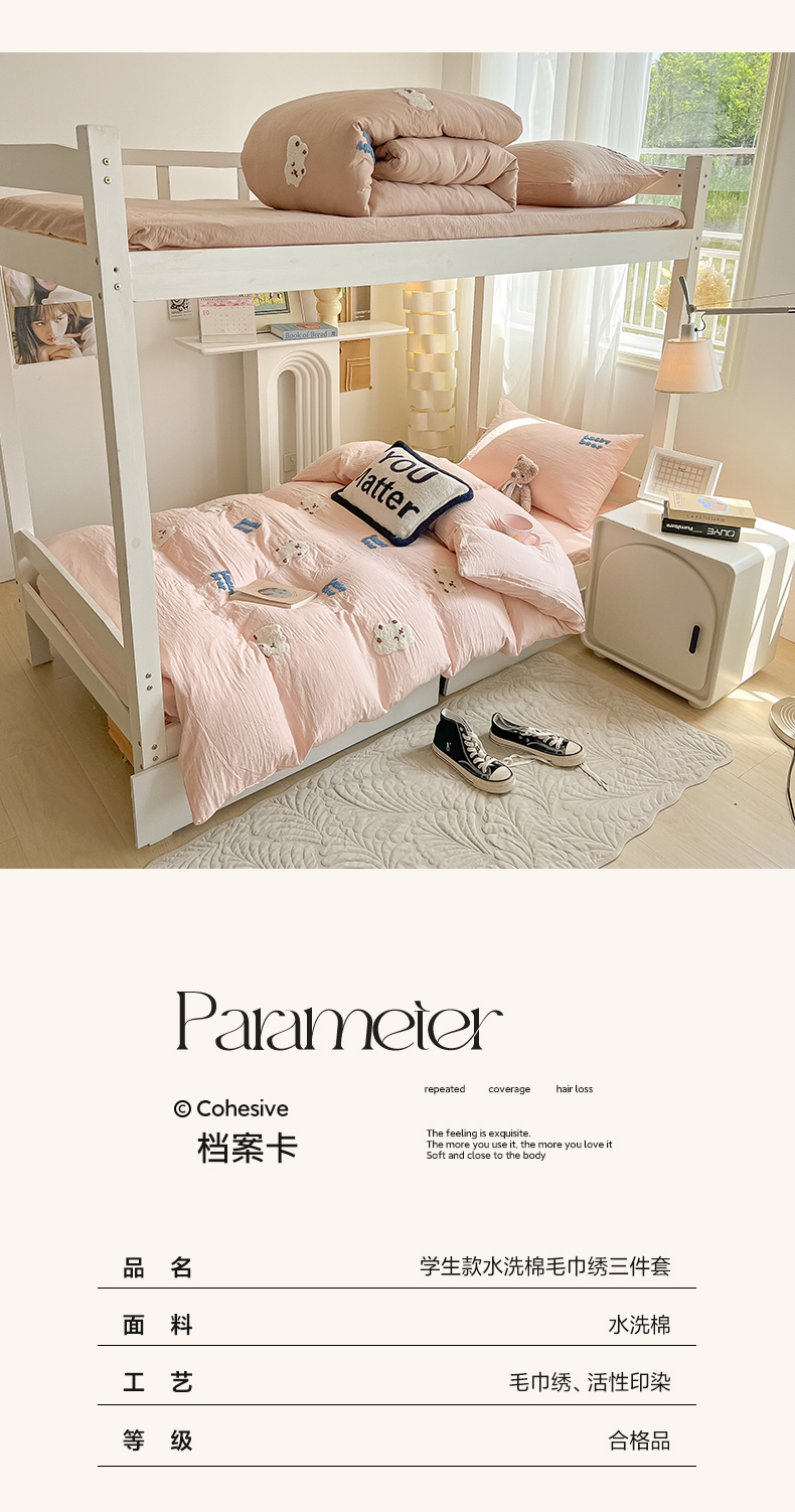 韩巢家纺 2024新款学生宿舍寝室上下铺超柔水洗棉毛巾绣单件被套-小白熊(提供卖家秀) 小白熊 浅粉