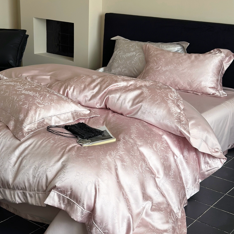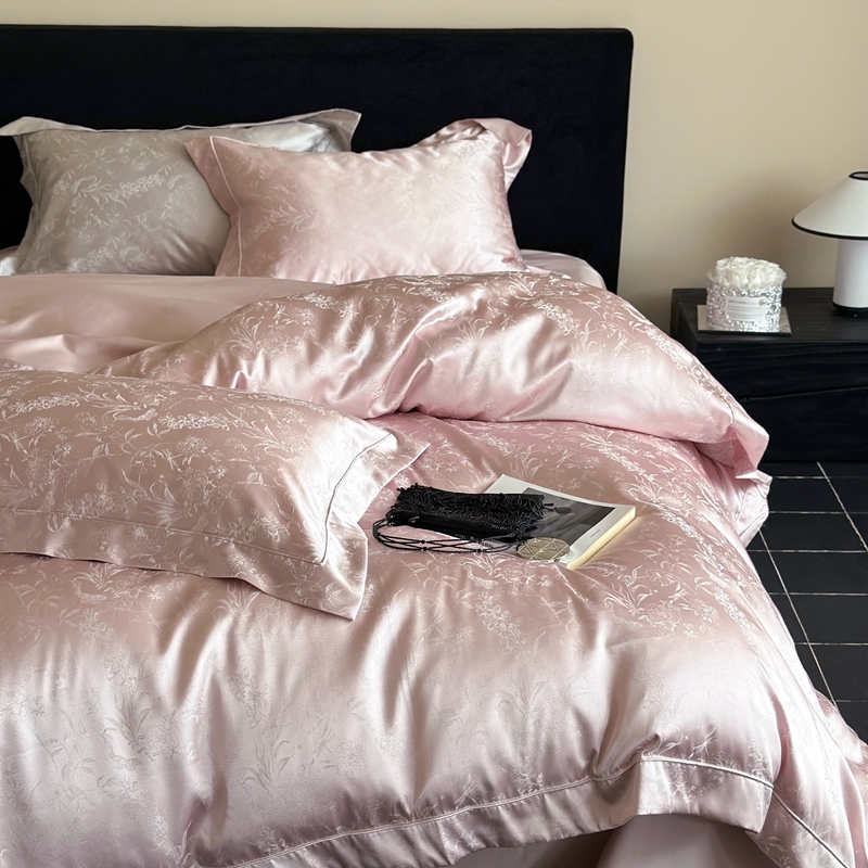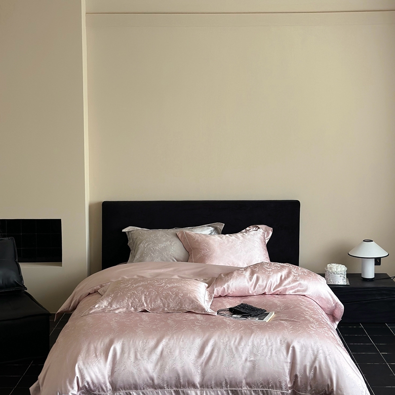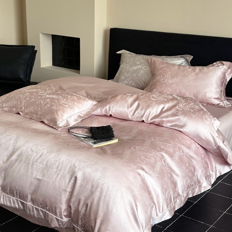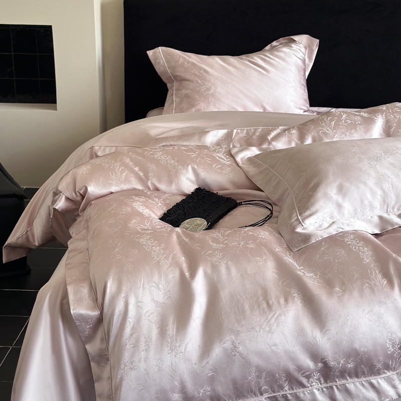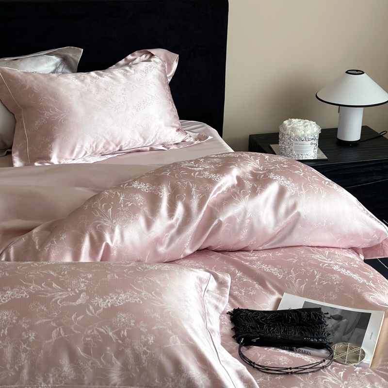 (总)鹿班2024新款100支长绒棉四件套提花系列-甜心 标准会员-20,甜心-粉