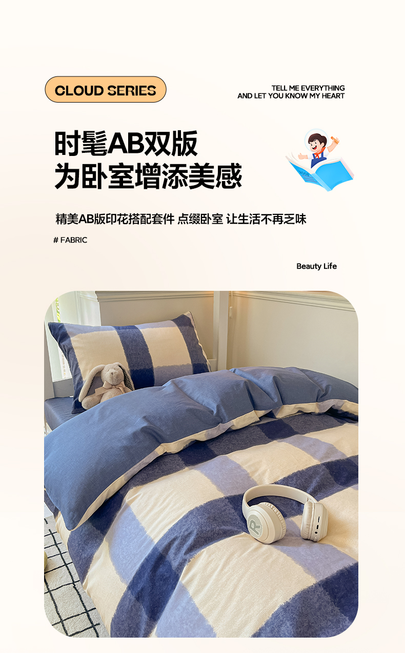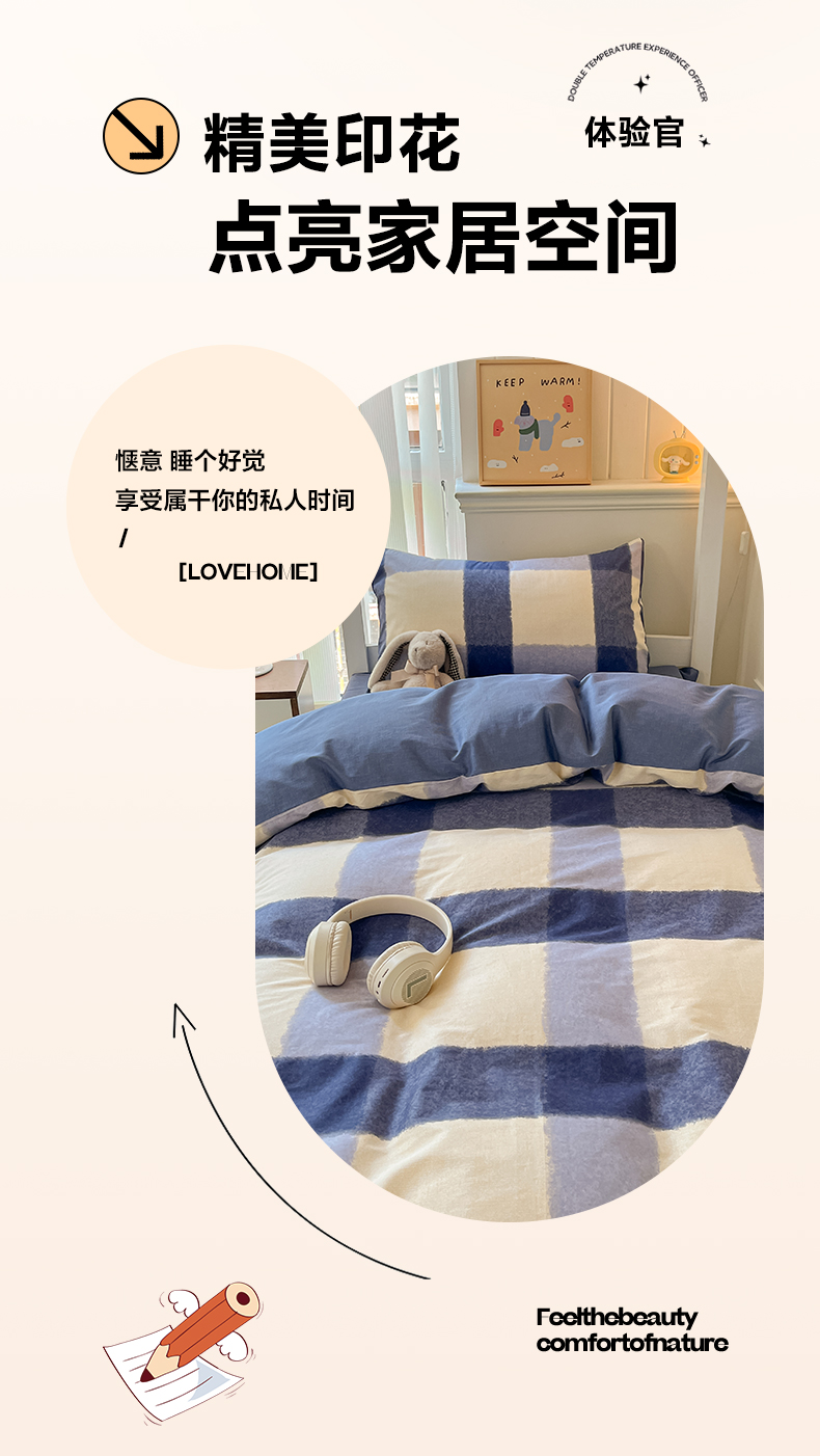 当前位置: 91家纺网 > 商品网购 > 床品套件 > 四件套 > 全棉普通四件套 > 雅居纺 2024新款全棉印花学生季套件 复古格子蓝