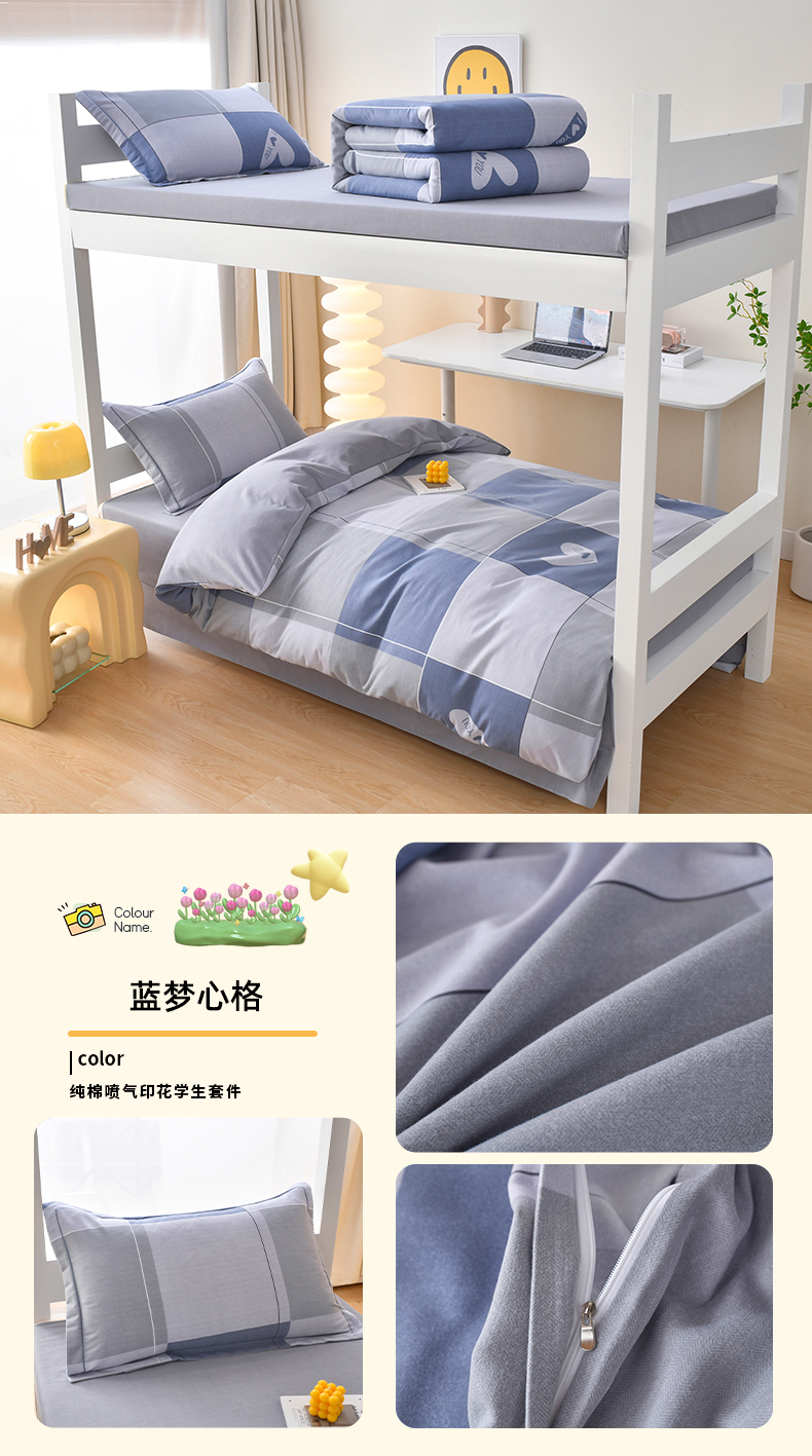 当前位置: 91家纺网 > 商品网购 > 床品套件 > 四件套 > 全棉普通四件套 > 优尚 2025全棉纯棉磨毛喷气印花学生三件套 蓝梦心格