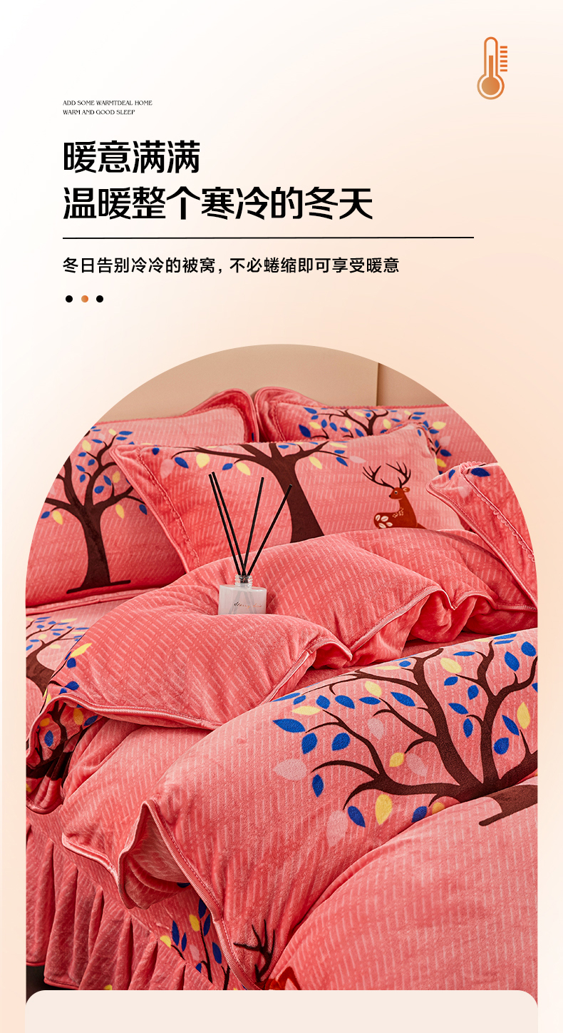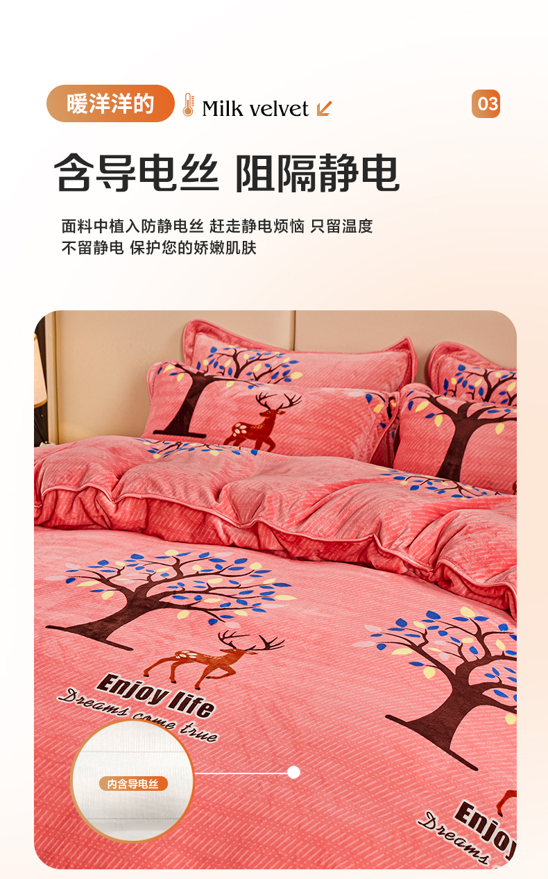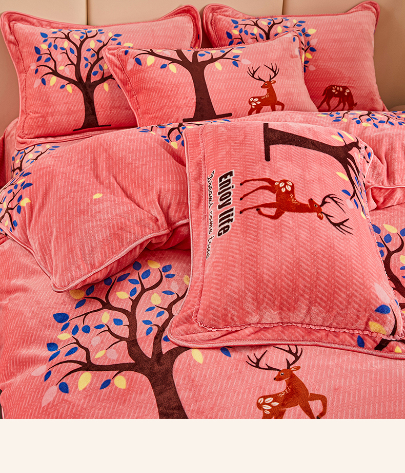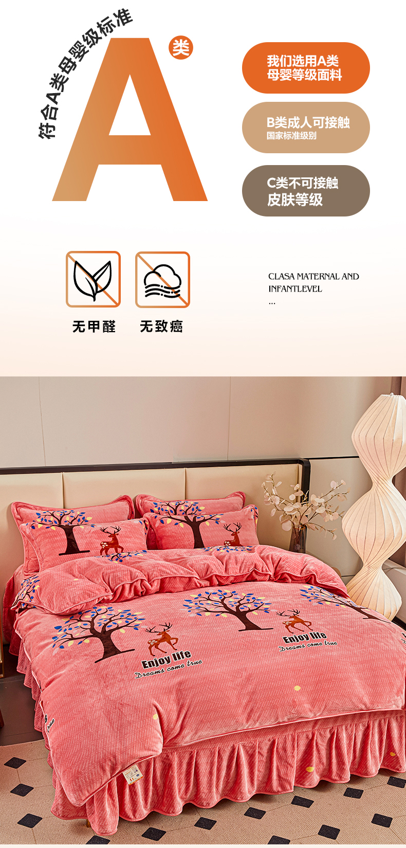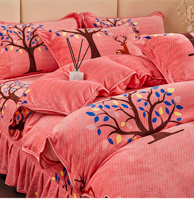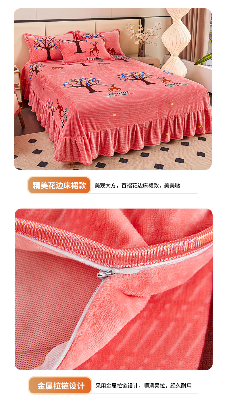 当前位置: 91家纺网 > 商品网购 > 床品套件 > 四件套 > 牛奶绒四件套 > 博兰蒂 2025新款床裙款高克重牛奶绒印花四件套 发财鹿