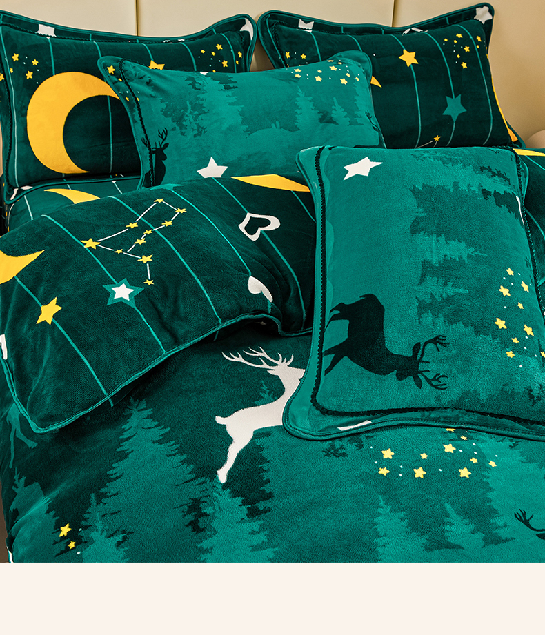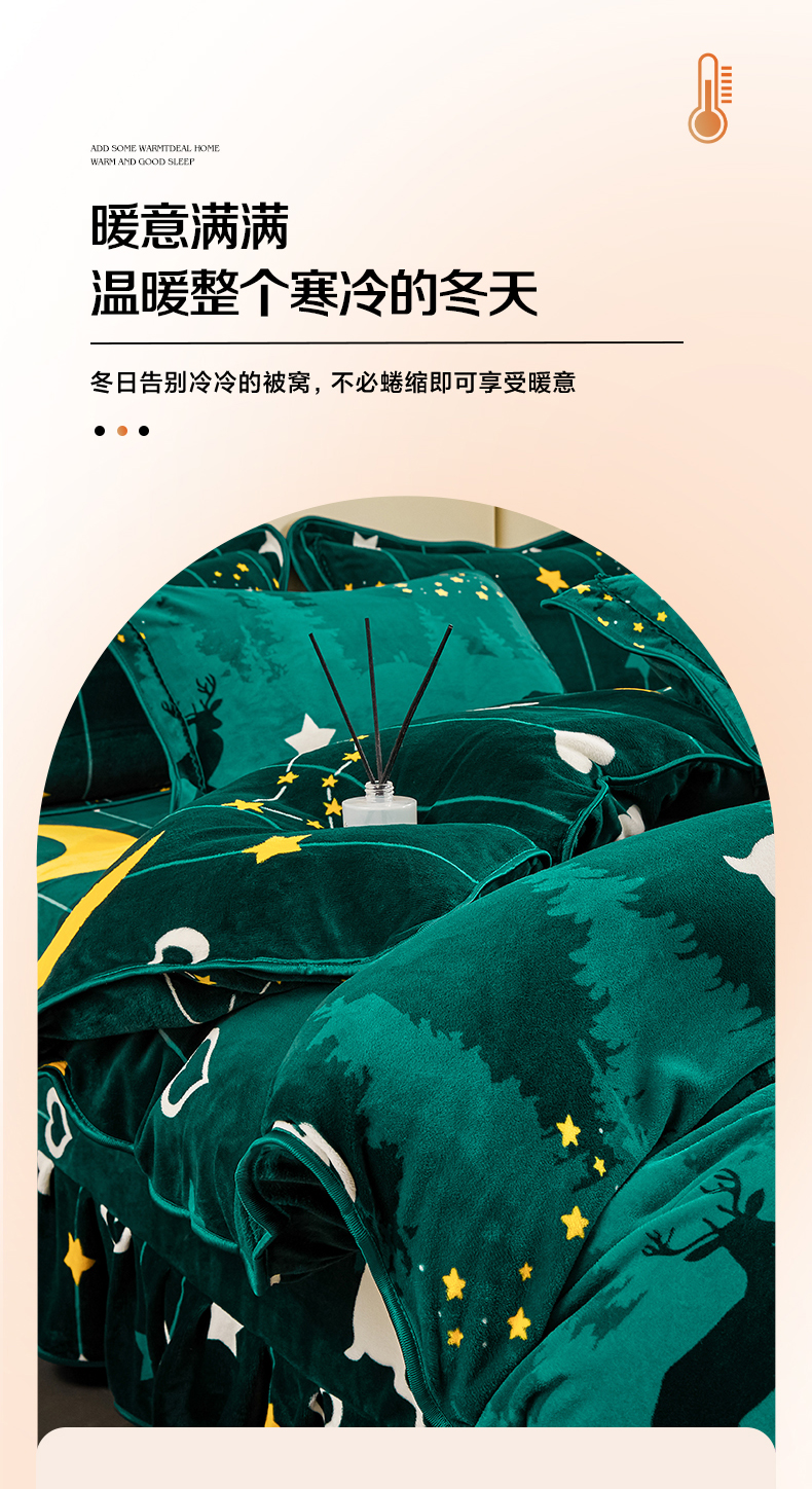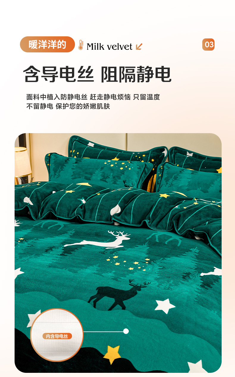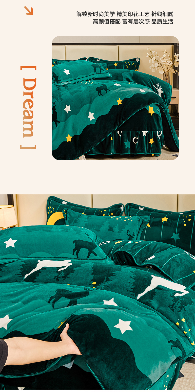 当前位置: 91家纺网 > 商品网购 > 床品套件 > 四件套 > 牛奶绒四件套 > 博兰蒂 2025新款床裙款高克重牛奶绒印花四件套 迷情鹿