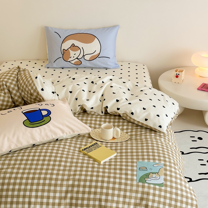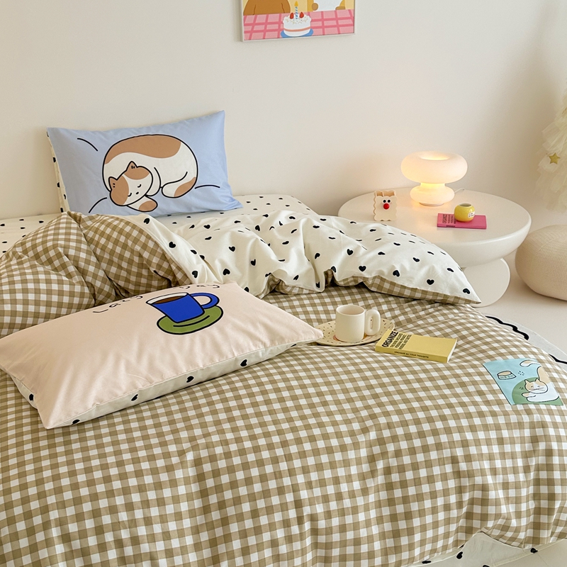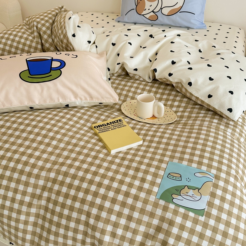 (总)2023新款40支纱全棉13070锁边工艺款四件套系列,格子爱心,嘉兰,咖条,朗尼,小兔兔,星星兔