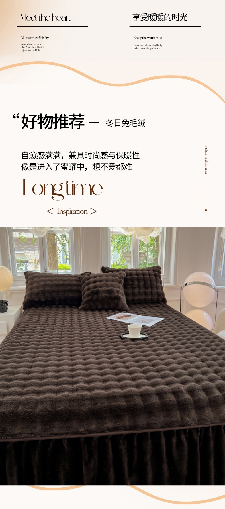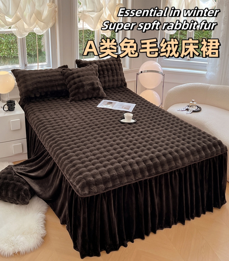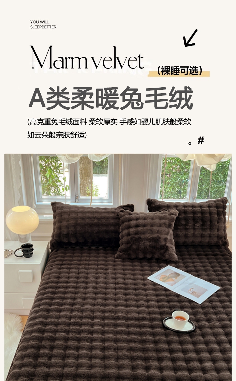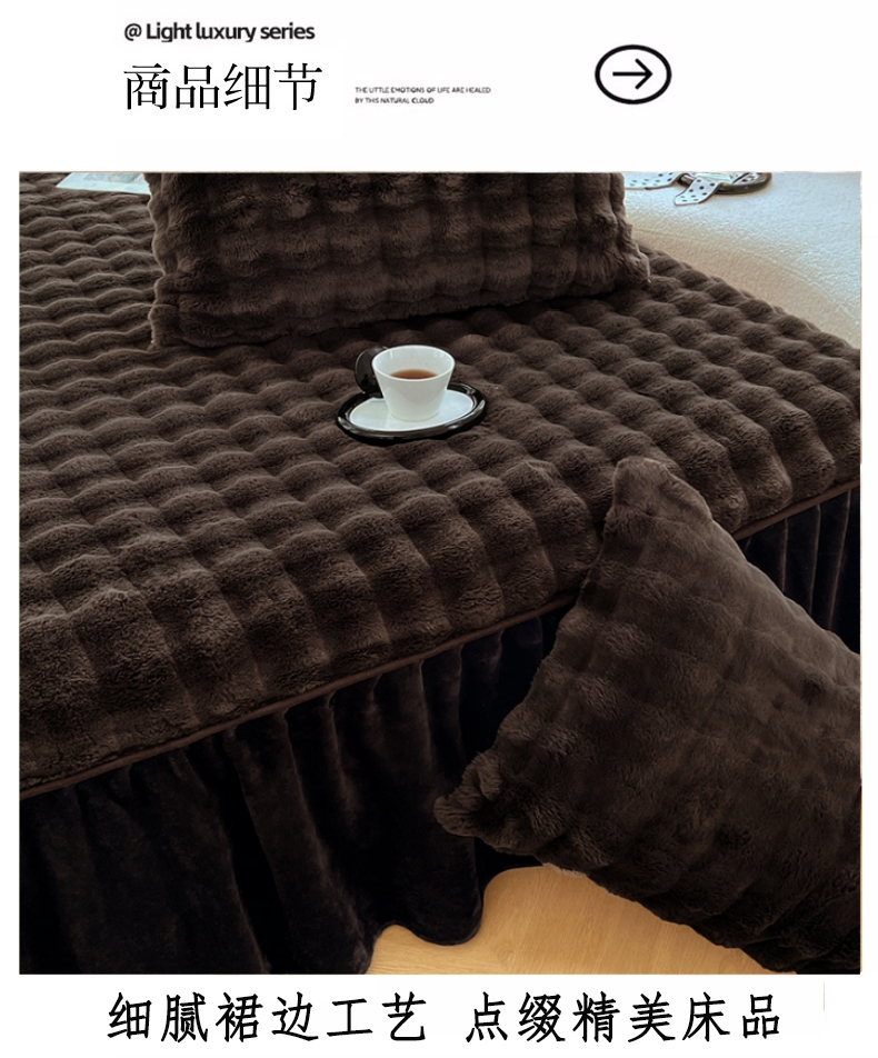 商品名称:圣比熊 2025新款兔毛绒床裙水晶绒床垫保护罩牛奶绒床垫床单罩 咖啡色
