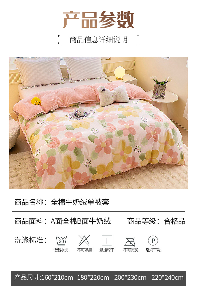 商品名称:2024新款全棉加牛奶绒四件套单被套系列-单被套 恋恋花语