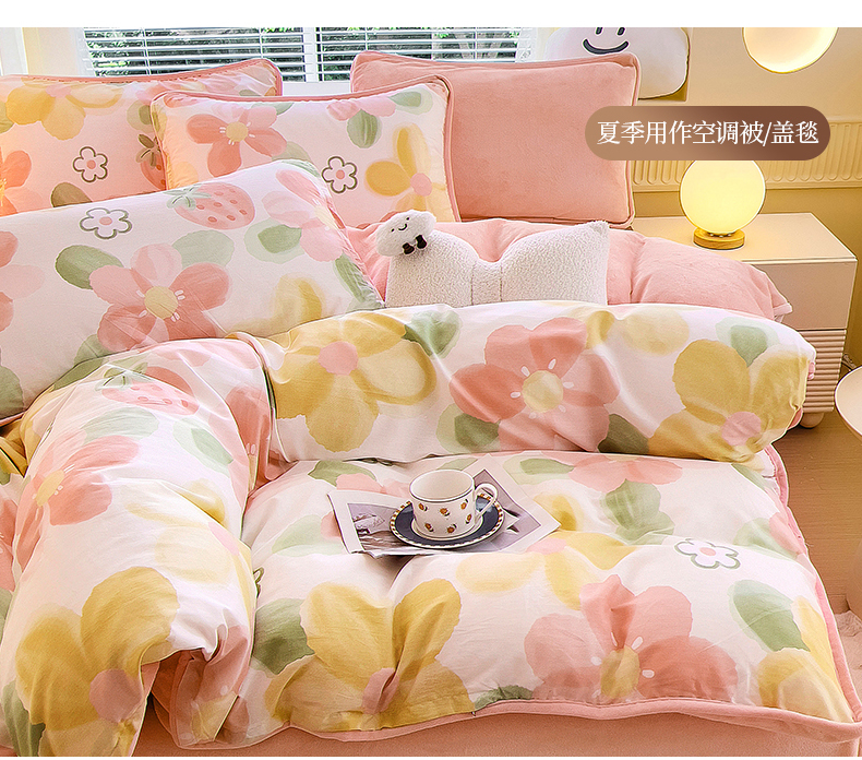 琪琪阁 2023新款A棉B绒棉加绒牛奶绒四件套单被套 向阳花开,向阳花开