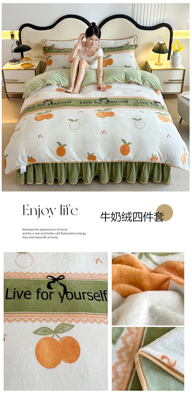 商品名称:爱洛 2024新款日产过万爆款印花牛奶绒四件套 心想事橙
