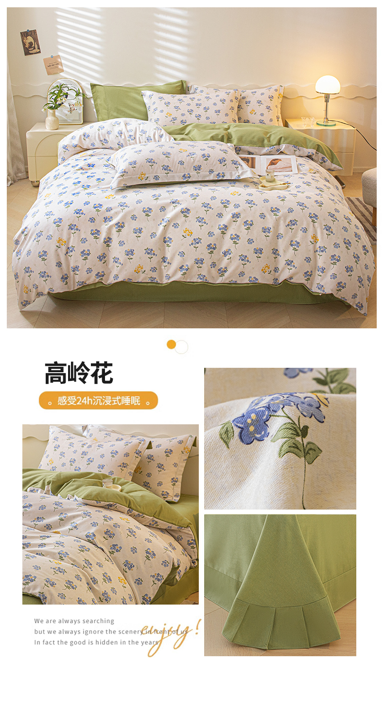 商品名称:启程家纺 2024全棉生态磨毛印花四件套 高岭花