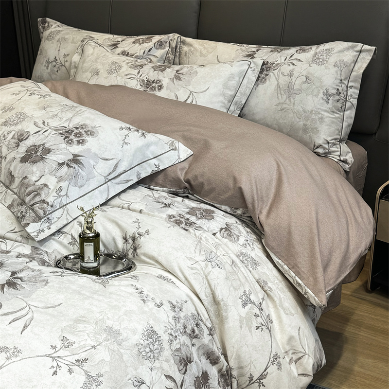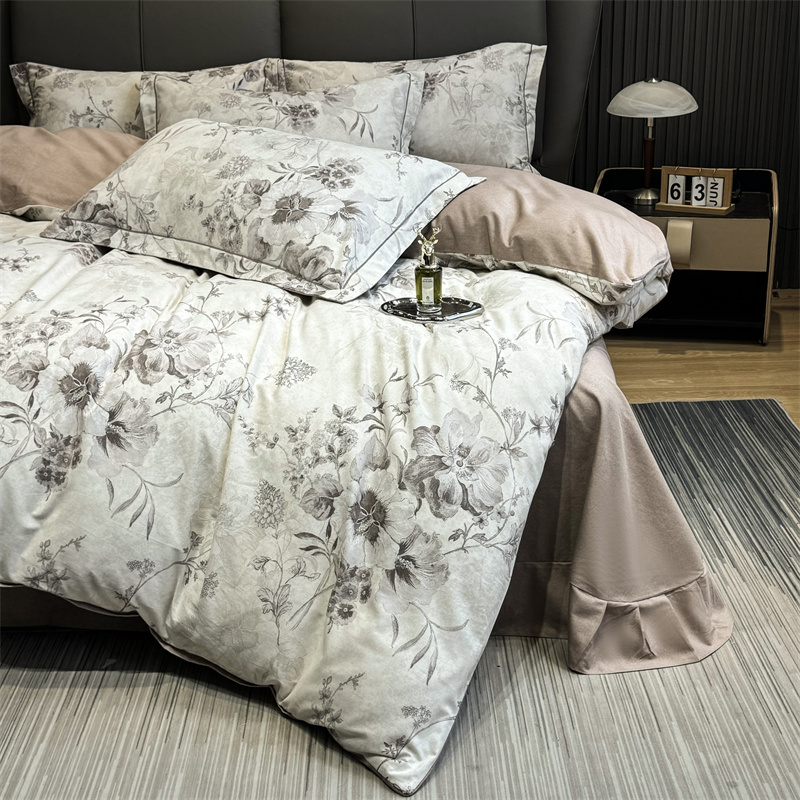 (总)嘉汀兰家居 2025新款长绒棉磨毛四件套—蔓莎,豆沙,灰色,桔色,绿色,香槟,紫色