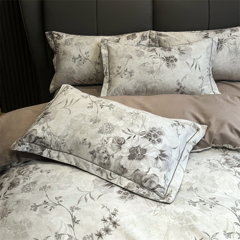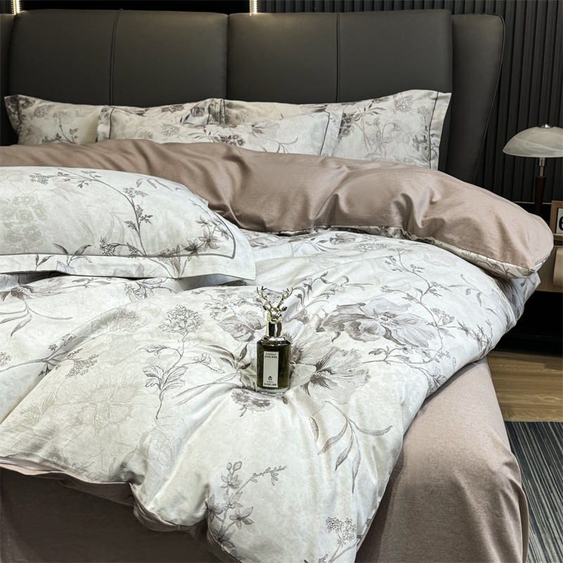 (总)嘉汀兰 2023新款60支全棉磨毛绣花撞色轻奢四件套—暮里,粉色,红灰色,芥绿色,浅灰色,深青色