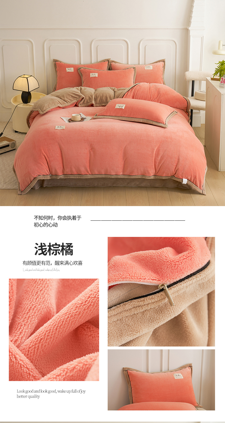 当前位置: 91家纺网 > 商品网购 > 床品套件 > 四件套 > 牛奶绒四件套 > 贝诗梦 2025新款高克重纯色牛奶绒宽边工艺款四件套 双拼牛奶绒-浅棕橘十深驼