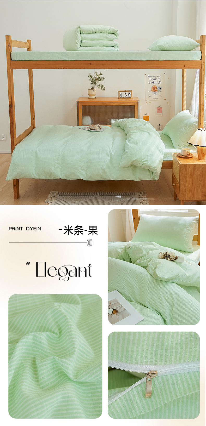 商品名称:棉小二 2024新款全棉水洗棉学生宿舍三四件套 米条-果绿
