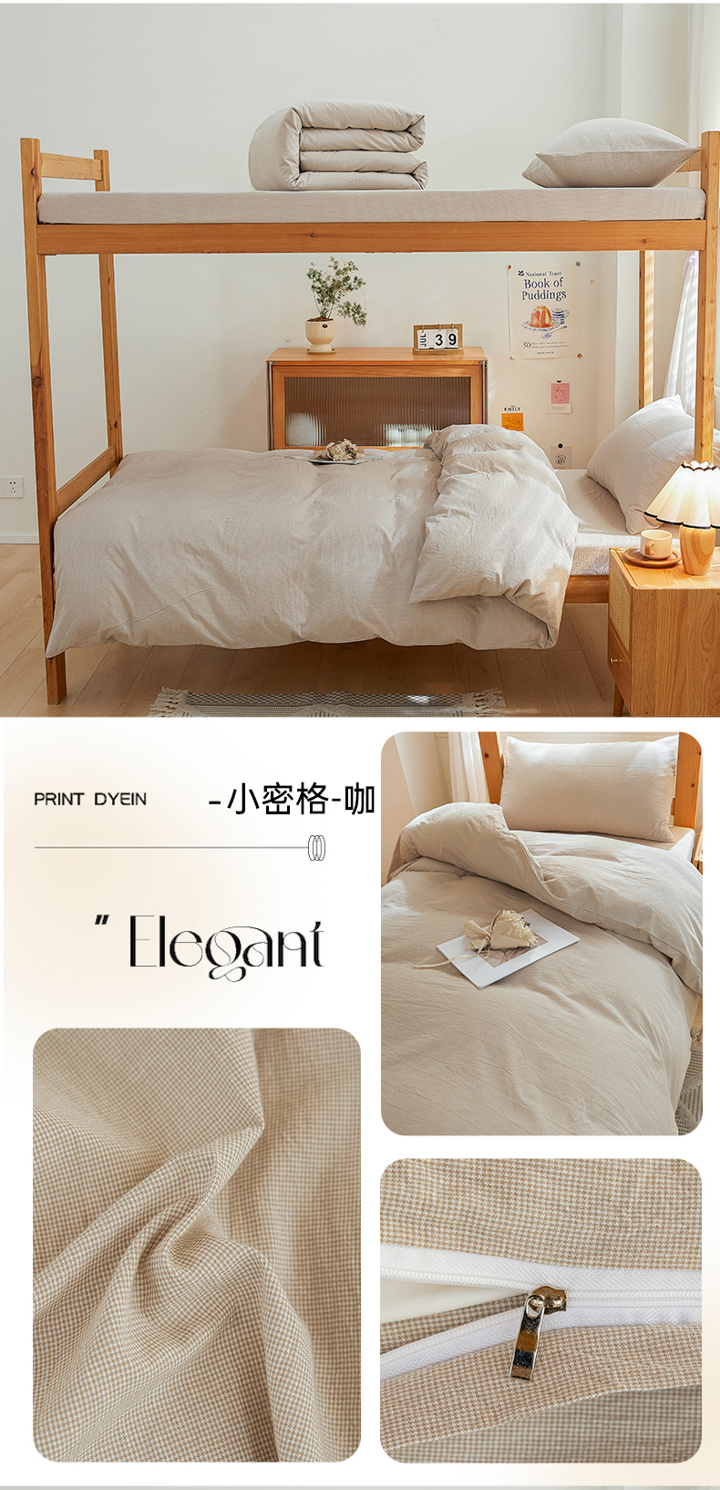 商品名称:棉小二 2024新款全棉水洗棉学生宿舍三四件套 小密格-咖