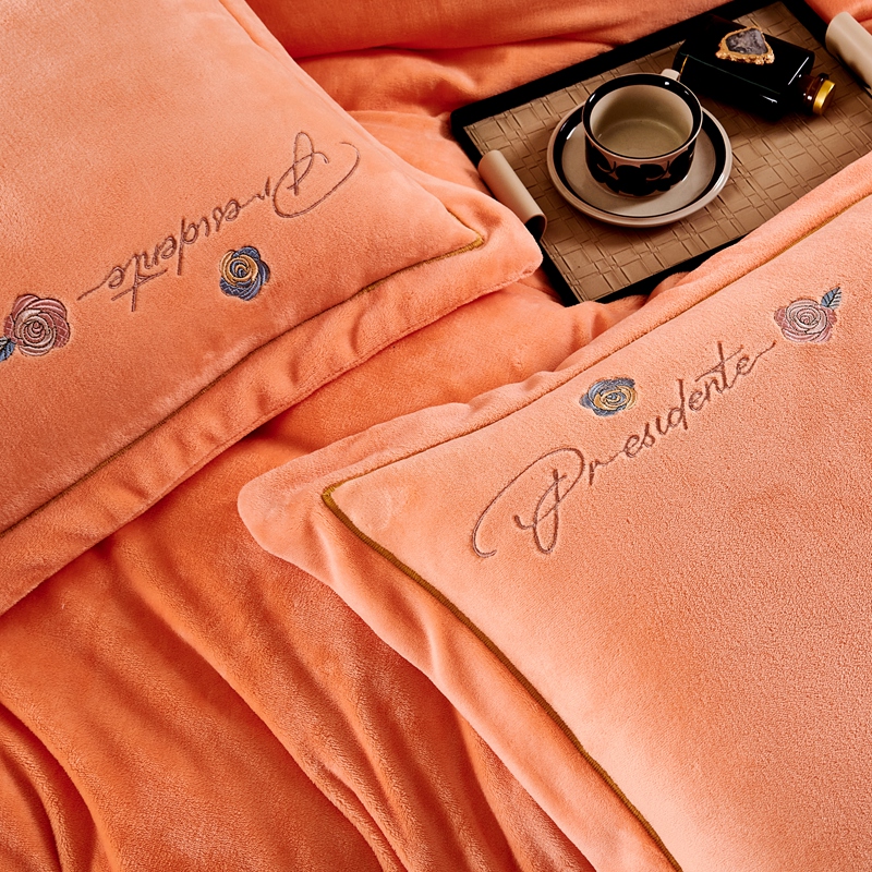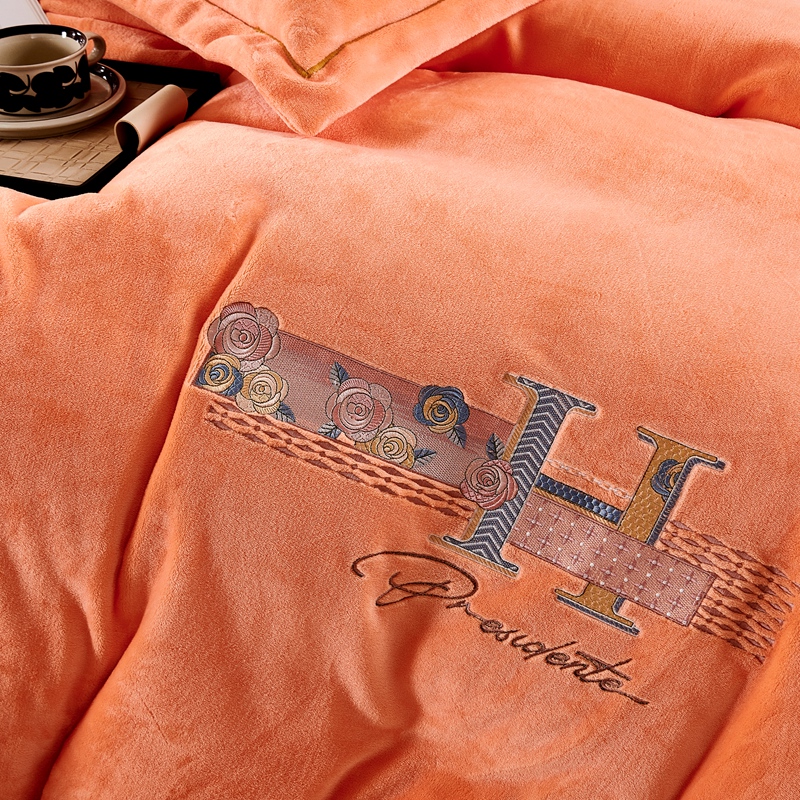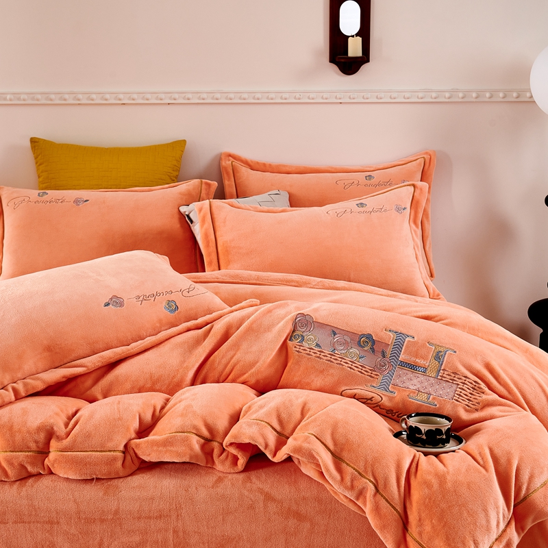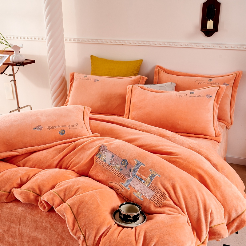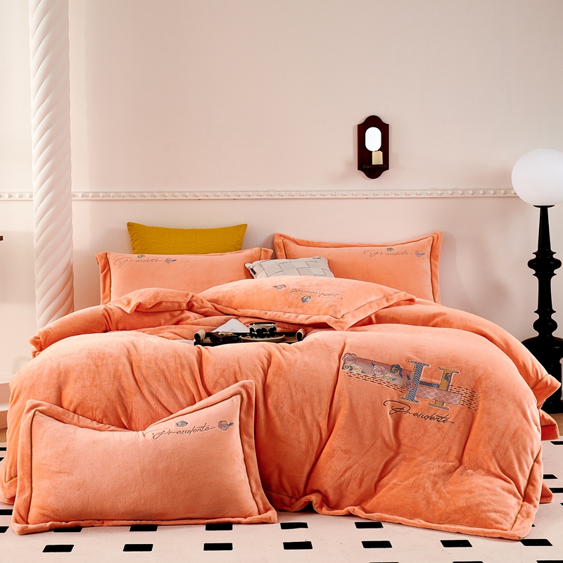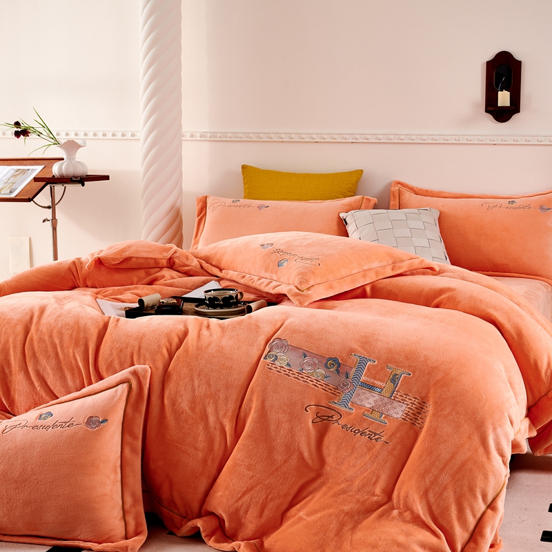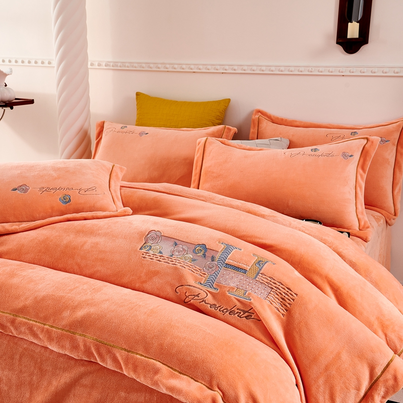 昊翔2024新款牛奶绒刺绣四件套 莫奈-浅桔
