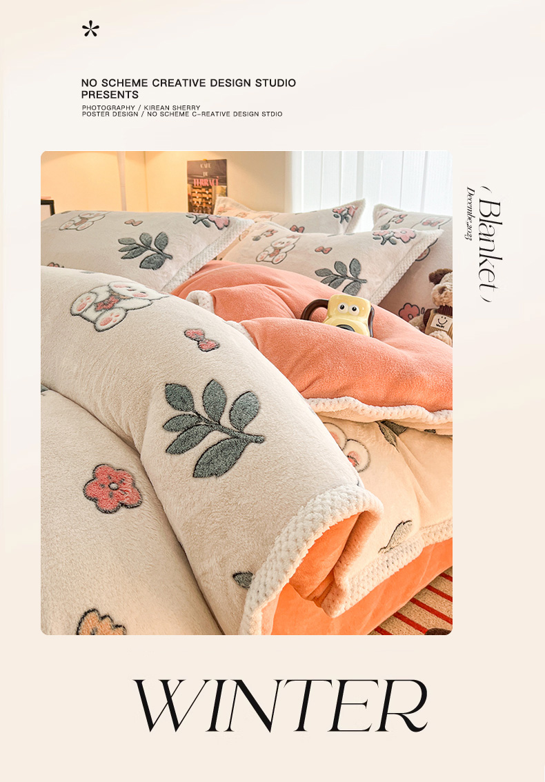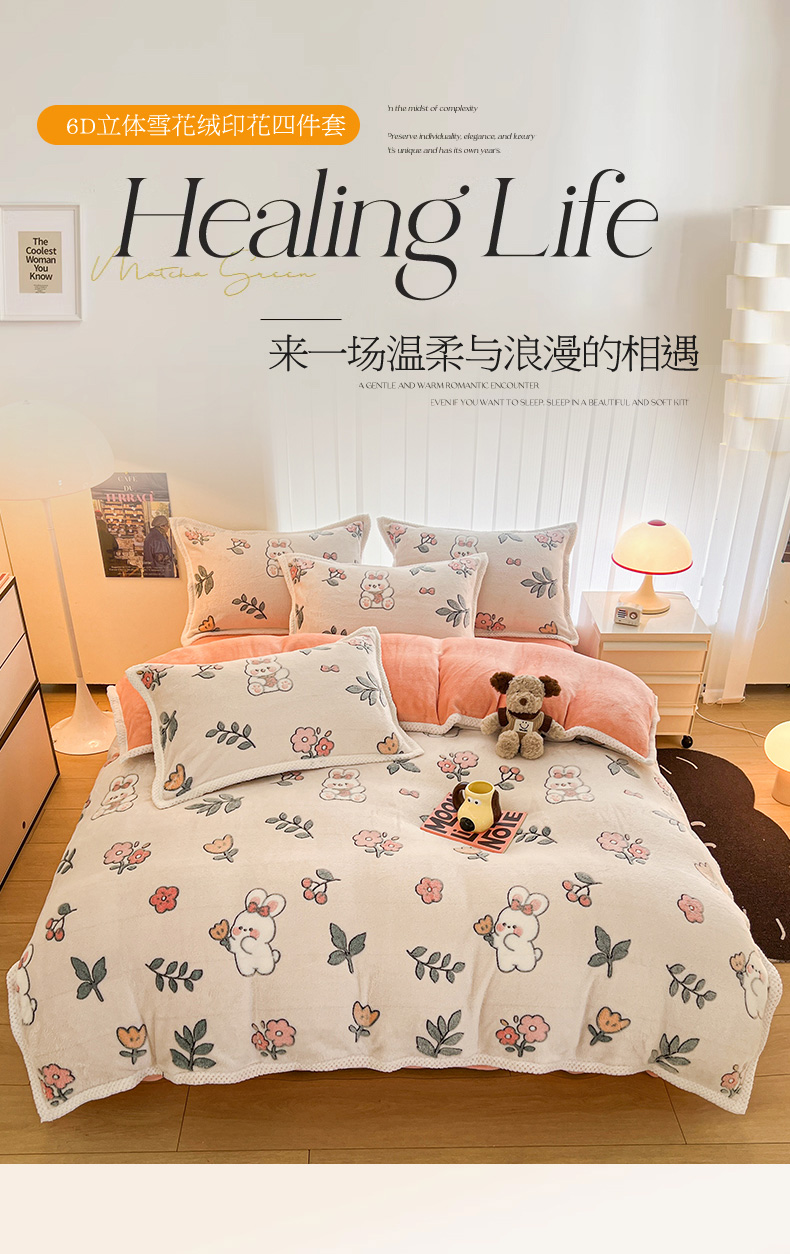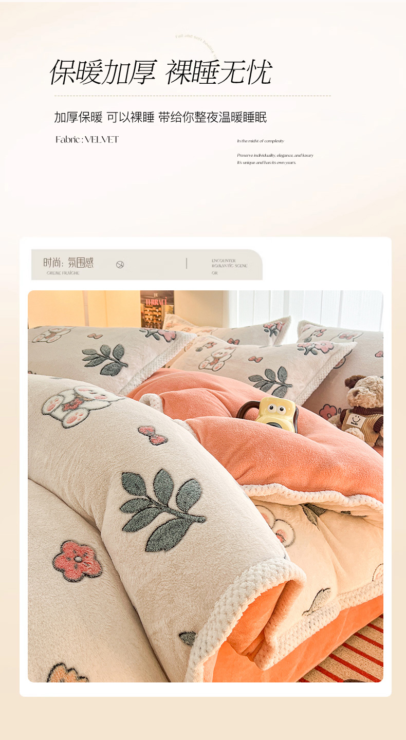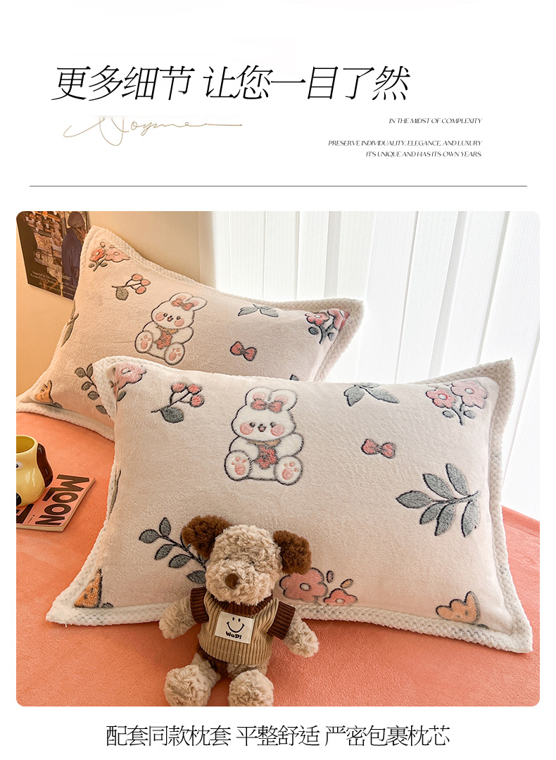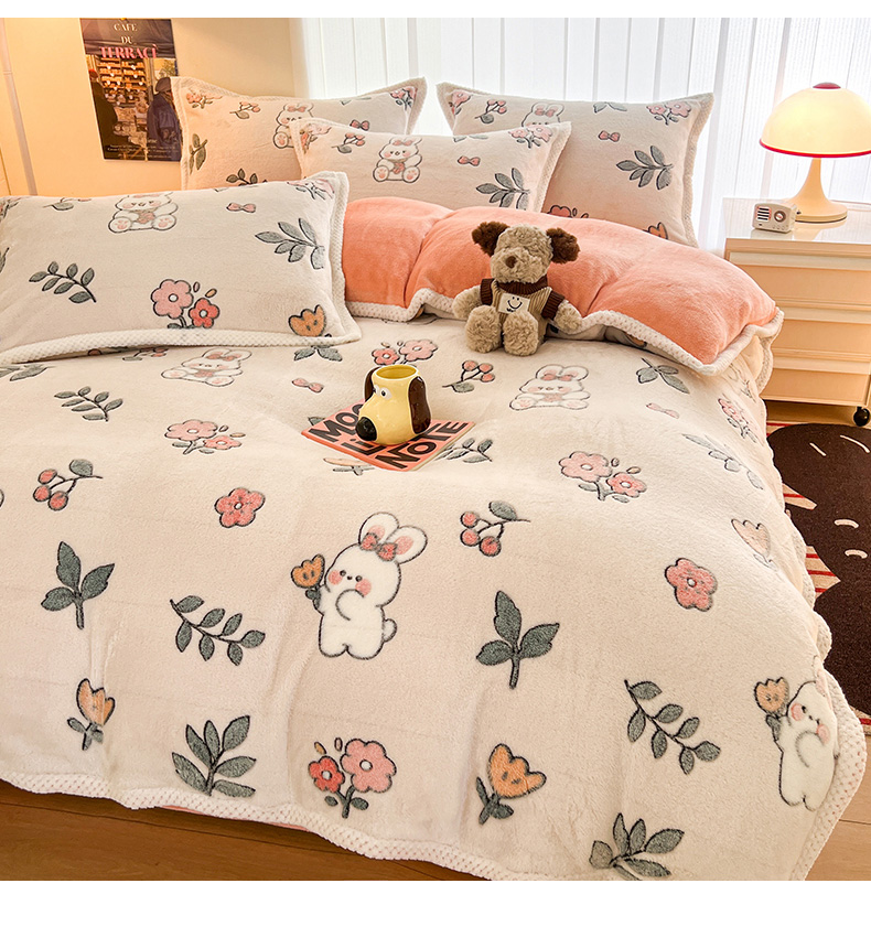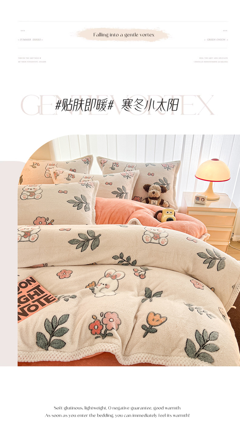 当前位置: 91家纺网 > 商品网购 > 床品套件 > 四件套 > 其它四件套 > 倾慕家纺 2024新款加厚保暖6D立体雪花绒系列-四件套 萌萌兔