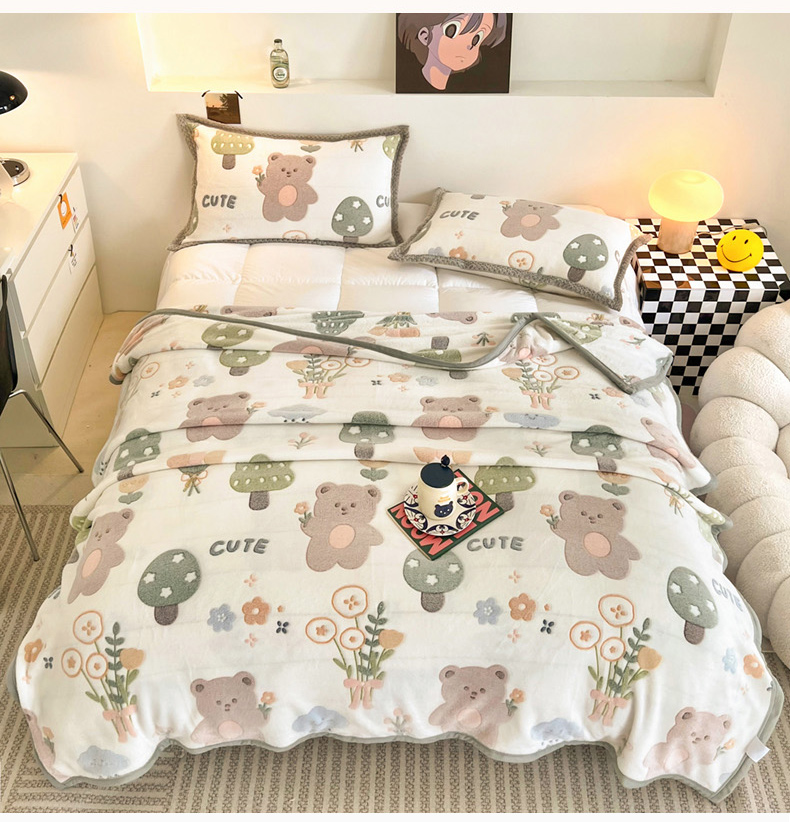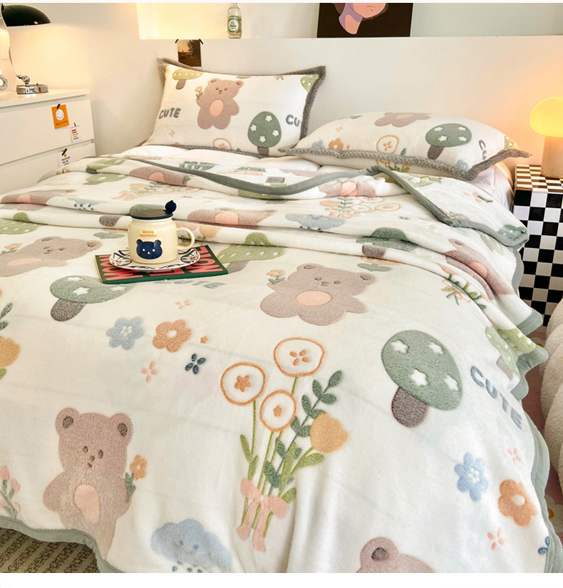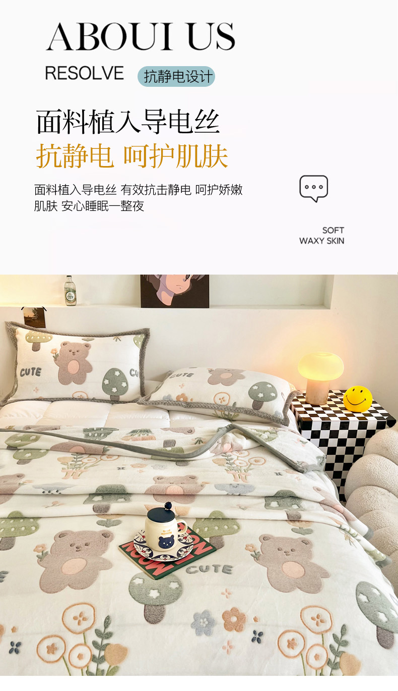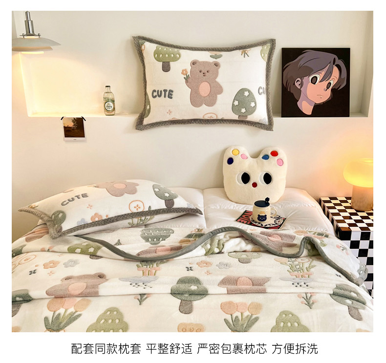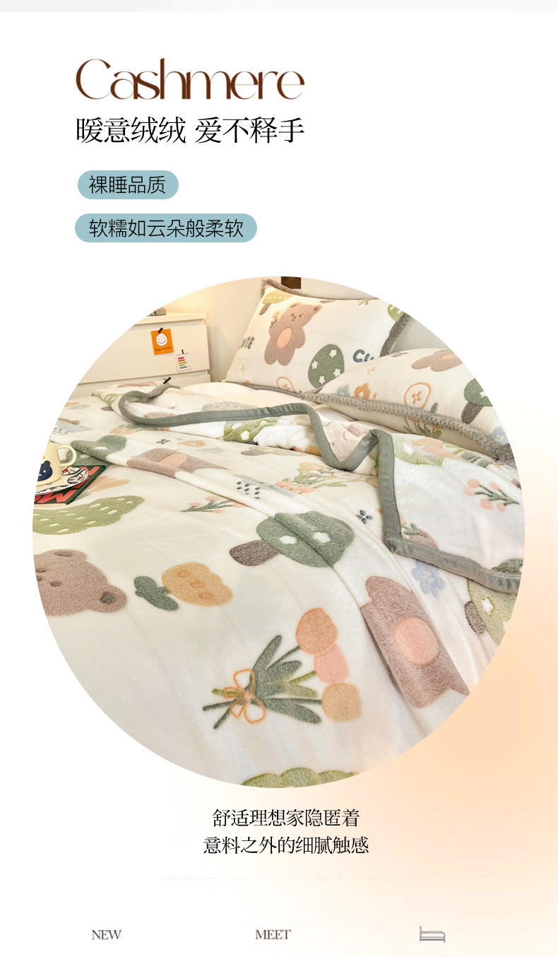(总)倾慕家纺 2025新款卡通毛巾绣加厚保暖牛奶绒四件套,爱心女孩,咖啡小狗,猫咪熊兔,迷你小车,圣诞树熊,音乐企鹅