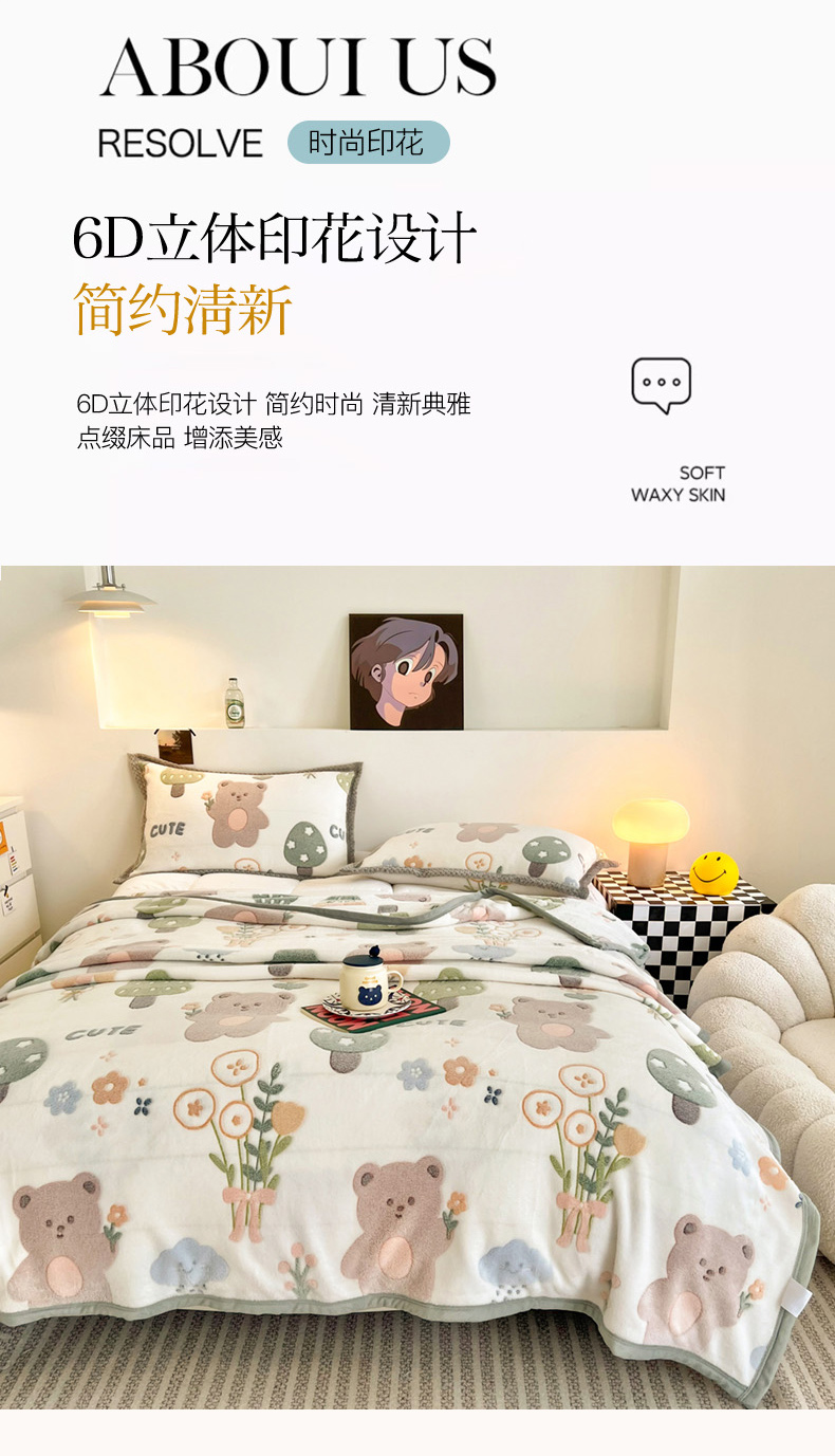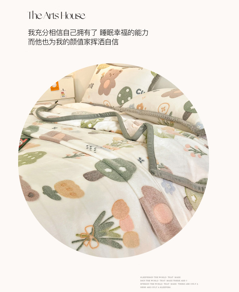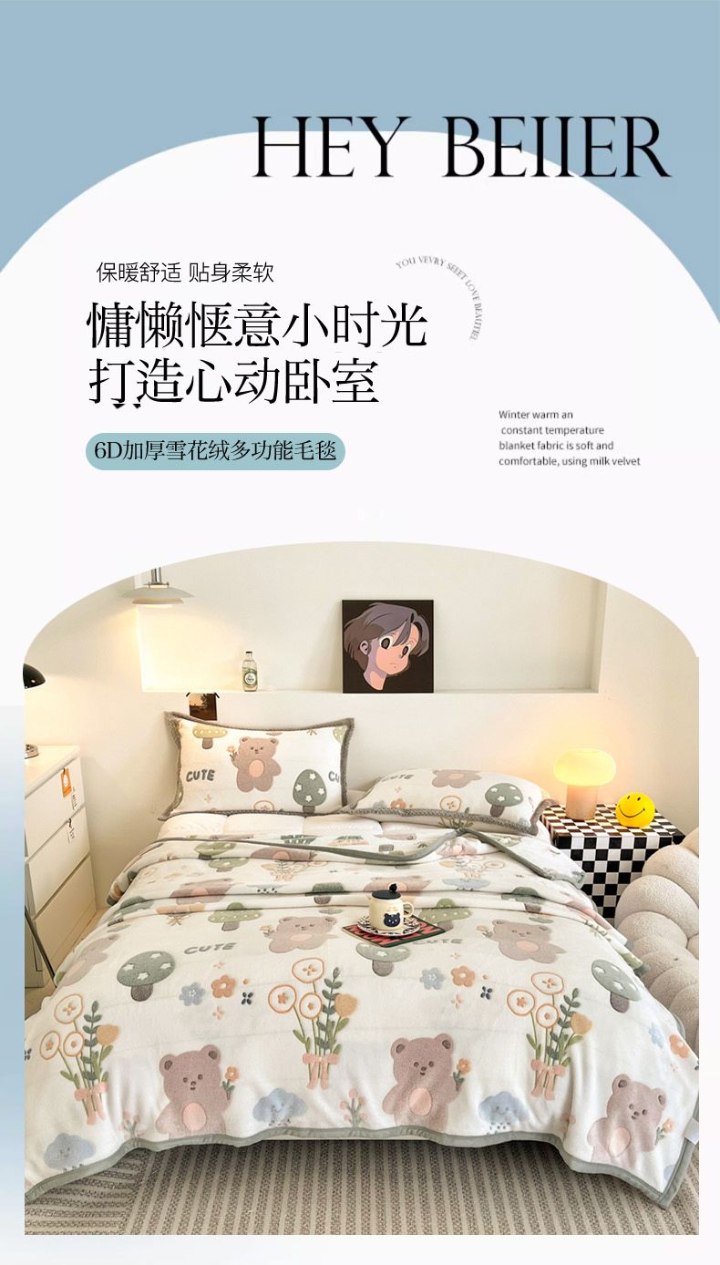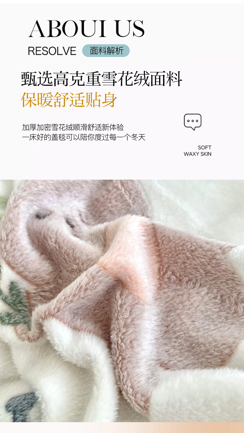 商品名称:倾慕家纺 2024新款加厚保暖6D立体雪花绒系列-毛毯 森林公园