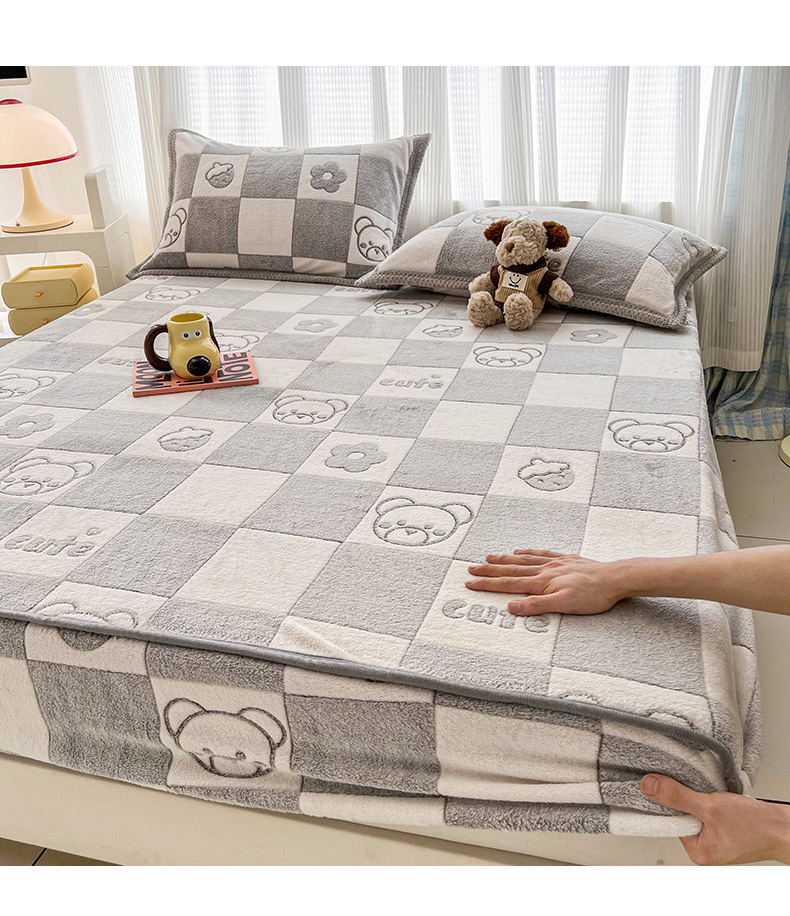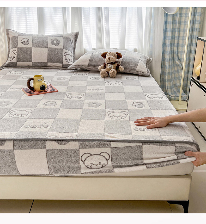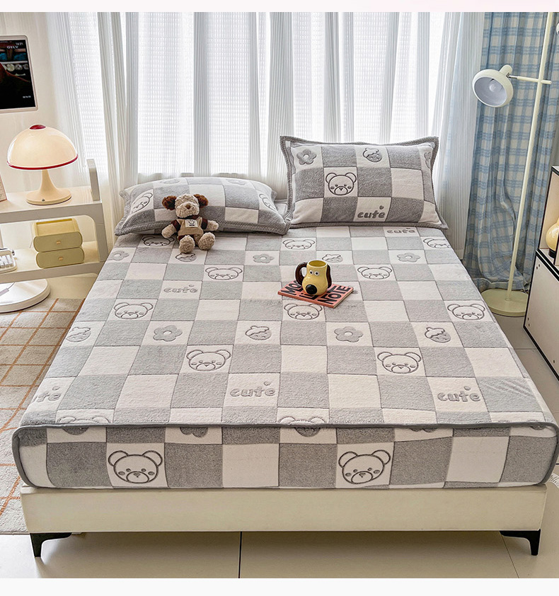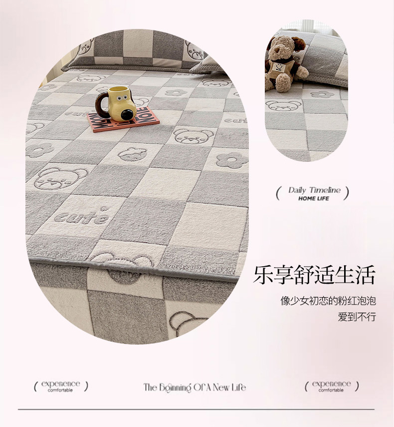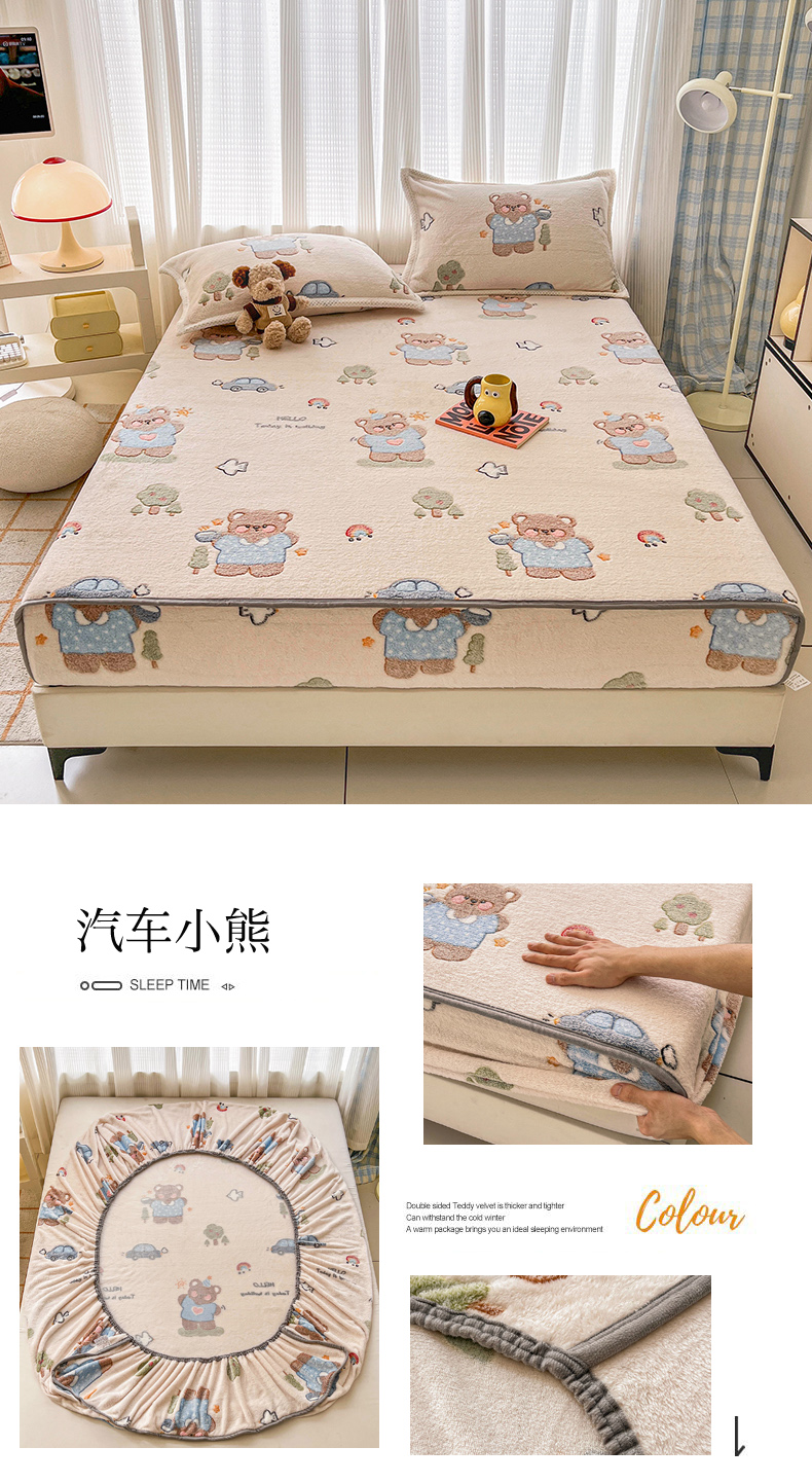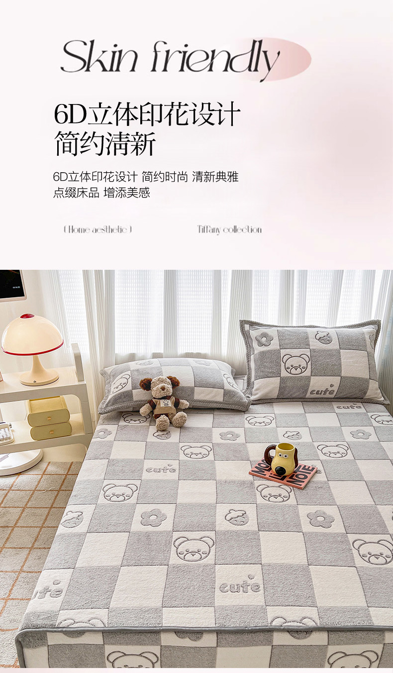 倾慕家纺 2024新款加厚保暖6D立体雪花绒系列-单床笠 北欧小熊