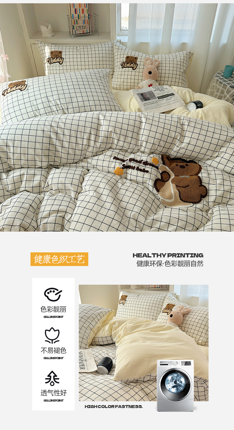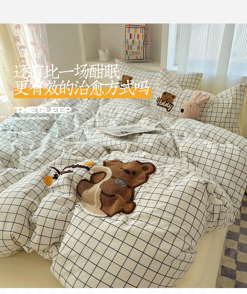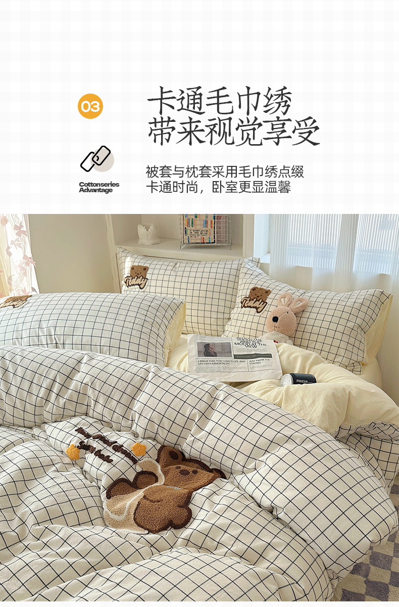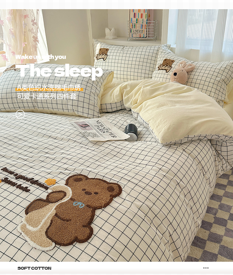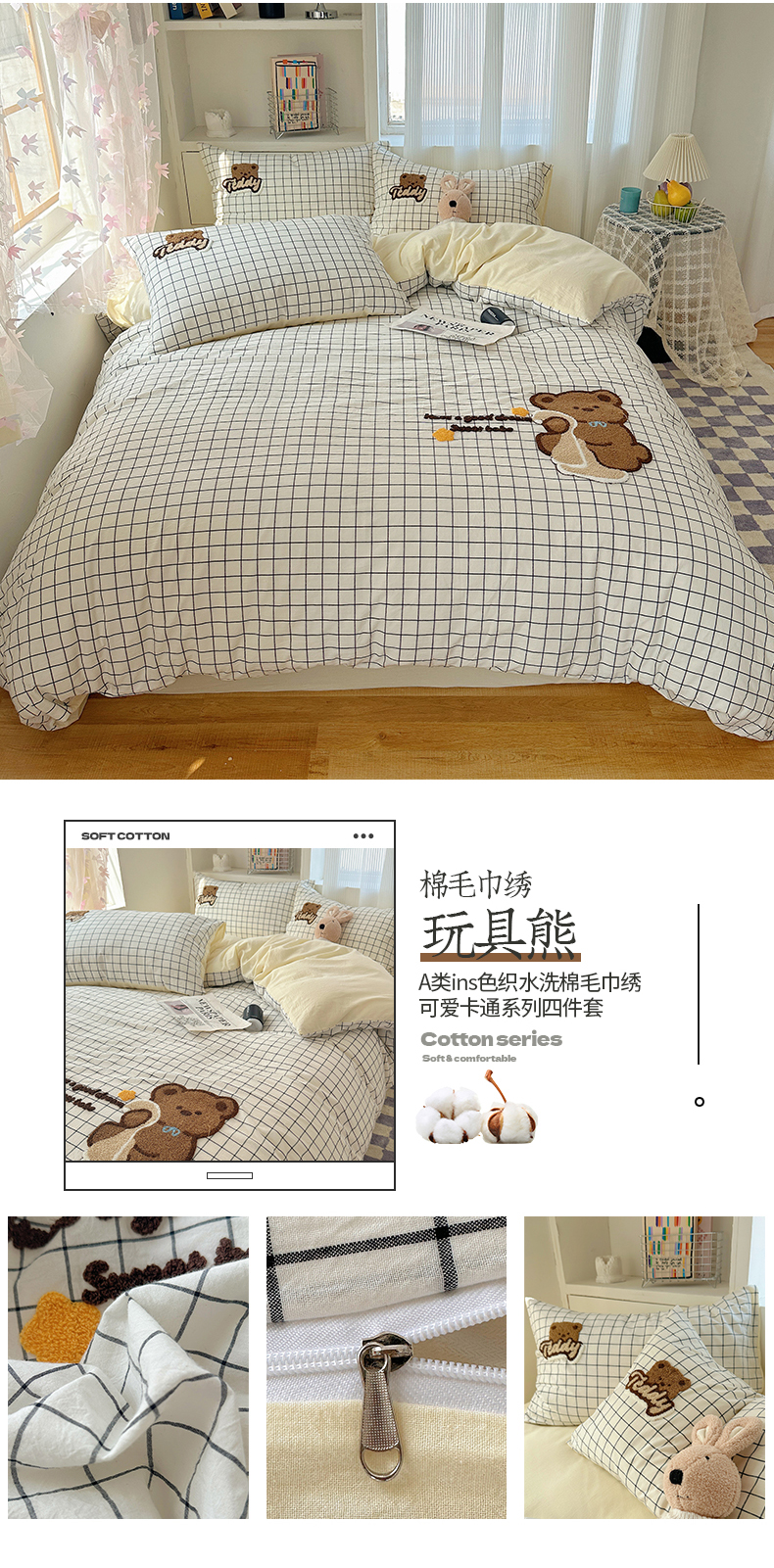 桃子家居 2024新款A类ins纯棉色织水洗棉毛巾绣可爱卡通系列四件套 棉毛巾绣-玩具熊