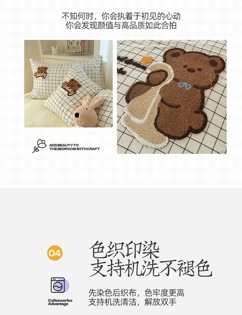 商品名称:桃子家居 2024新款A类ins纯棉色织水洗棉毛巾绣可爱卡通系列四件套 棉毛巾绣-玩具熊