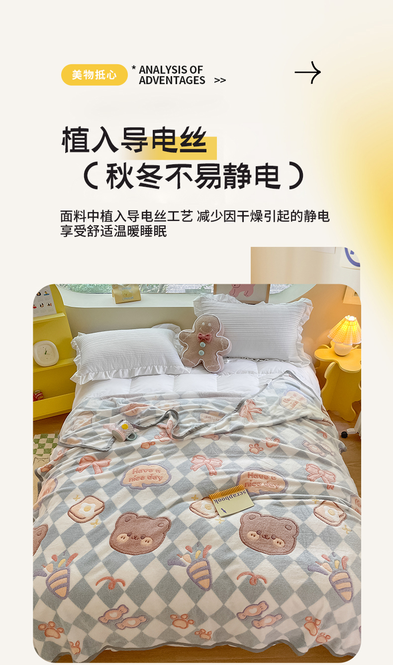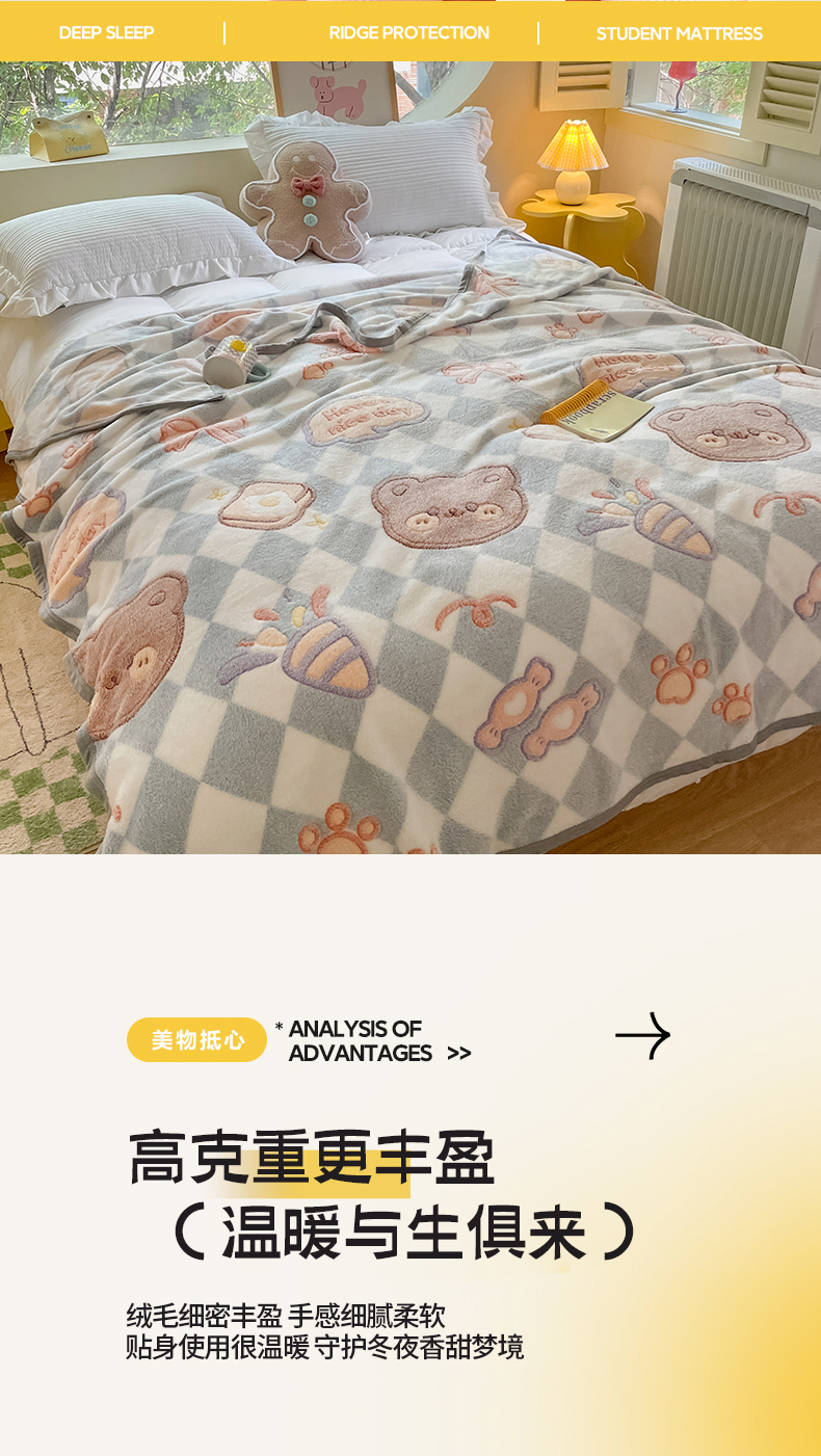商品名称:慕尚家纺 2025新款高克重加厚雪花绒毛毯毯子 甜蜜小熊